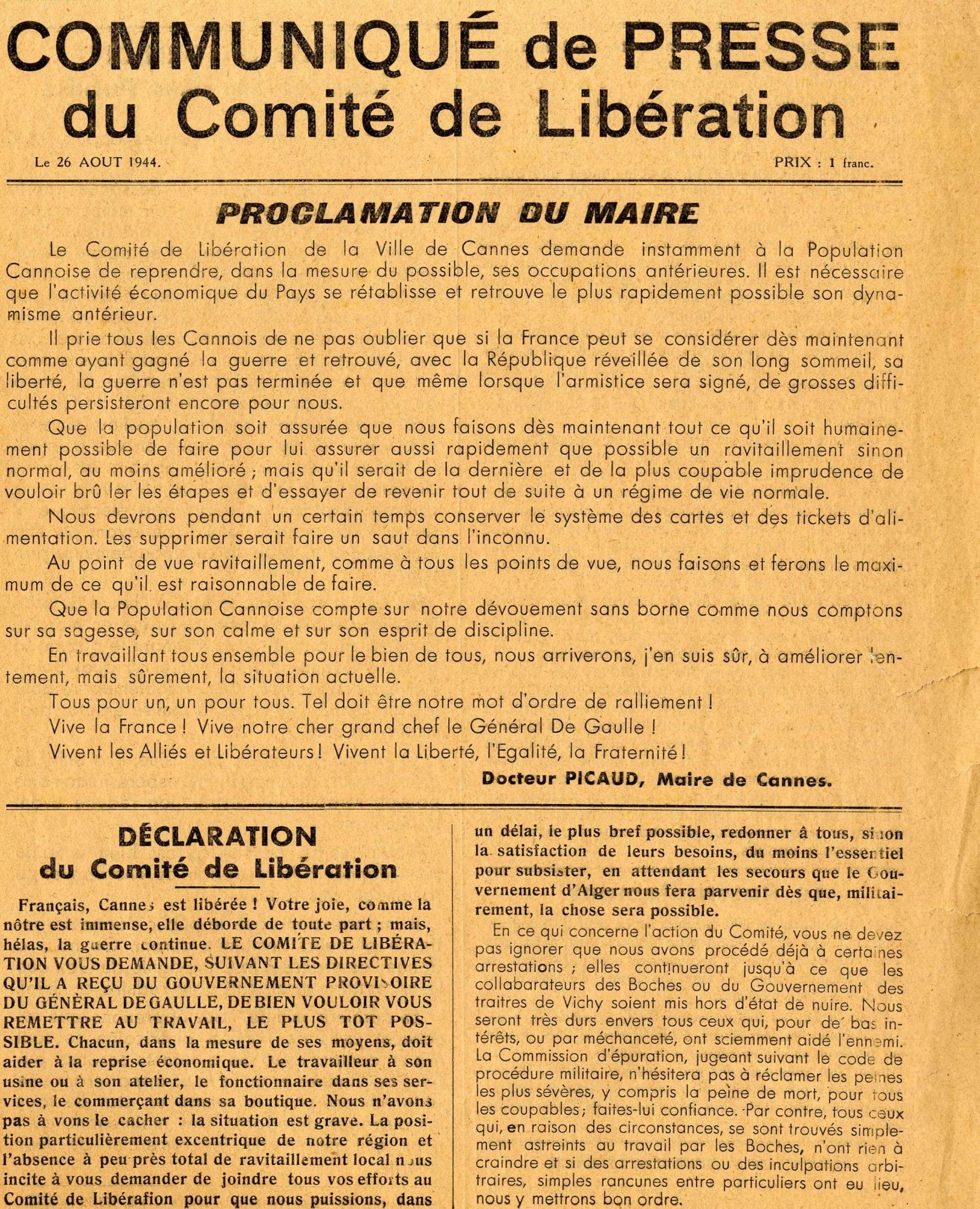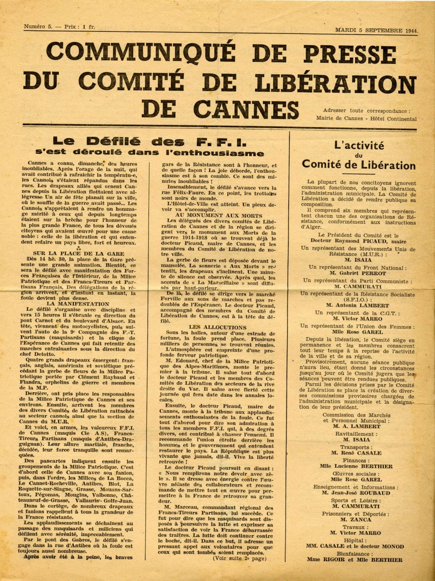- 24 août 1944 : Libération de Cannes par les troupes américaines, qui arrivent par la Bocca.