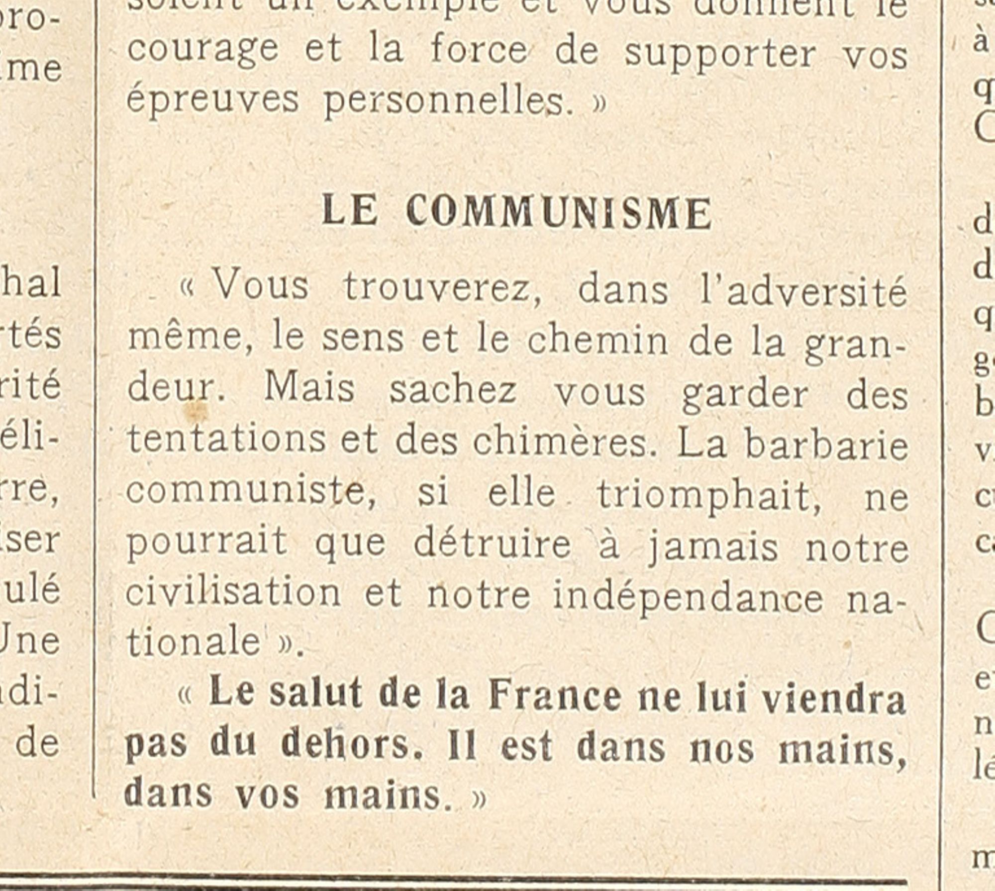 - 4 octobre 1941 : la Charte du travail du 4 octobre 1941 est promulguée par l’État français ; elle instaure des corporations par branches d'activité, dissout les syndicats et interdit les grèves.
