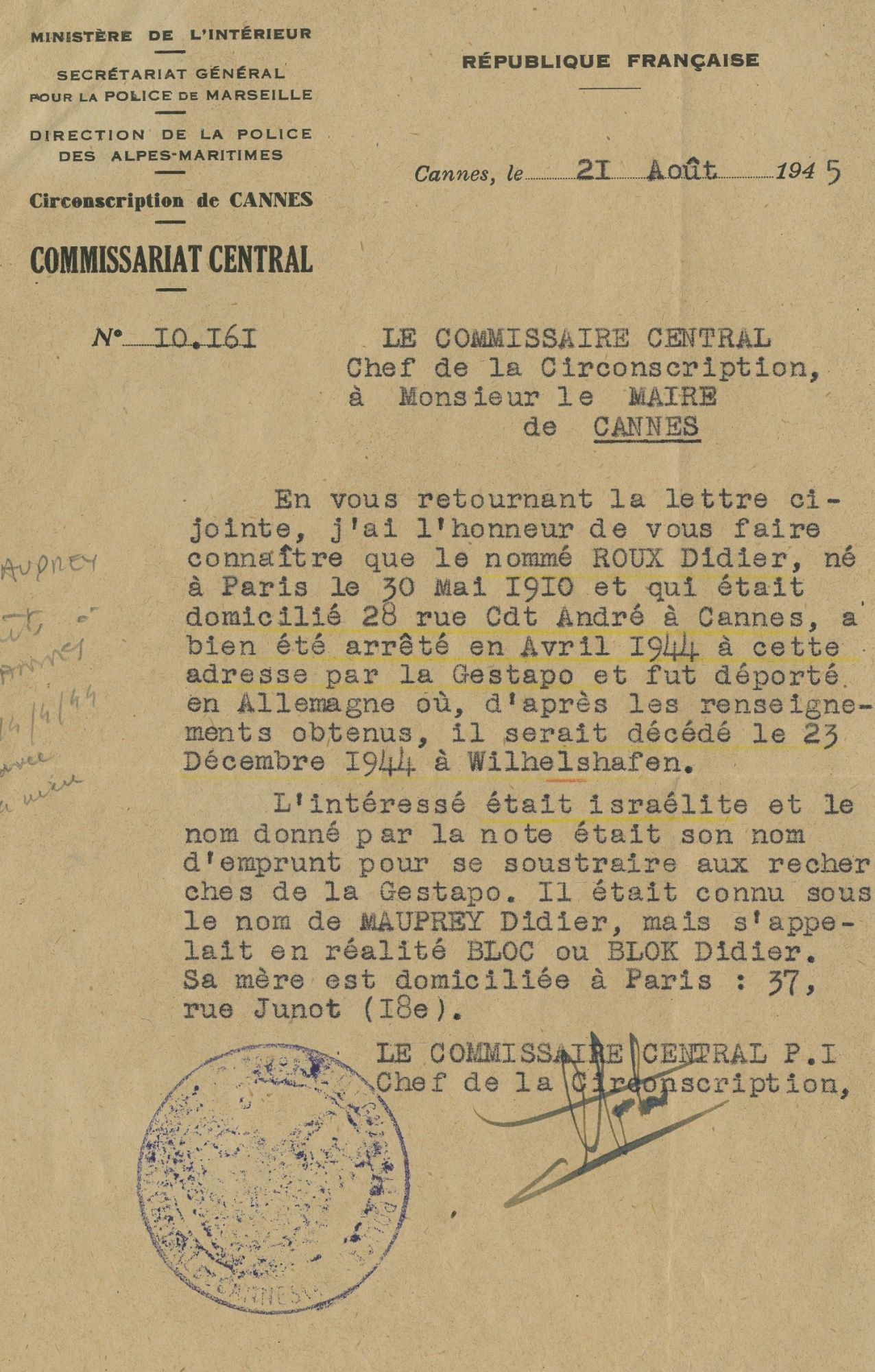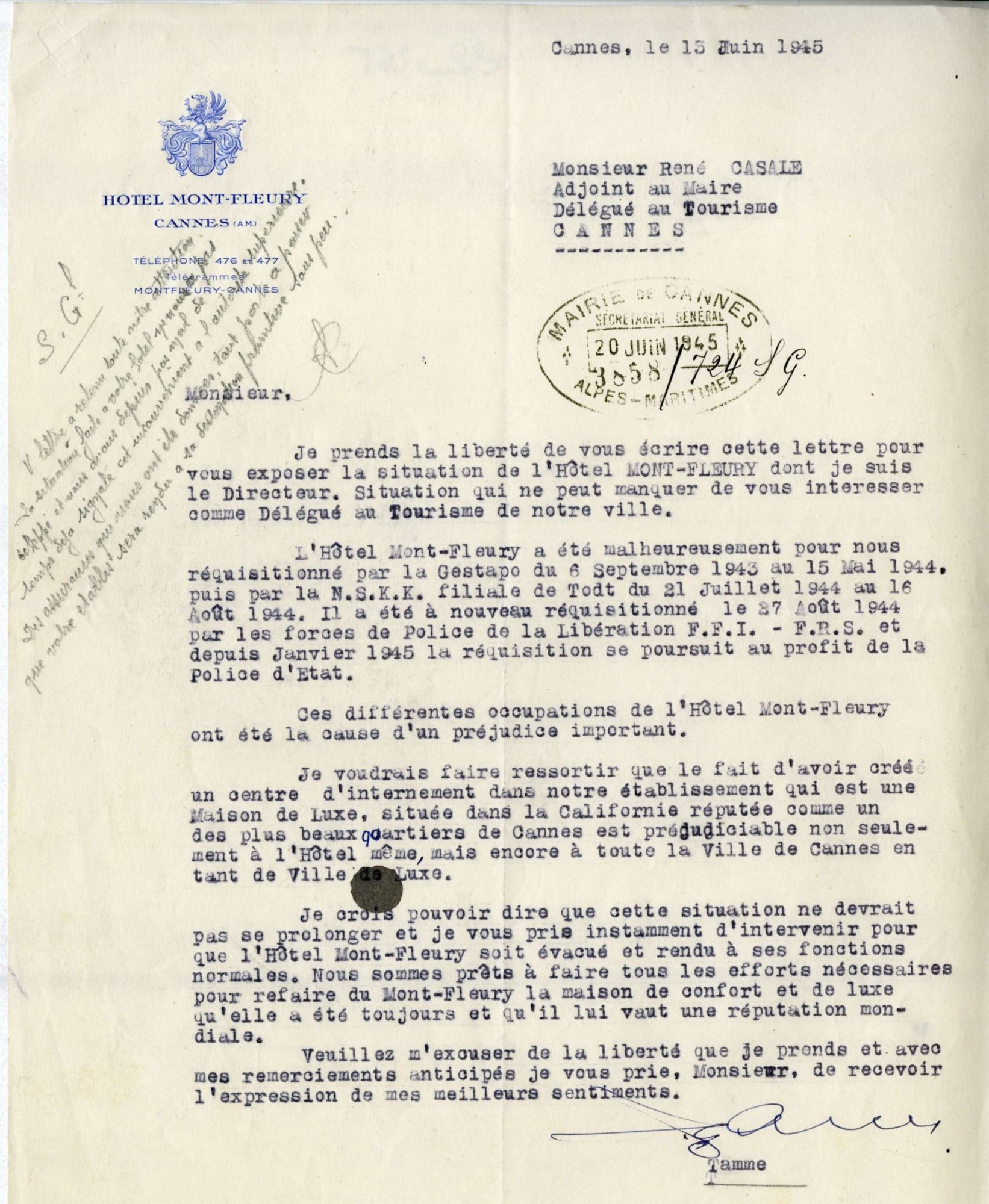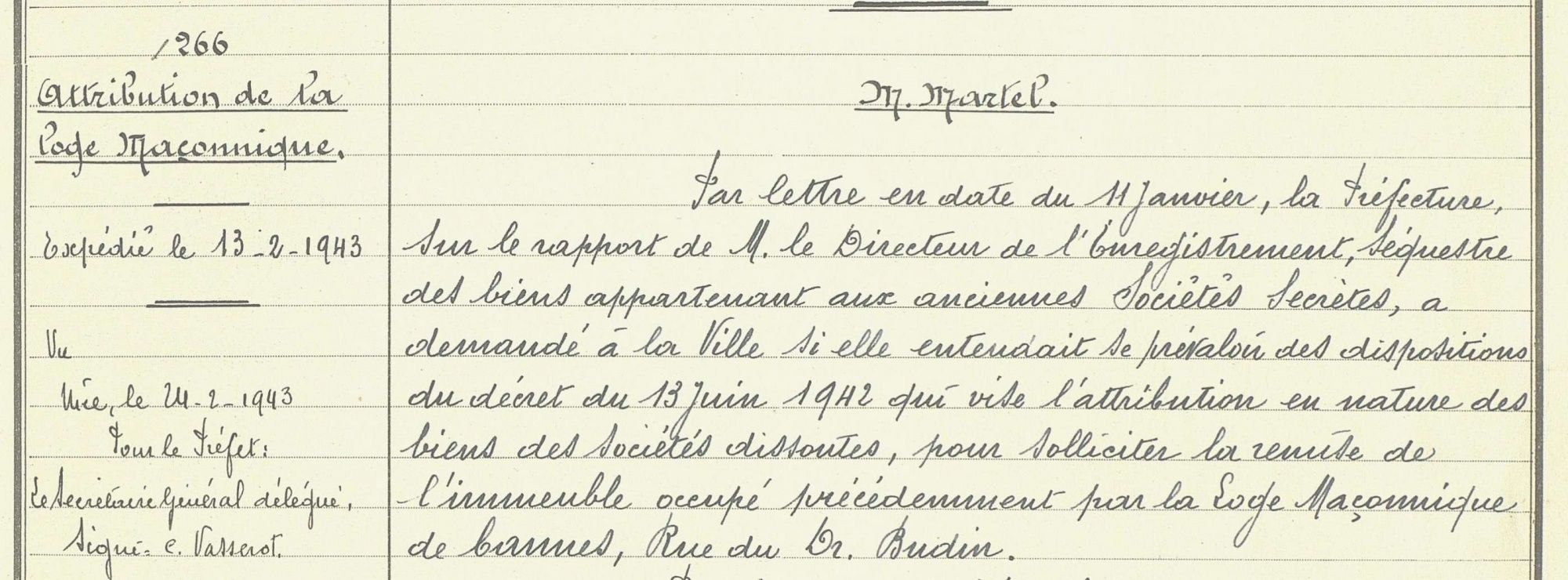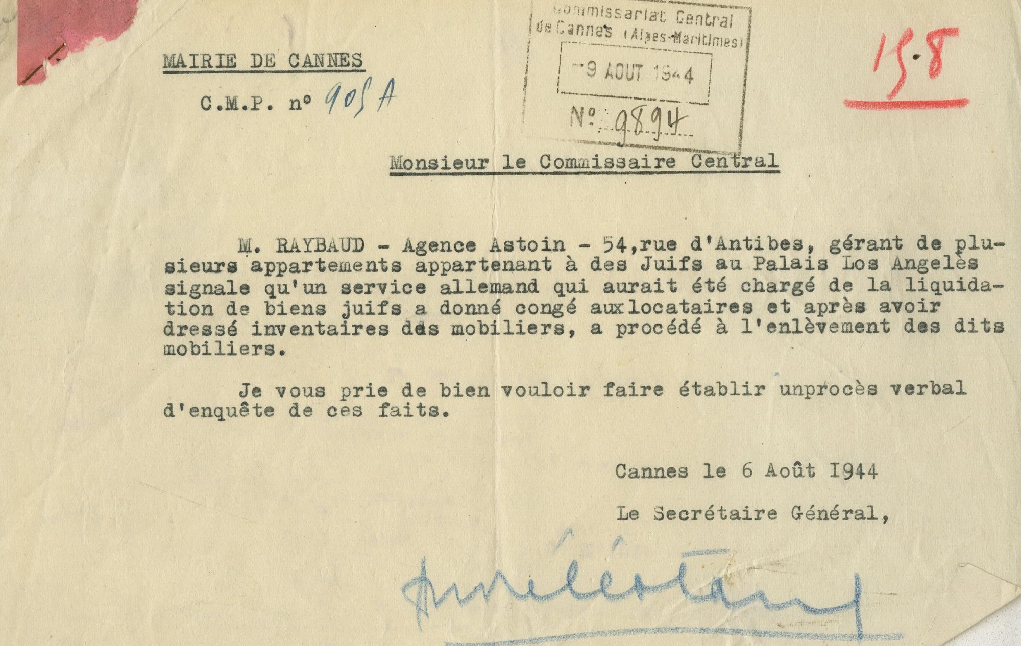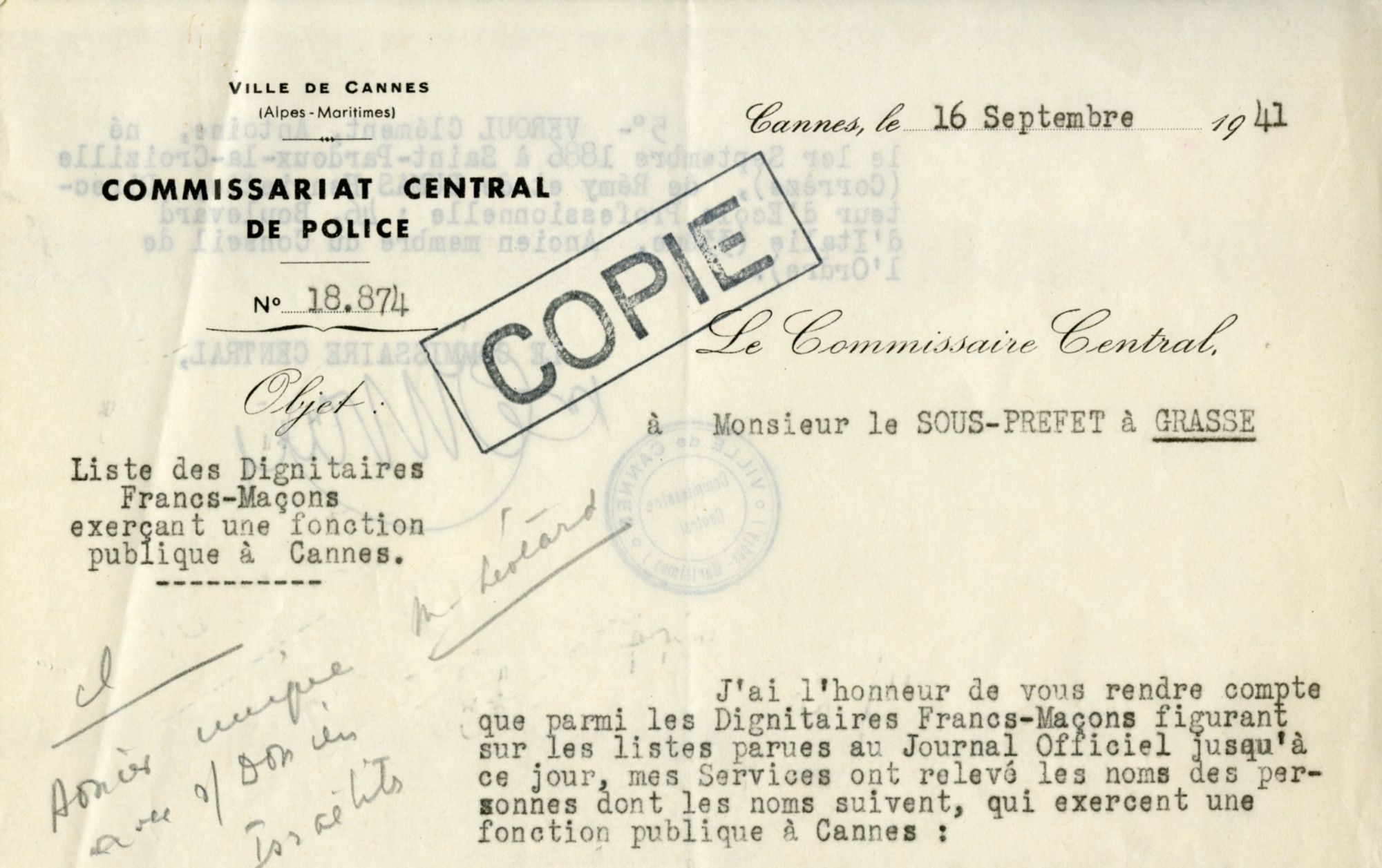 - 13 août 1940 : mise sous séquestre de locaux de sociétés secrètes : la loge maçonnique de Cannes est concernée.