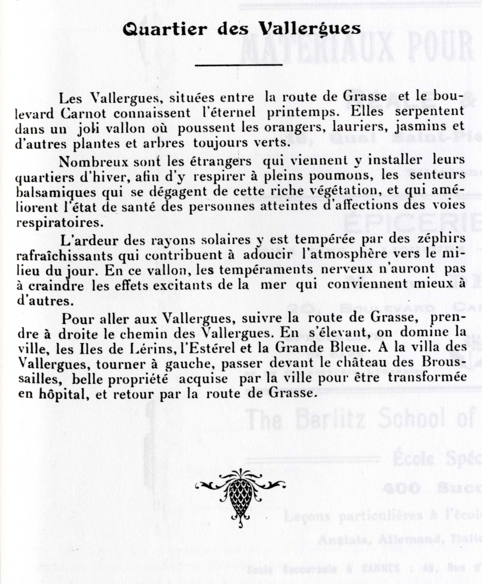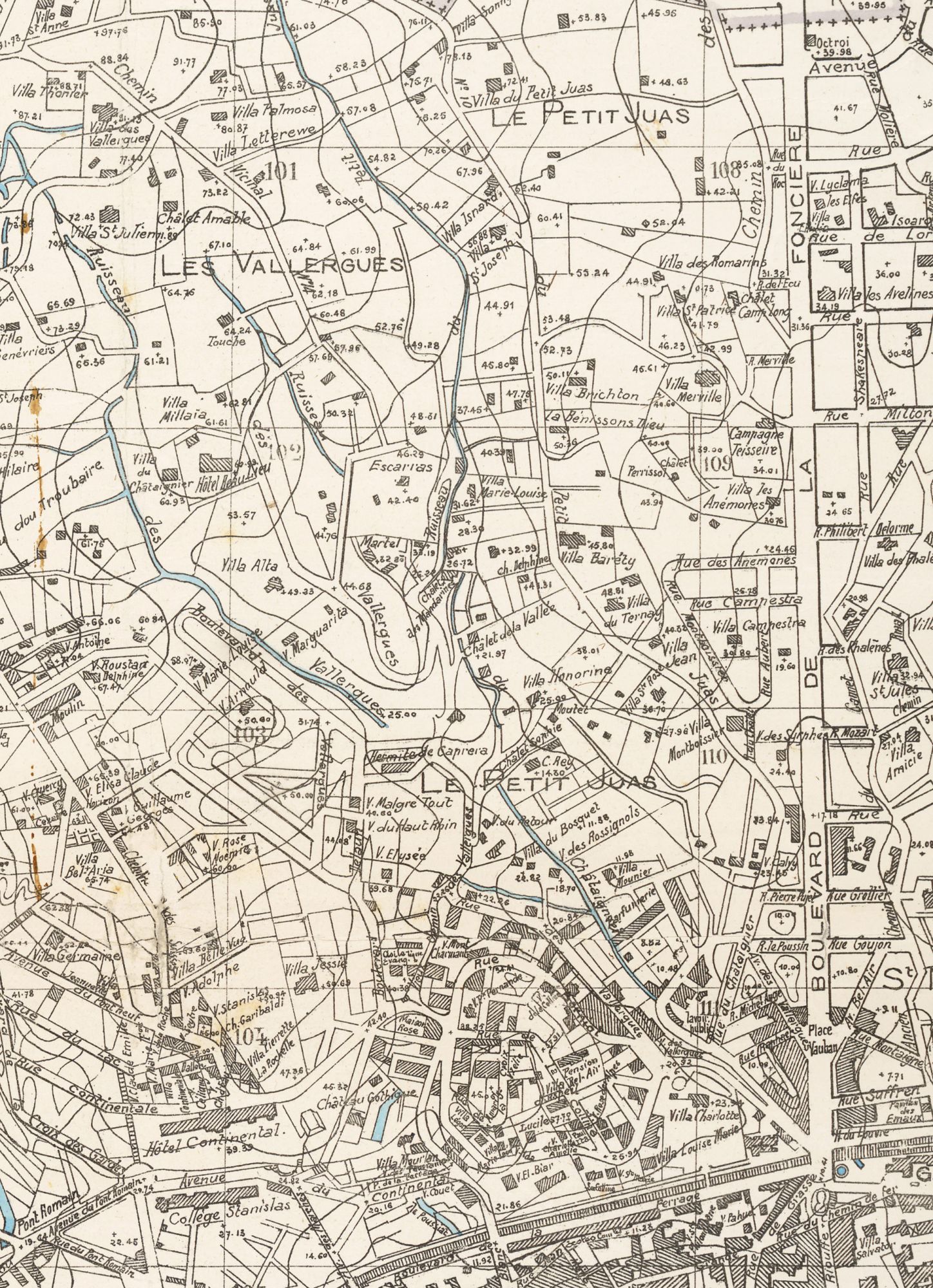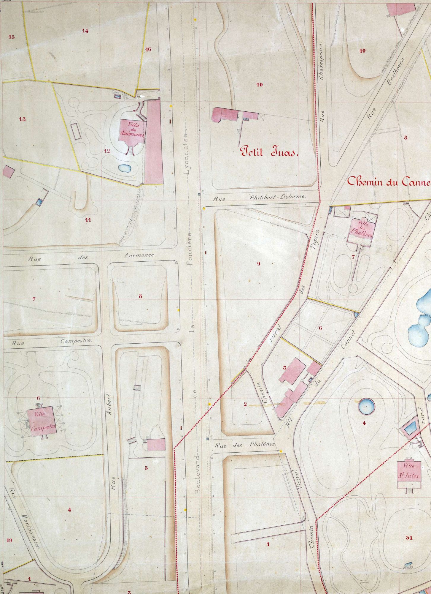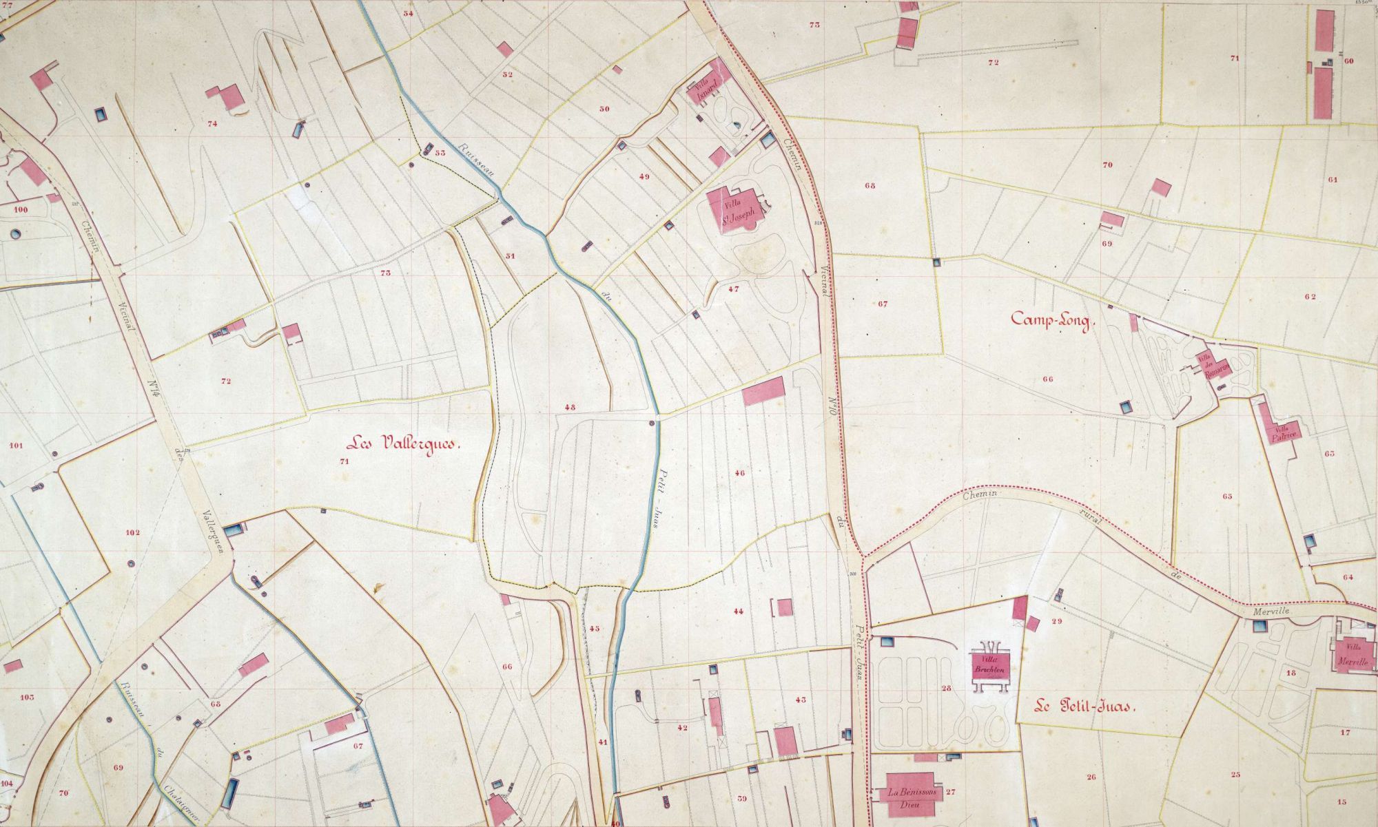 Les villas sont entourées de jardins, on note la présence de bassins ou de réservoirs pour conserver l'eau, denrée précieuse. A partir de la percée de Carnot en 1881-82, de part et d'autre de l'axe, les parcelles vont rapetisser avec les lotissements qui vont fleurir, et tout naturellement la population va s'accroître.