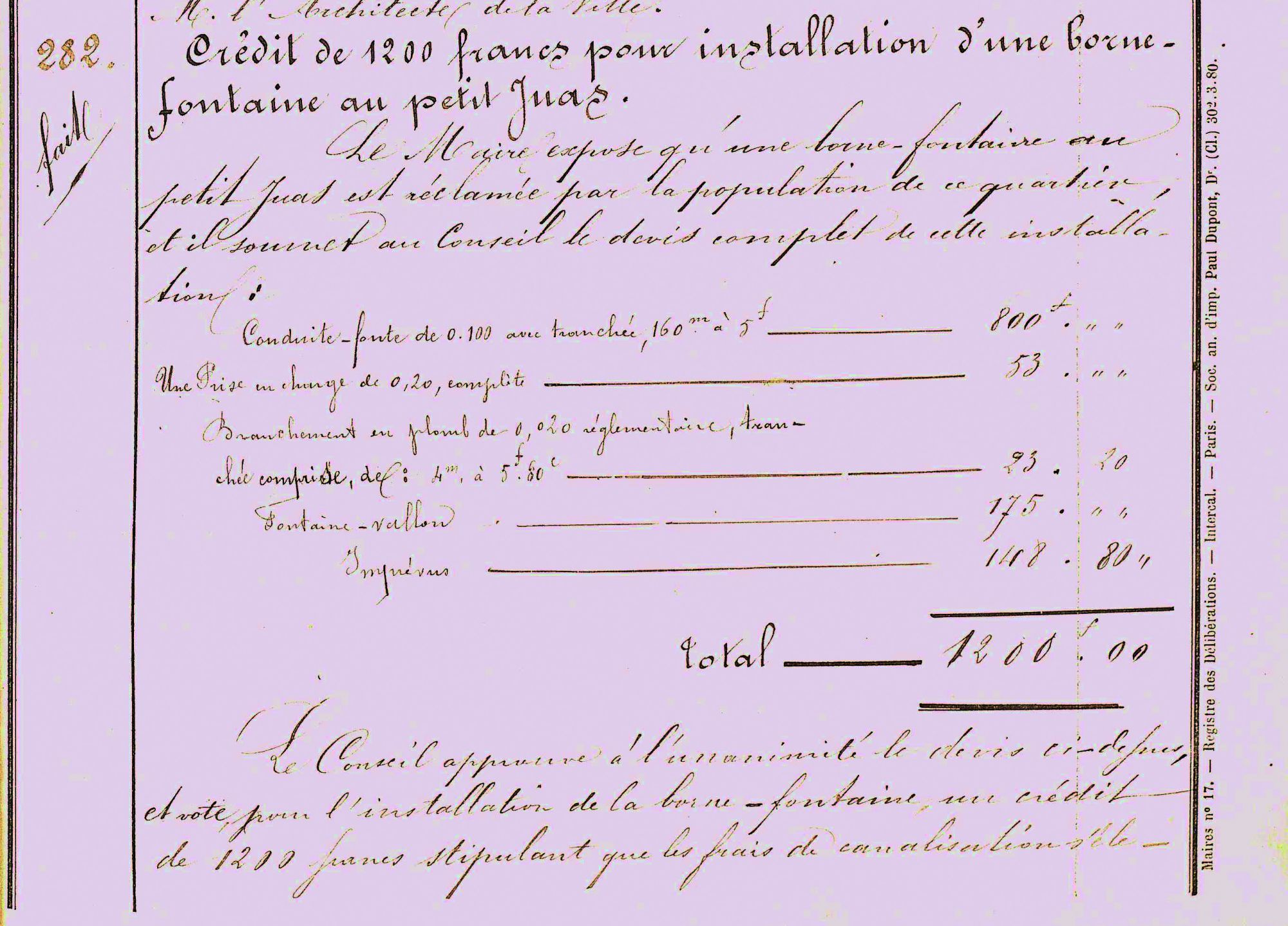 Aux Vallergues, l'eau est recherchée dès 1841, un barrage est édifié en 1844-1845, avec un château d'eau. Le chemin est classé "vicinal" en 1864, puis un égout est construit en 1884-1886. Un hôtel y existe, qui reçoit des personnalités. Le lavoir public, au n°7 du chemin primitif du Petit Juas, a son gardien attitré, et est certainement l'un des derniers : nous en trouvons trace au moment des indemnisations des bombardements alliés, en 1946. Le chemin du Petit Juas est classé en 1863, puis élargi progressivement, jusqu'à 8 mètres en 1878. L'éclairage arrive en 1886. Le tout à l'égout est installé vers 1904-1906.