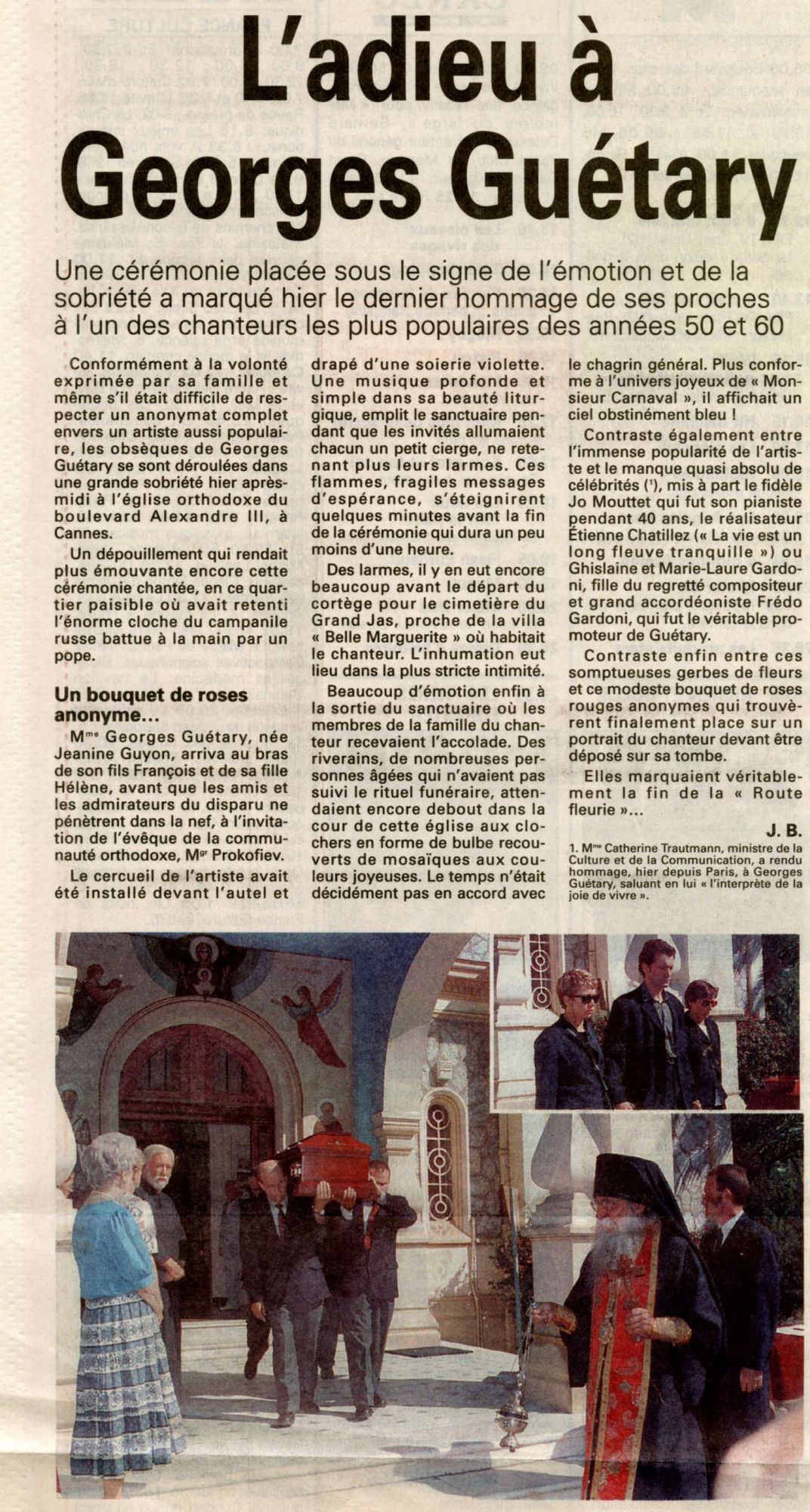 Son "jubilé" fut fêté à Cannes, sous la municipalité de Michel Mouillot. Chanteur de charme, Guétary n'a laissé que de bons souvenirs à Cannes, où il a conquis avec ses récitals tous les amateurs de concerts, au Palm Beach notamment.
