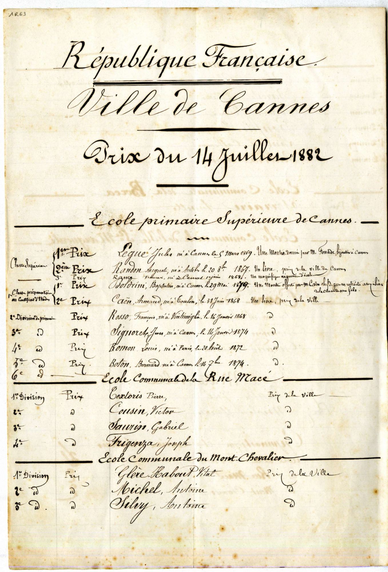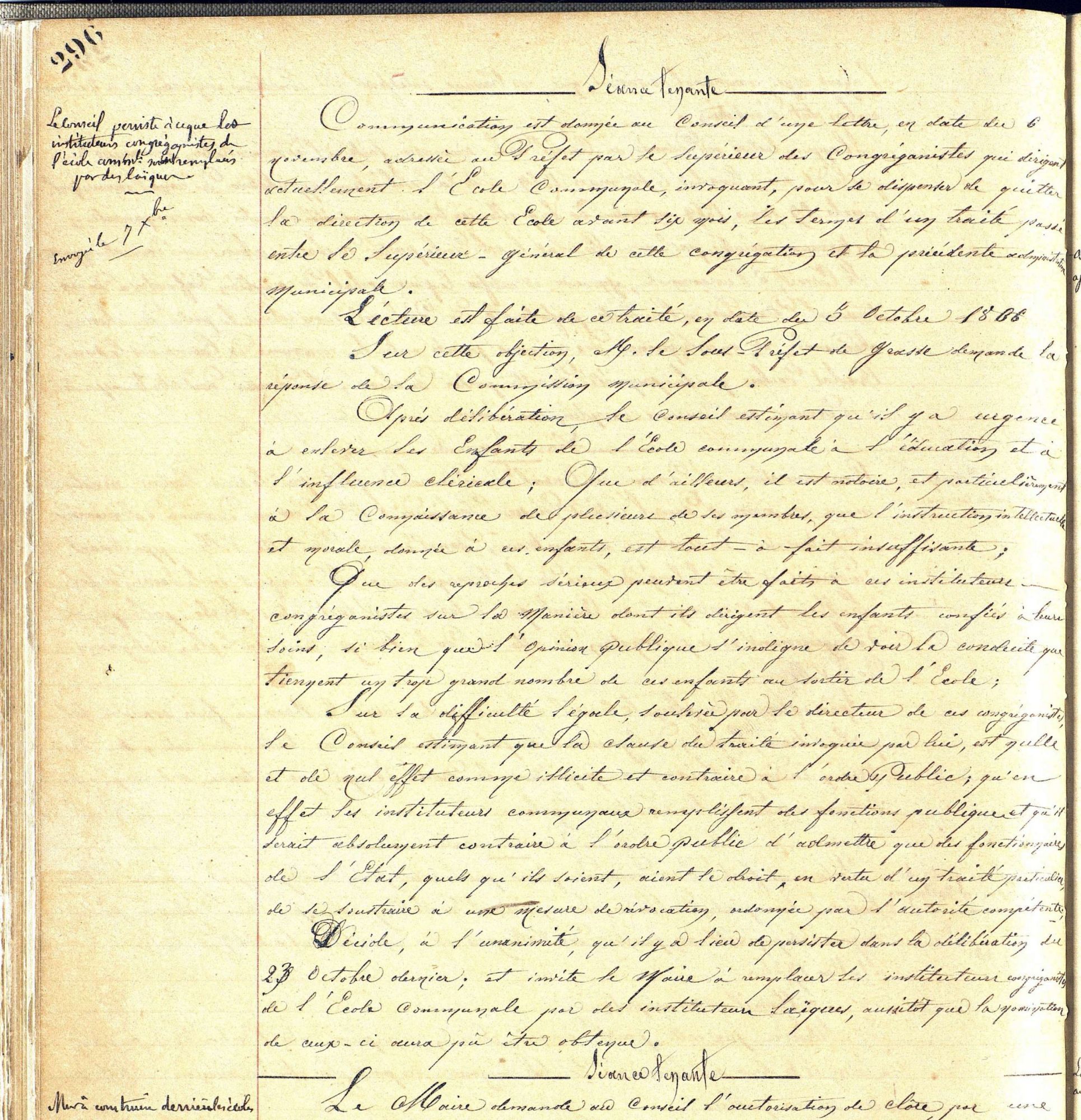 L'école libre des Frères laisse la place, à compter des lois Jules Ferry, à une école communale, qui accueille les garçons, avant de devenir mixte.
