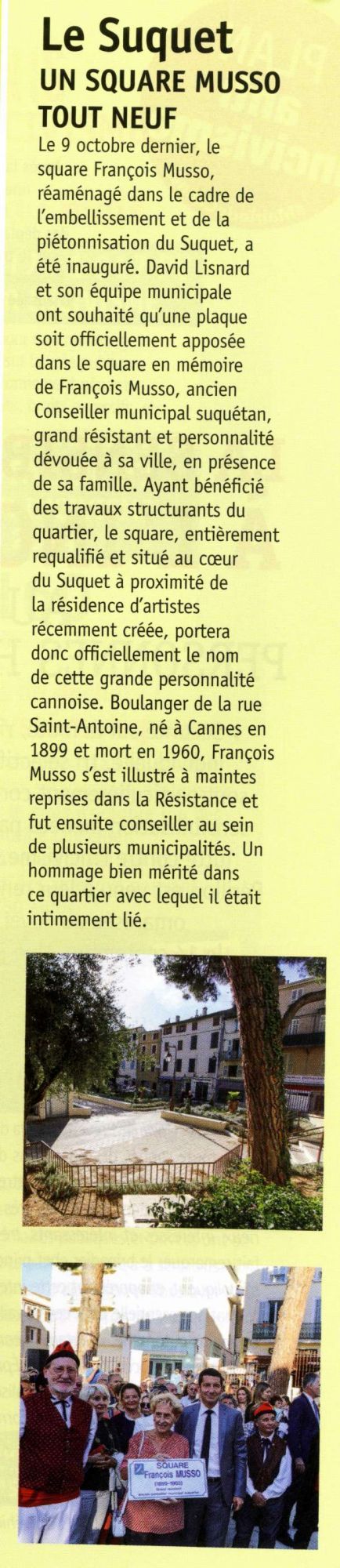 Un square rend hommage à un résistant de la Seconde Guerre Mondiale : François Musso, enfant du Suquet, et celui du Caroubier propose une halte bienfaisante aux touristes.