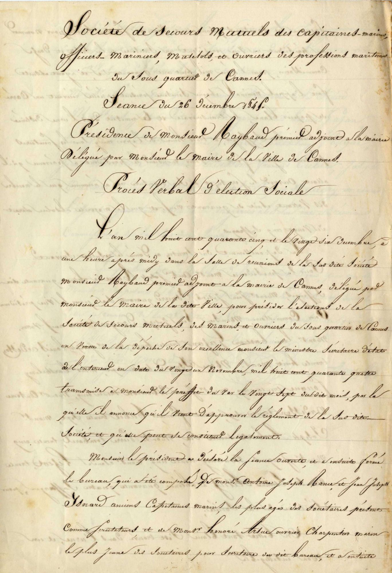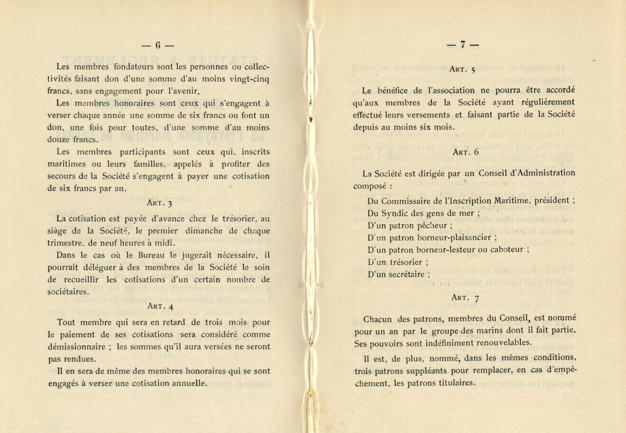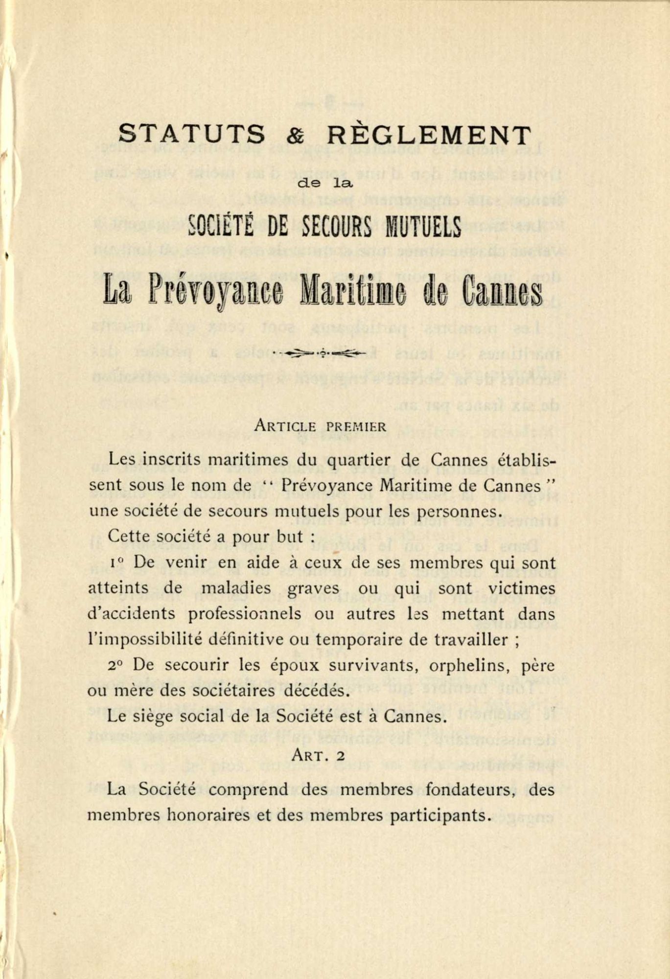 La solidarité entre gens de mer s'exerce dès l'origine, au sein de sociétés de secours mutuels ; les difficultés rendent secourables les marins, pour les familles endeuillées.