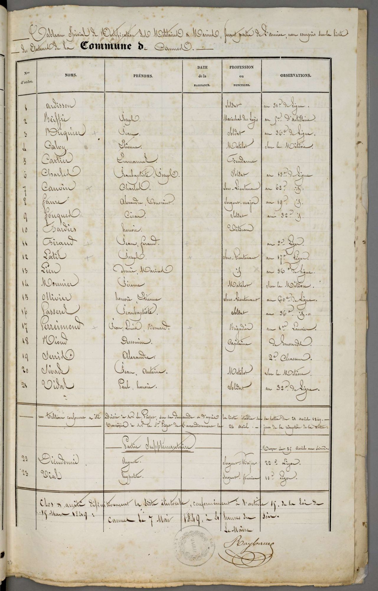 Quant à l'institution militaire, si elle ne ménage pas ses hommes, elle rend souvent hommage à leur valeur. De longs navires militaires viennent parfois mouiller en baie de Cannes, Toulon n'étant pas très loin.