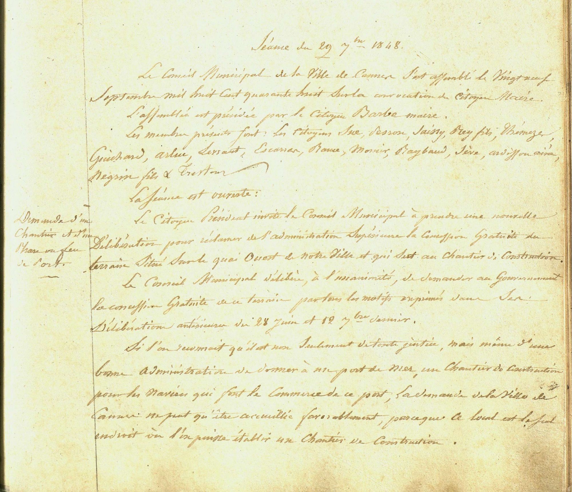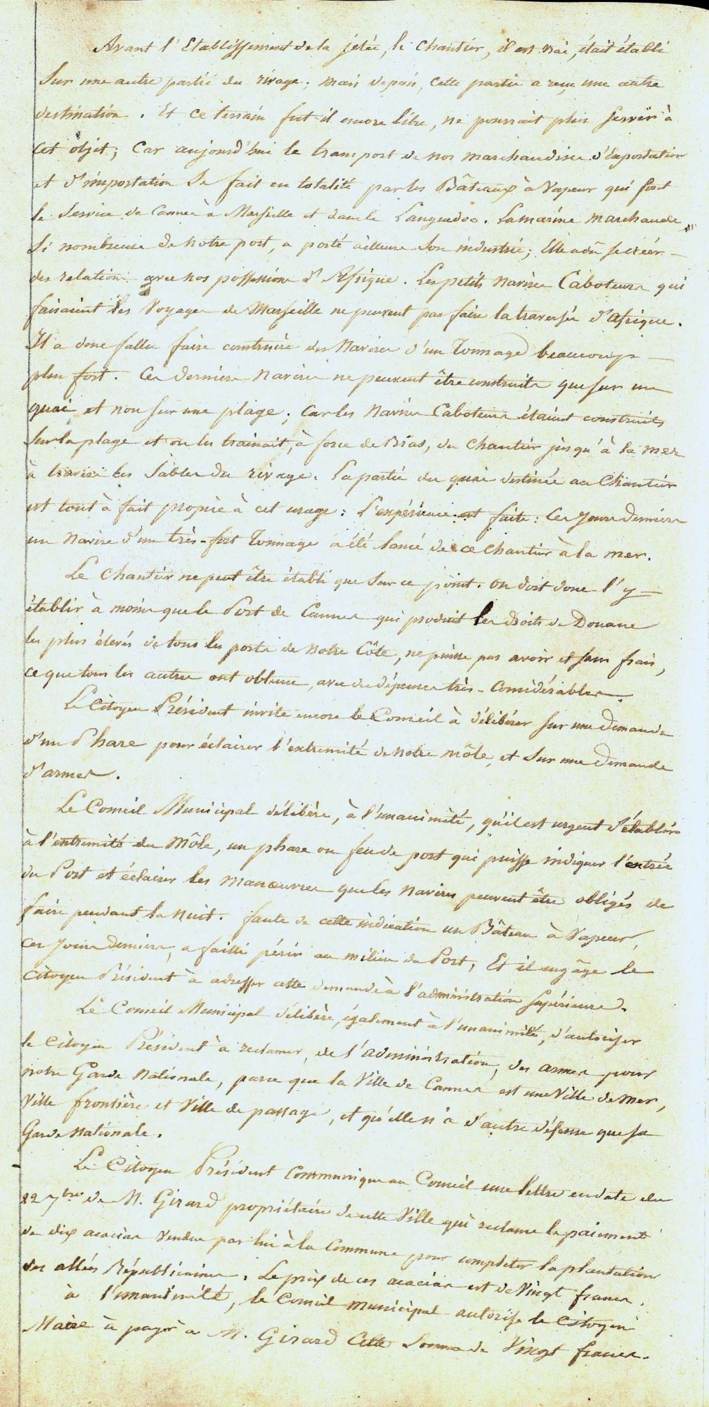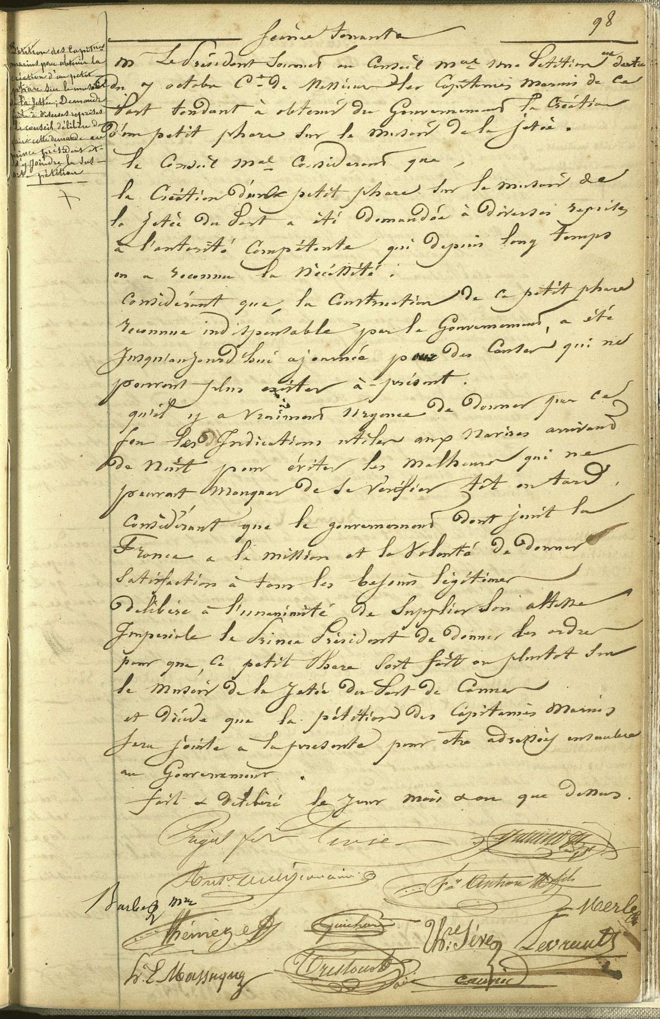 Le 8 octobre 1848, en raison de l'obscurité régnant dans le port, un bateau à vapeur chargé d'huile et transportant des passagers faillit sombrer au moment de son appareillage.