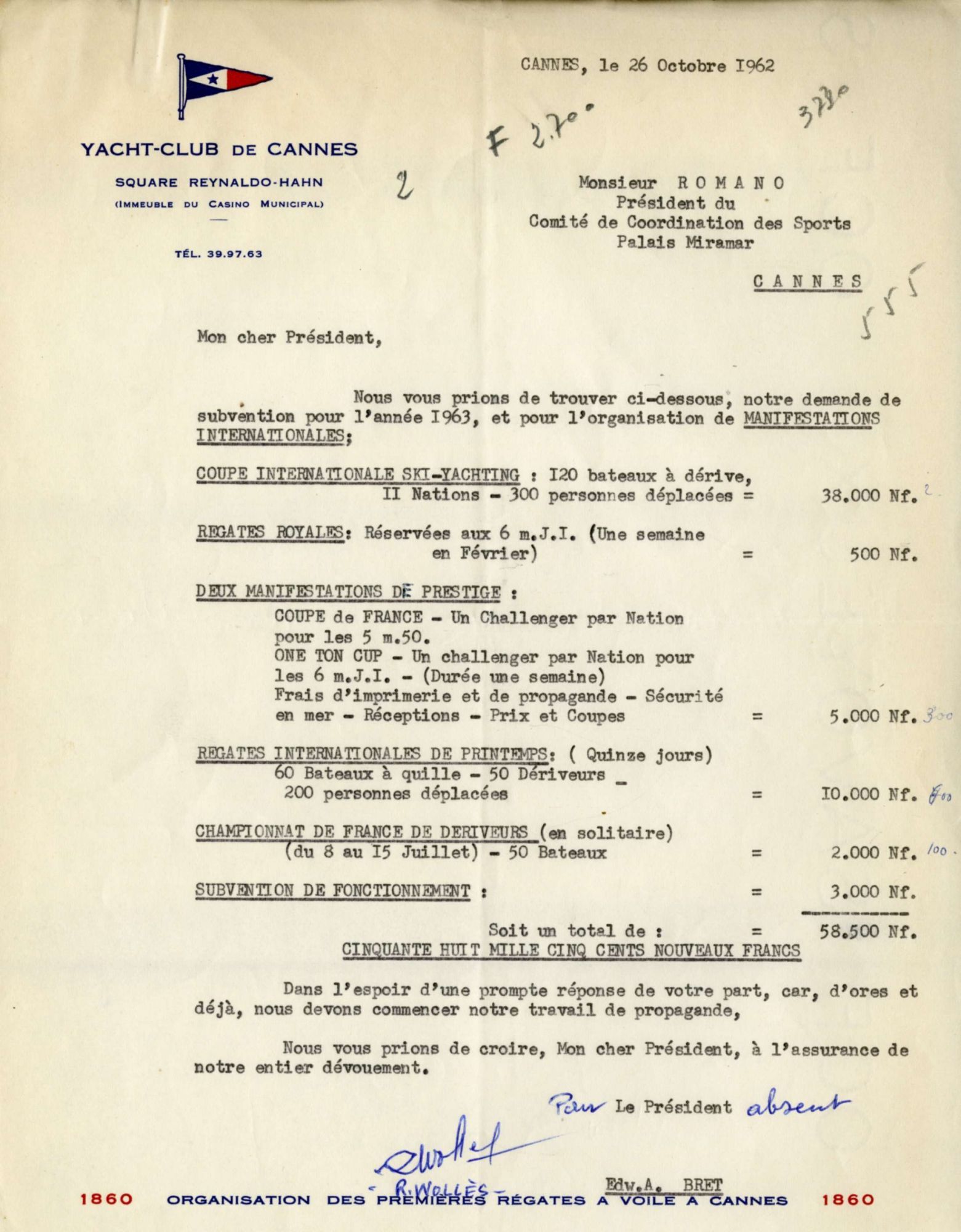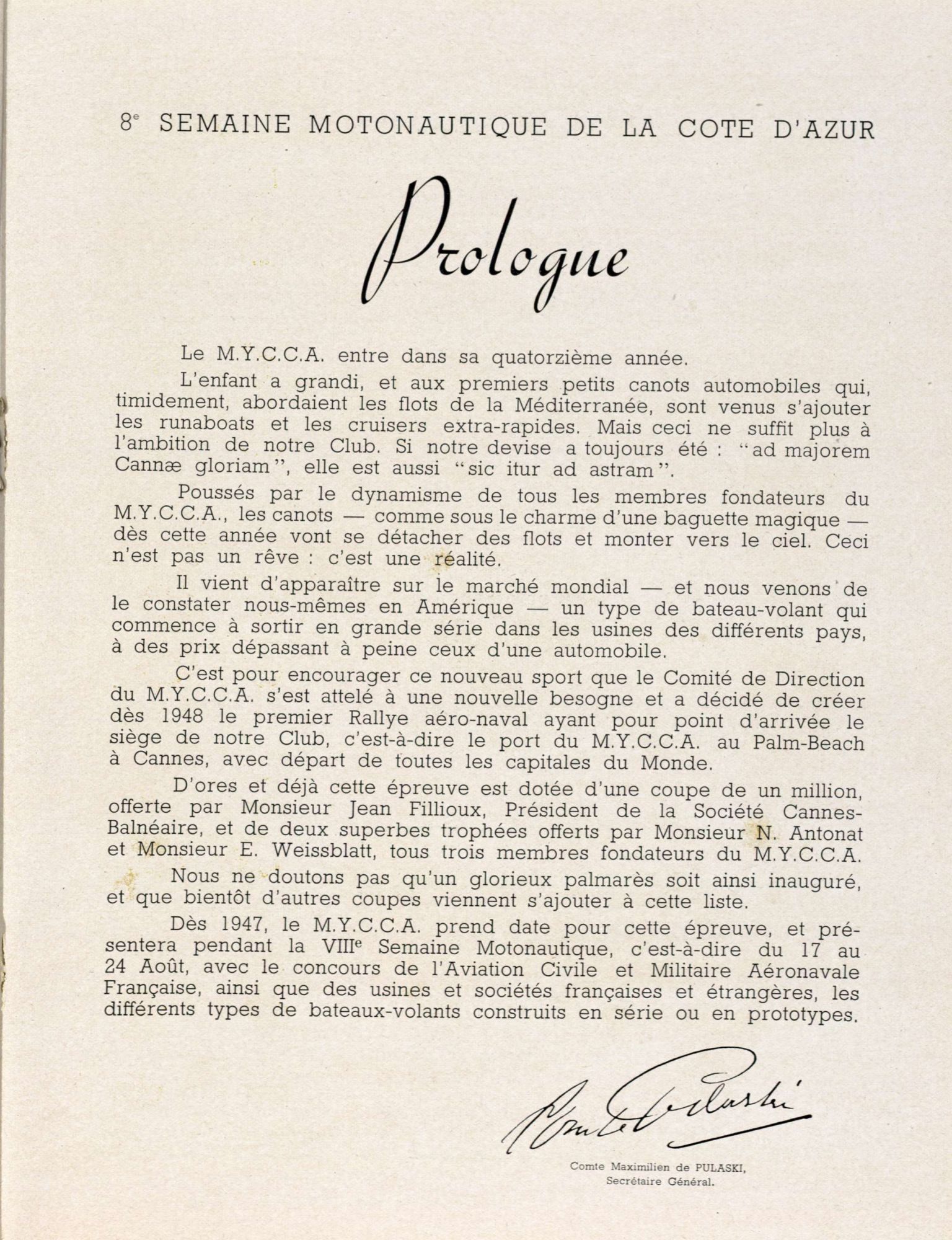 Les yachts de prestige ont toujours été présents en baie de Cannes. Le M.Y.C.C.A. (Motor Yacht Club de la Côte d'Azur) a animé des semaines de compétition nautiques. https://www.yachtclubdecannes.org/fr/histoire-du-yacht-club-de-cannes/