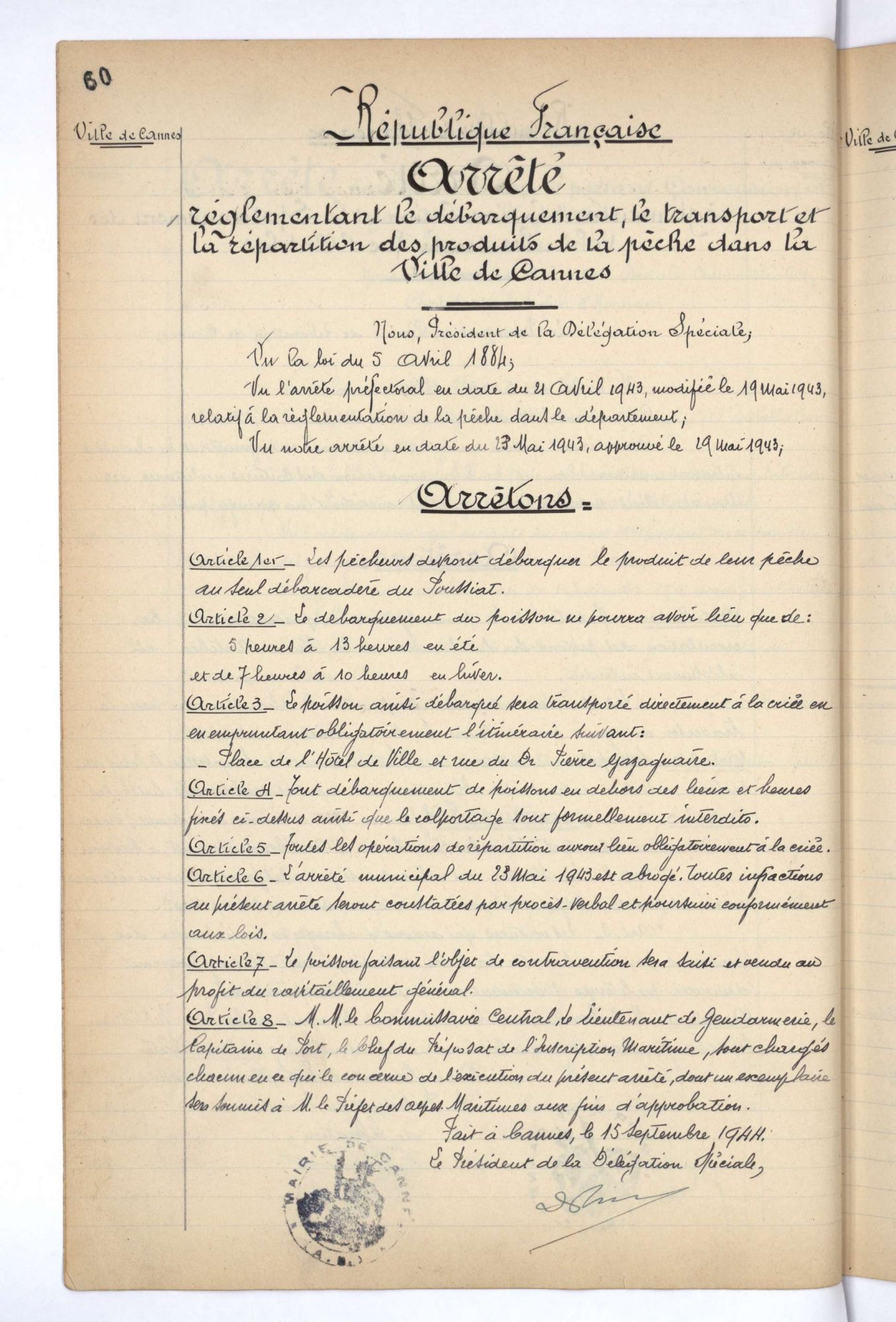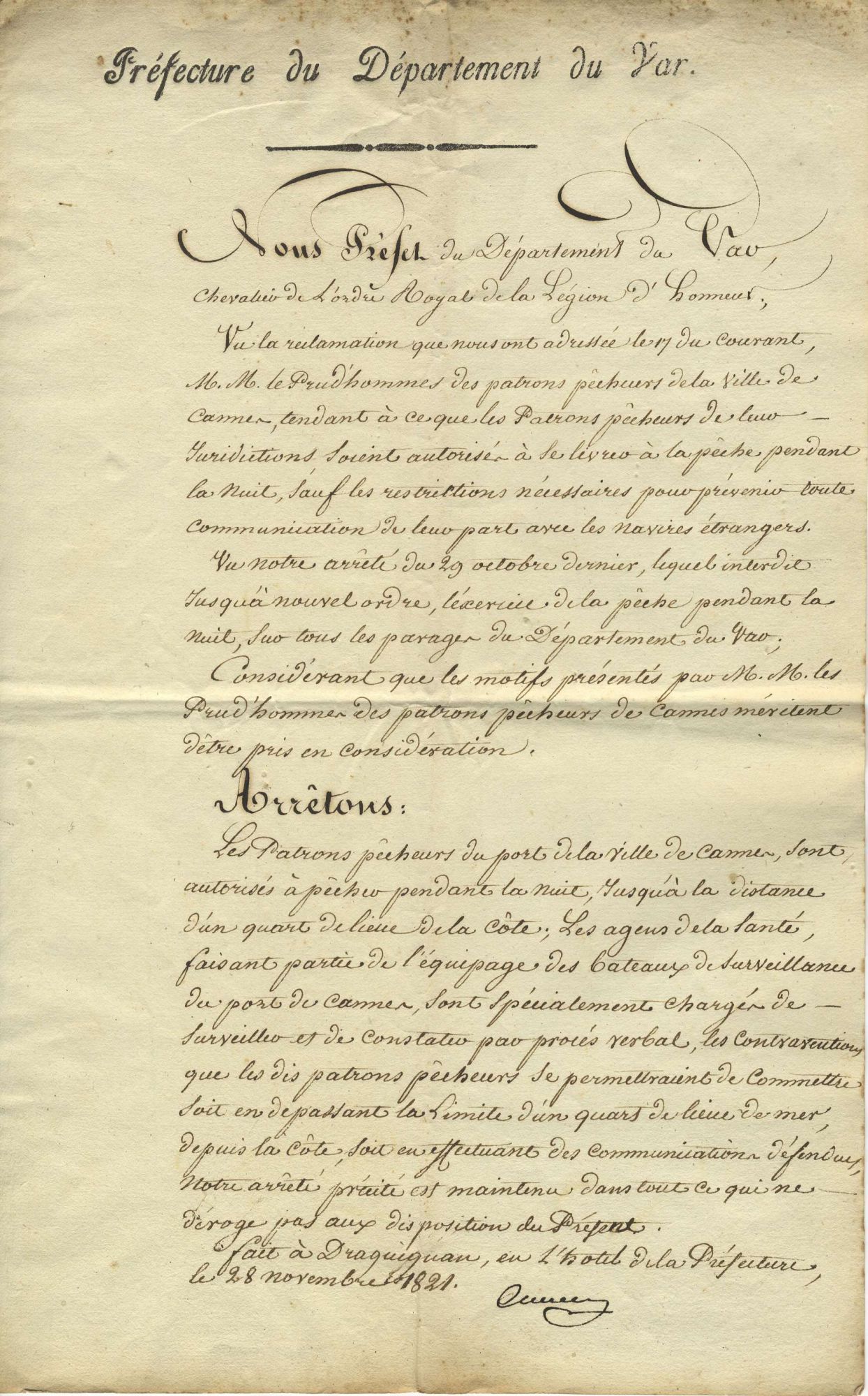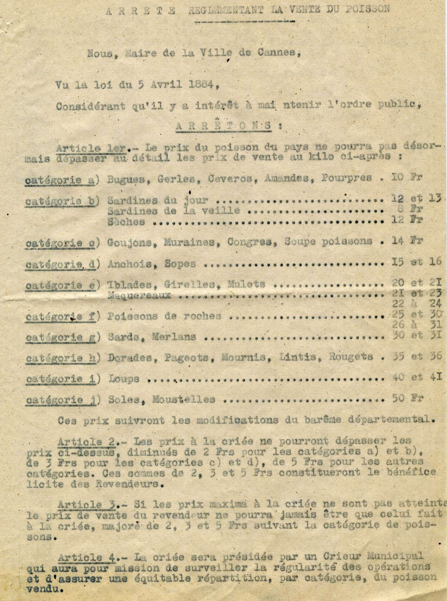 La pêche et son produit fit tôt, dès l'Ancien Régime, l'objet d'une réglementation, et de perception d'impositions. Les 'droits de pêche' étaient âprement discutés (entre les seigneurs successifs et les habitants) et les taxes également. Le port de Cannes fut d'abord consacré à la pêche traditionnelle et sur la Pantiero, l'accueil matinal des retours de pêche précédait la criée, à la Poissonnerie.