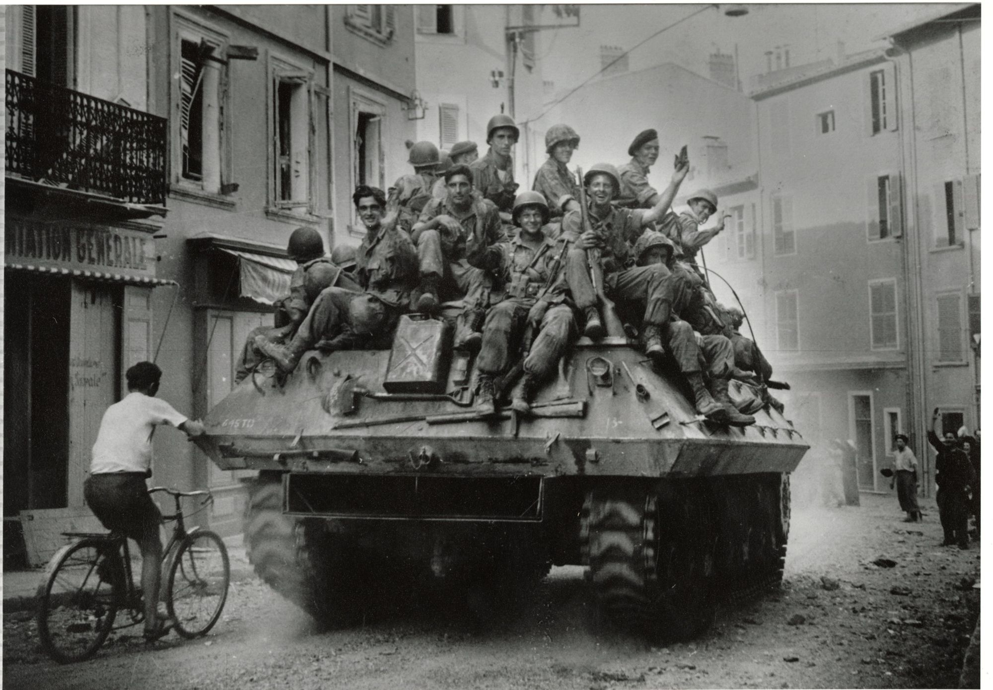 Les soldats américains entrent dans Cannes par l’ouest, 24 août 1944. Photographies Quertant.