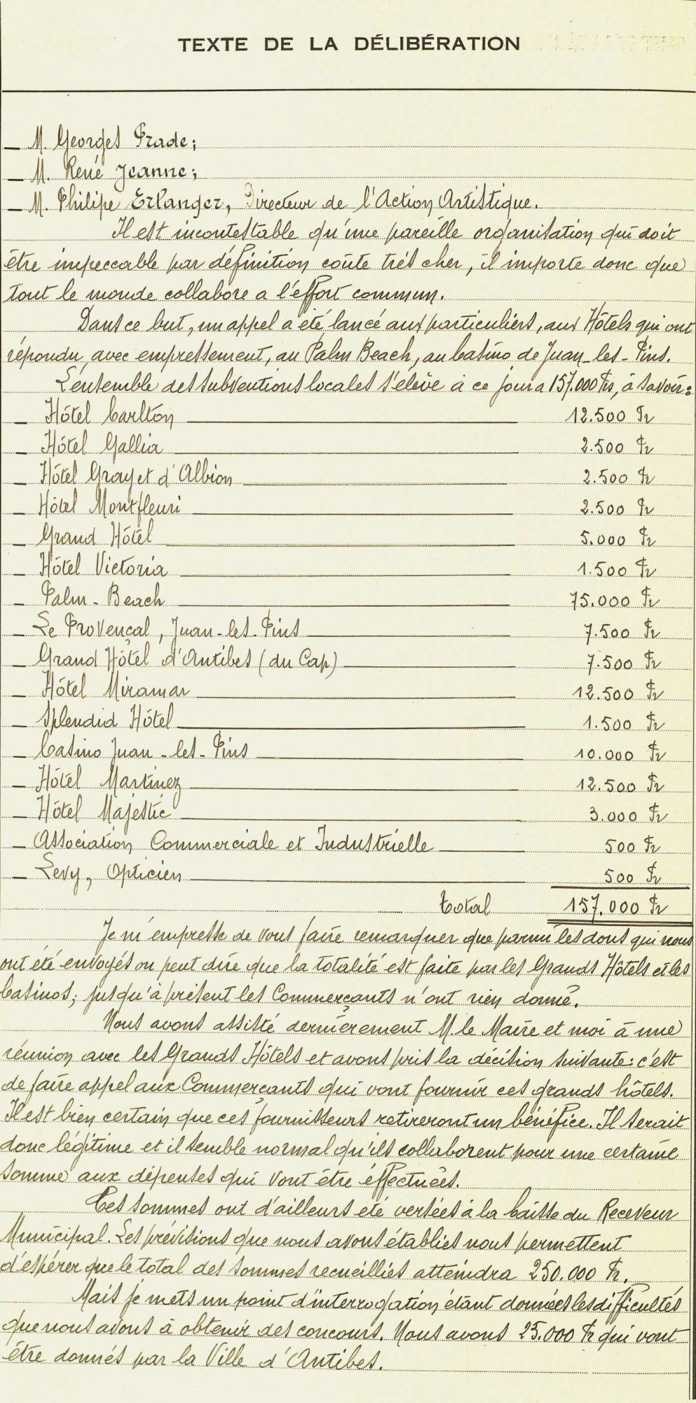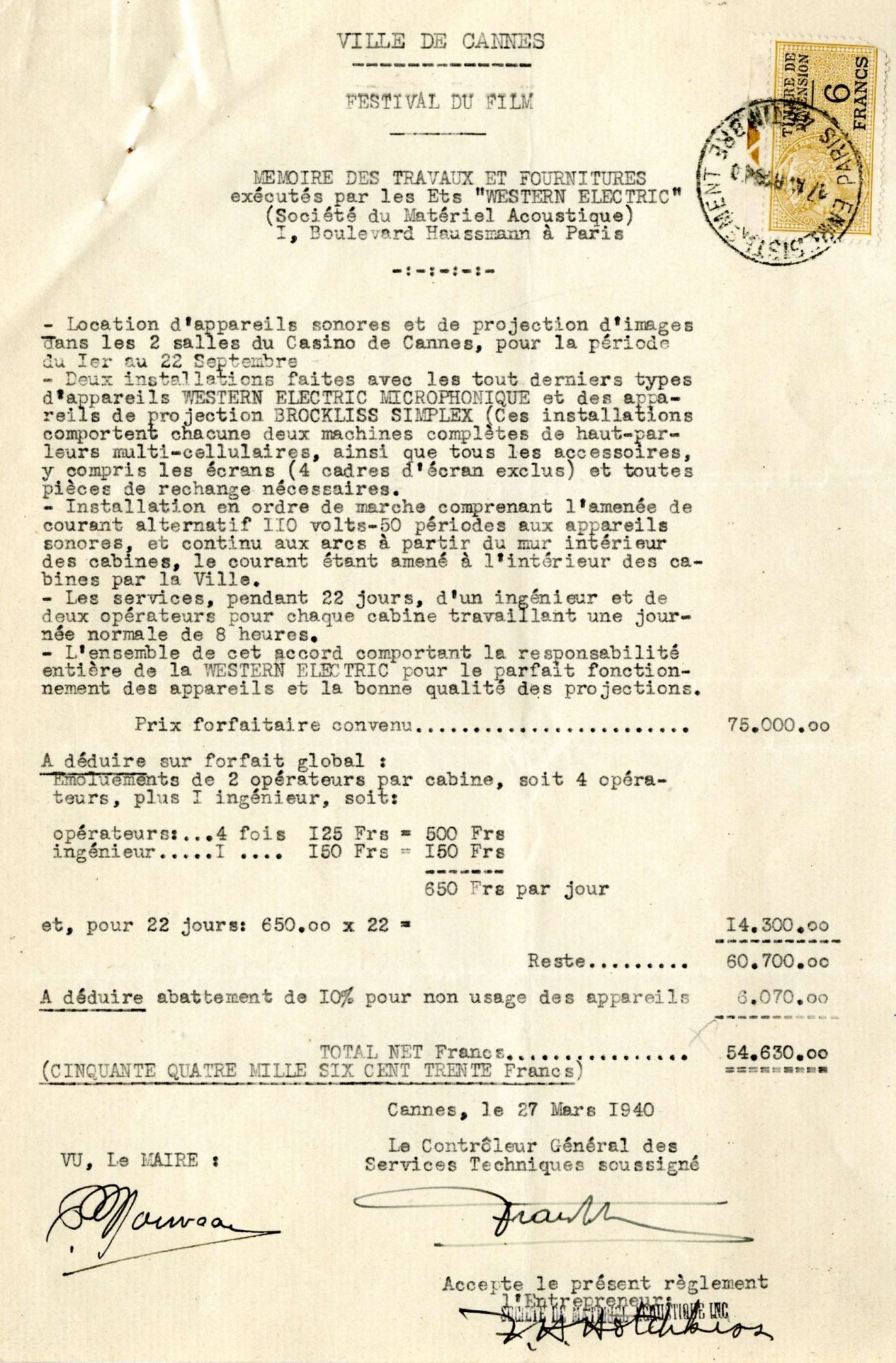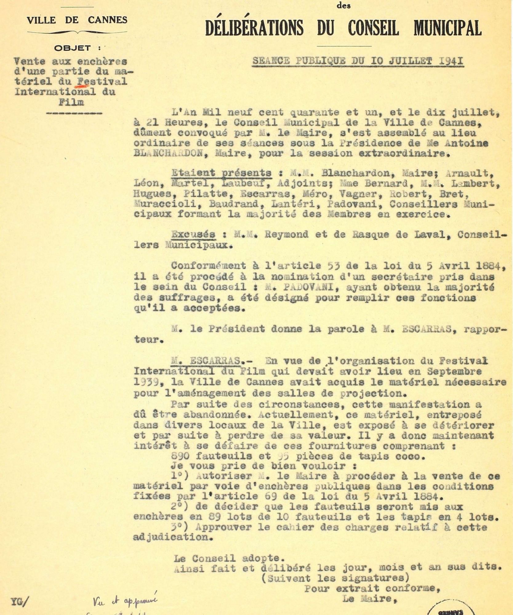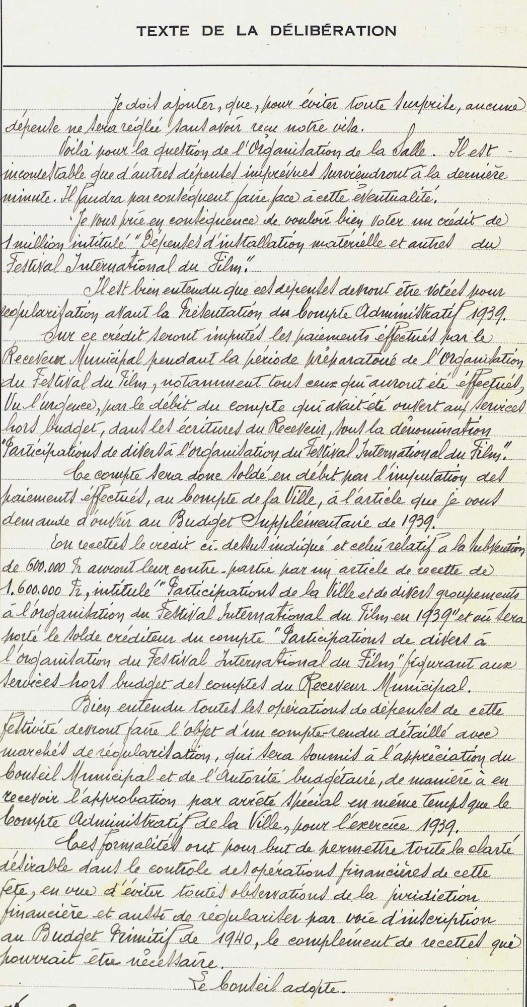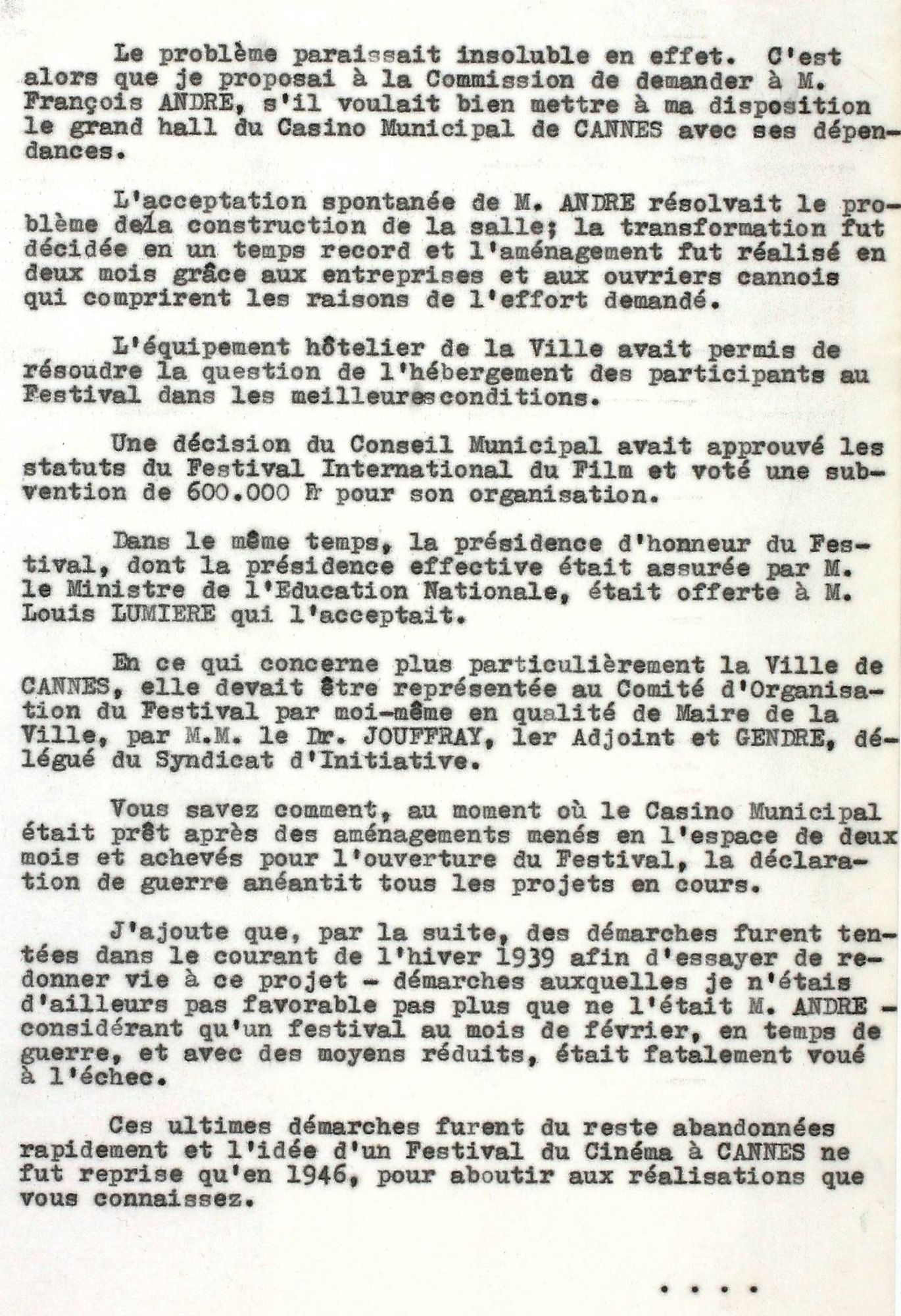 La prise de conscience se fait tardivement, chez les promoteurs du festival, qu'il 'n'aura jamais lieu'. Leur seule excuse est qu'il est tellement attendu par les acteurs, par l'Association Française d'Action Artistique dont le Président est Philippe Erlanger, par les palaces et les casinos, qu'il faut attendre les premiers bombardements et l'invasion italienne pour cesser d'espérer... Le festival ne peut évidemment être sauvé : à la mobilisation générale, tout s'arrête, faute de public !