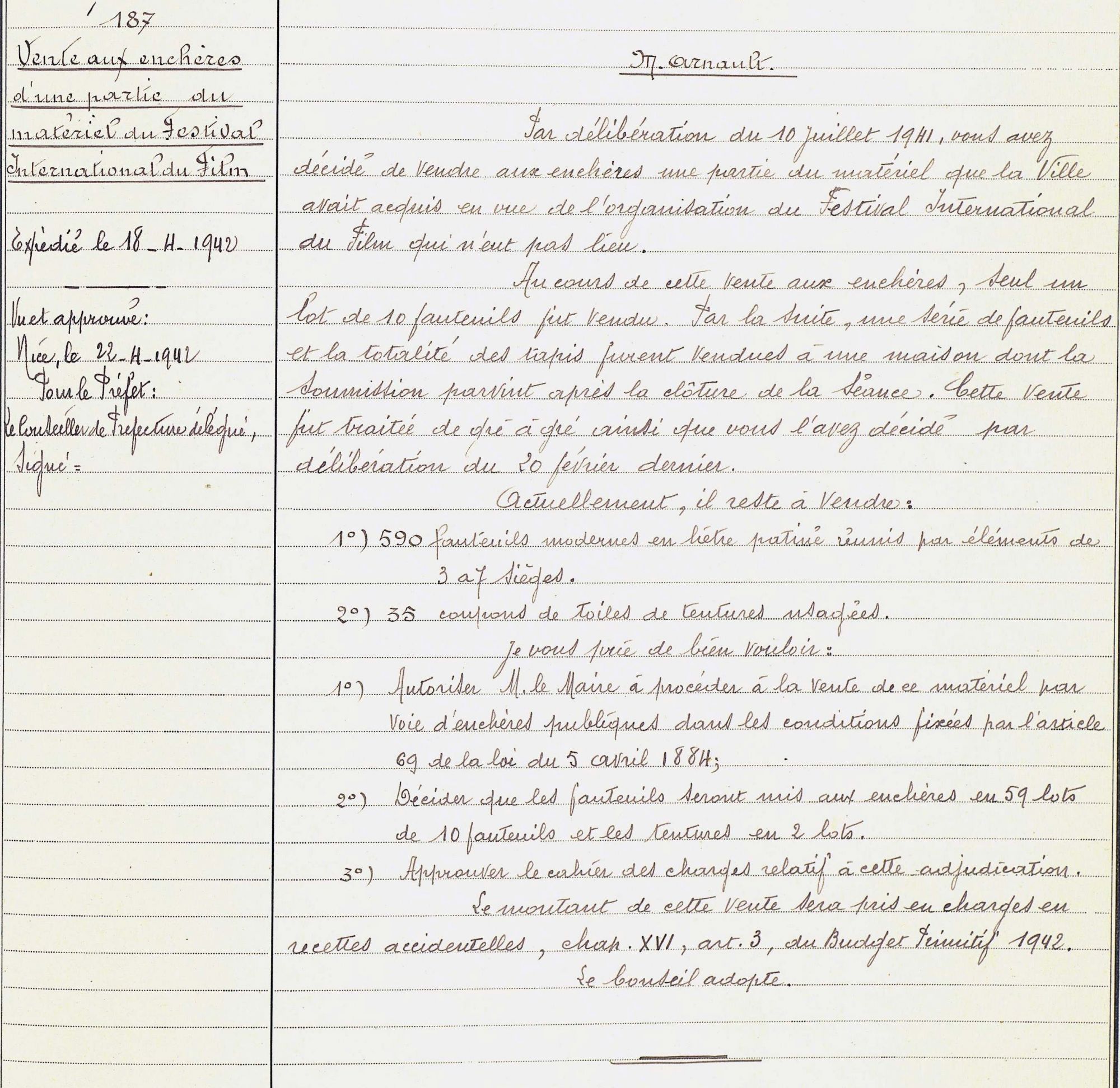 En 1941, il y eut une vente aux enchères d'une partie du matériel acheté pour les salles de projection, suivie en 1942 d'autres ventes... La guerre s'installe.