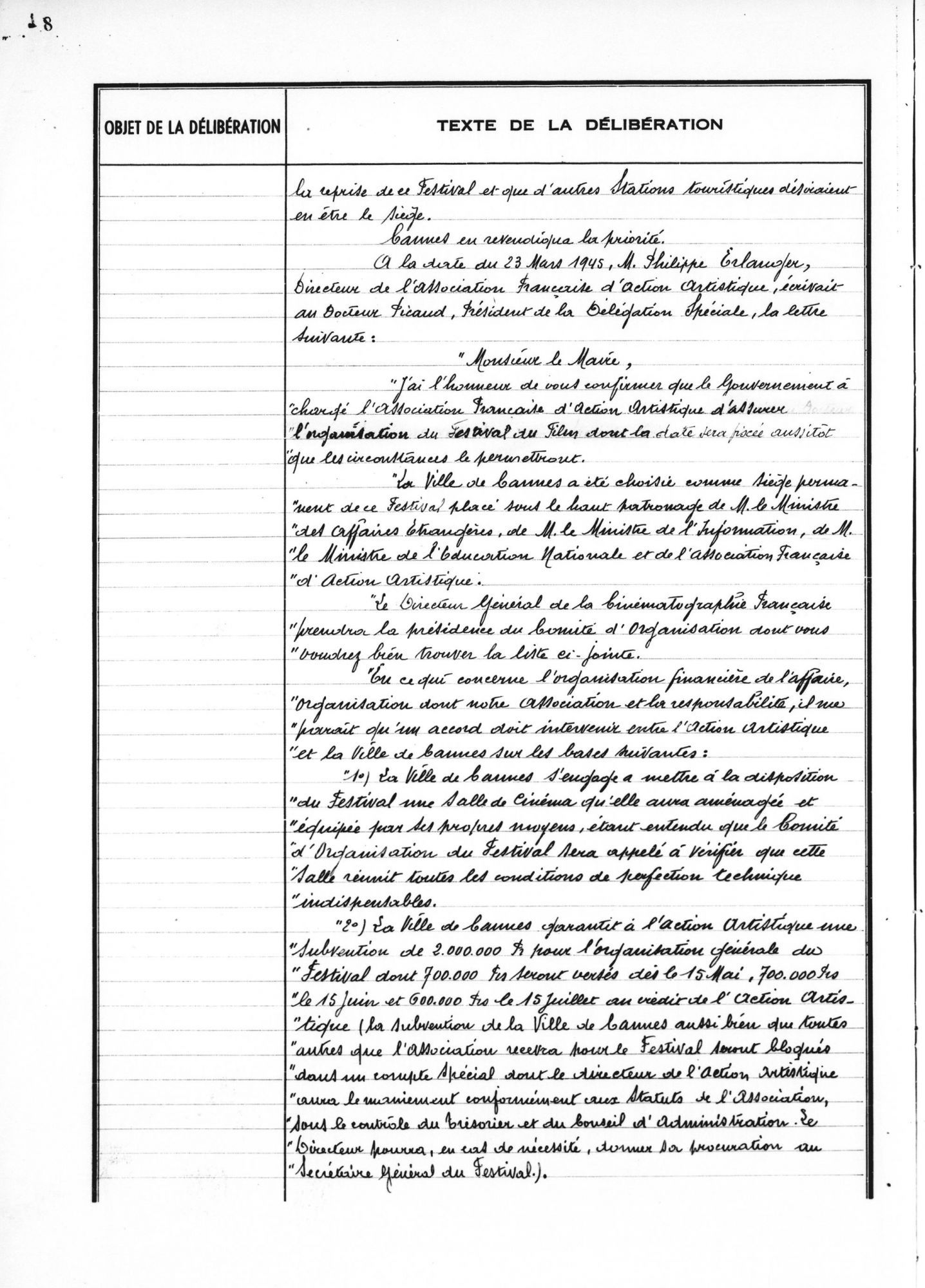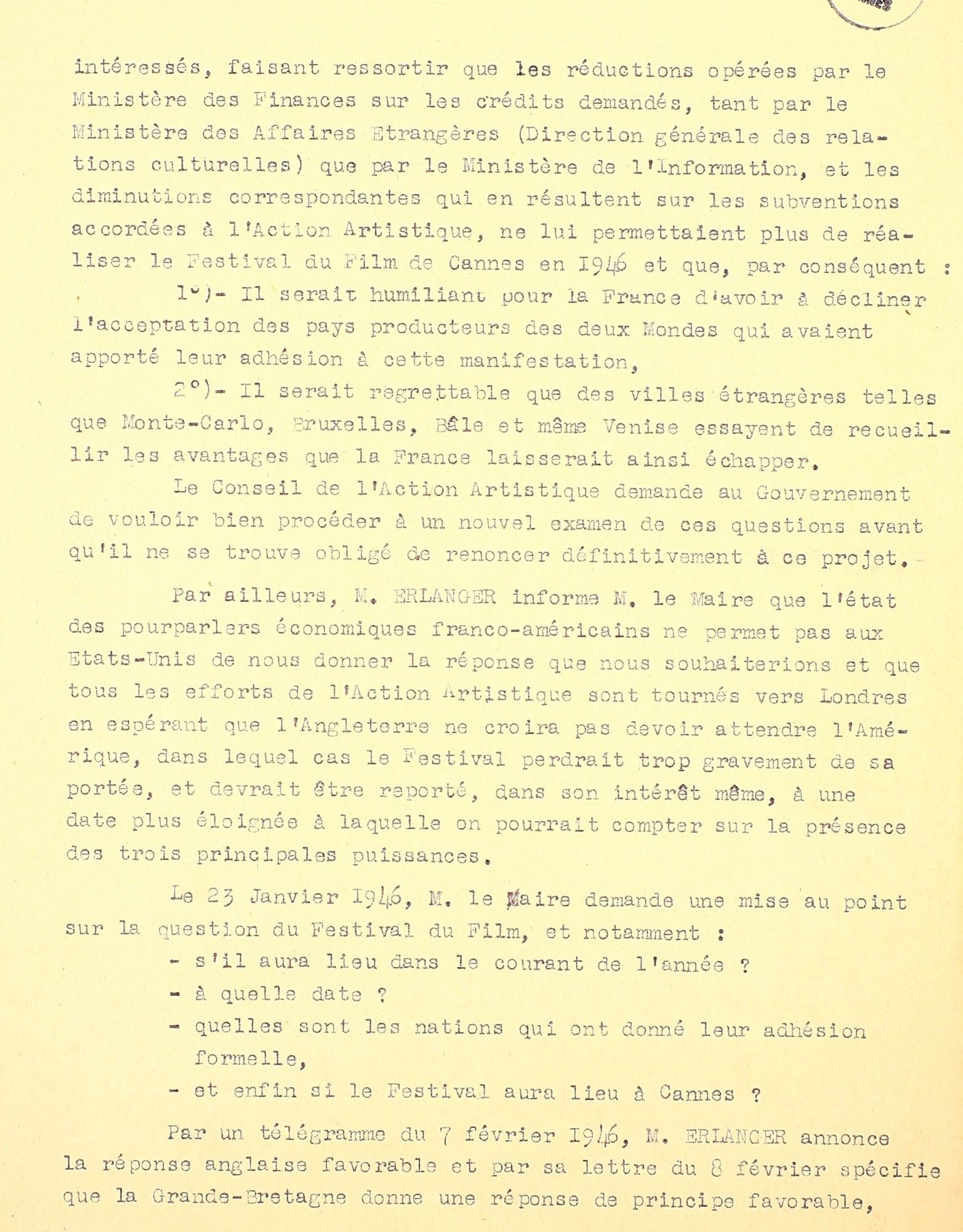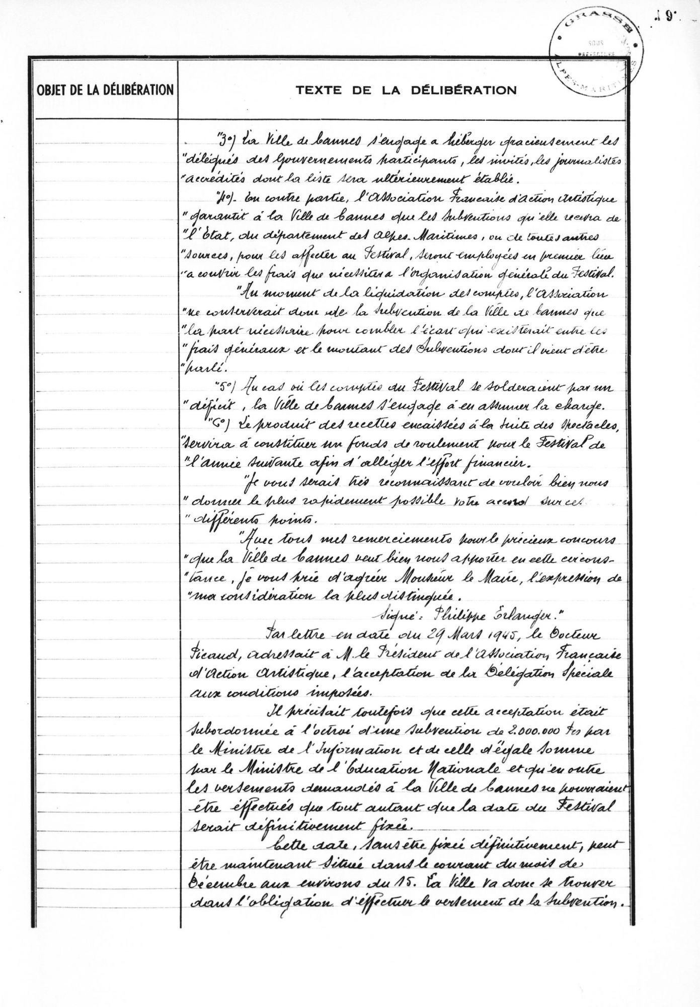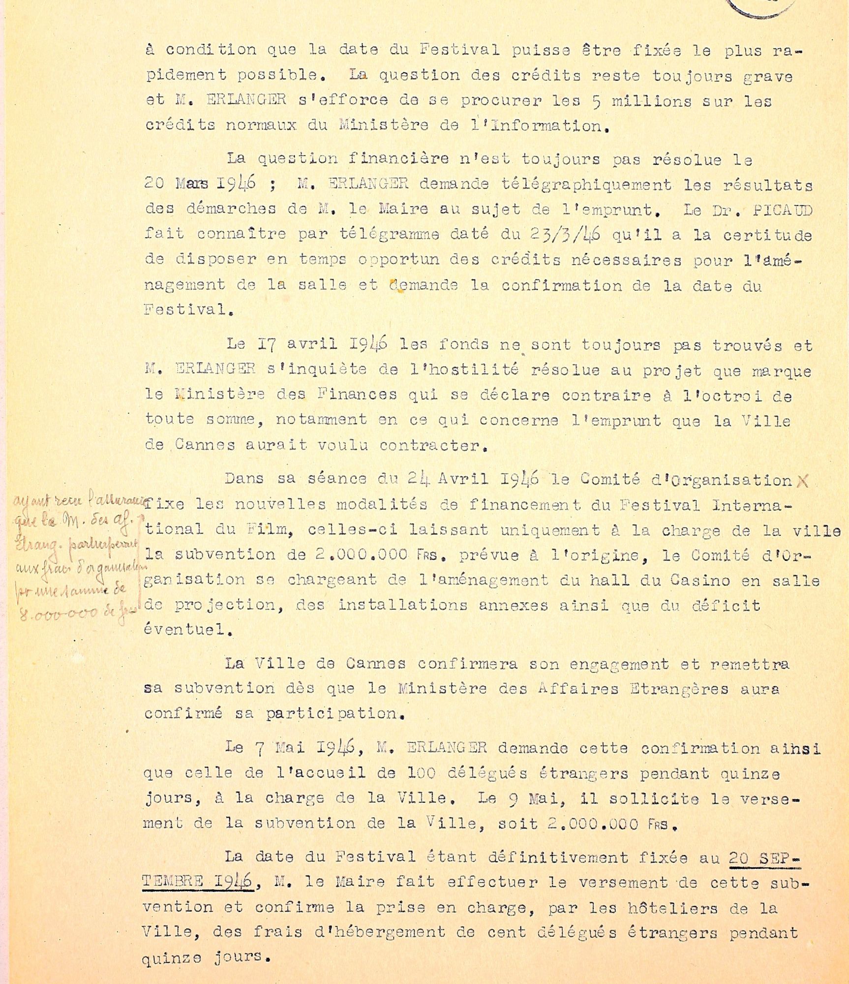 Mais les difficultés d'approvisionnement en matières premières, le chantier du Palais qui s'éternise avec un contentieux, feront annuler le festival en 1948.