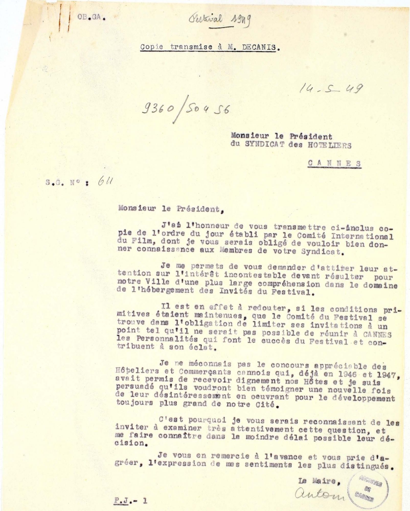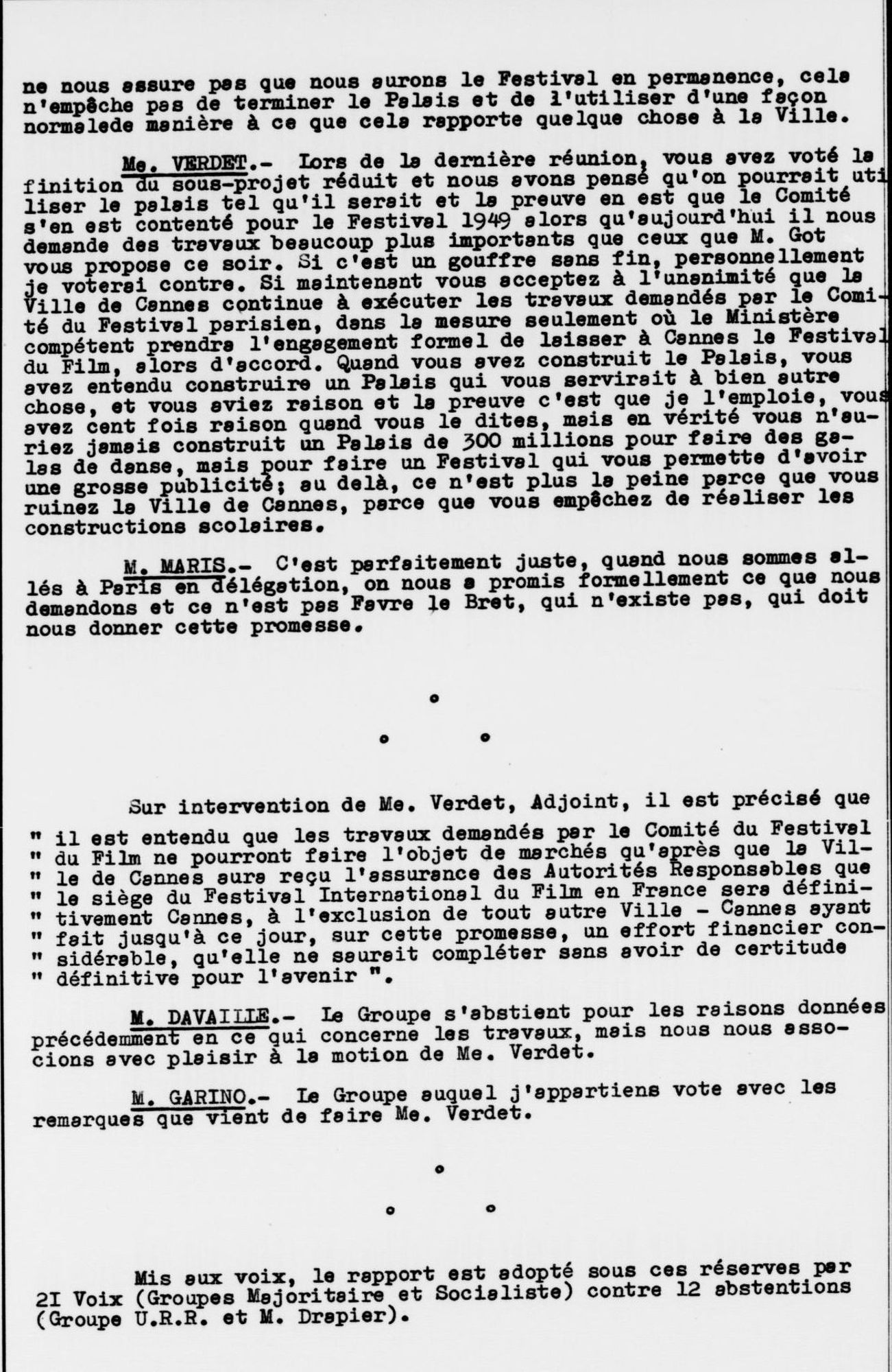 En 1959, le Marché du Film qui se déroulait officieusement dans les salles de la rue d'Antibes, devient une manifestation officielle.