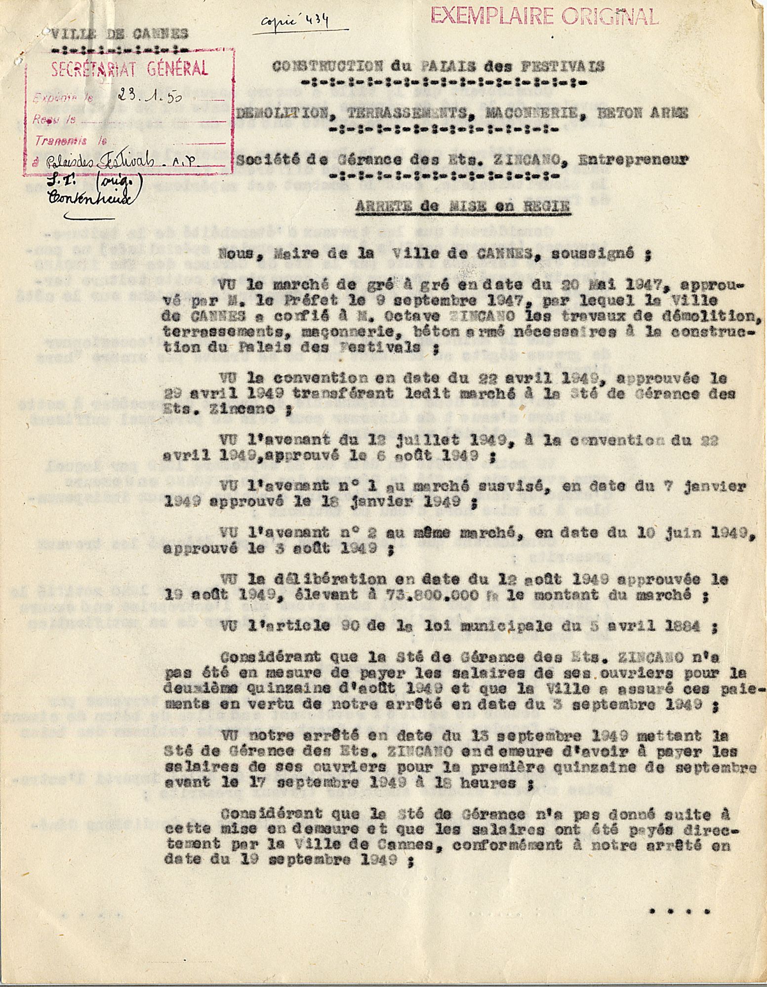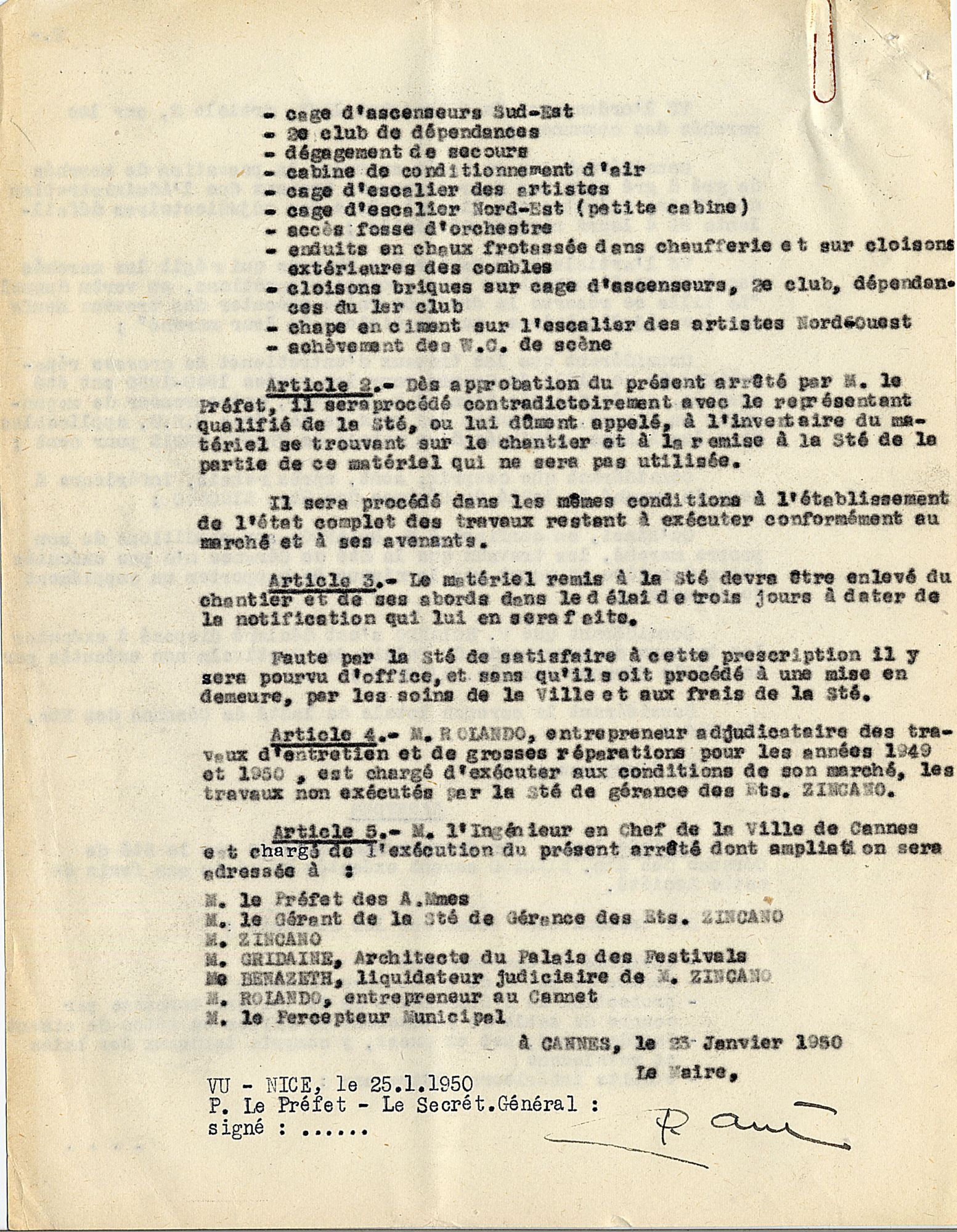 En 1949, ce sera l'inauguration du premier "Palais des Festivals" (qui sera appelé Palais Croisette à partir de 1982, et qui sera détruit en 1989).