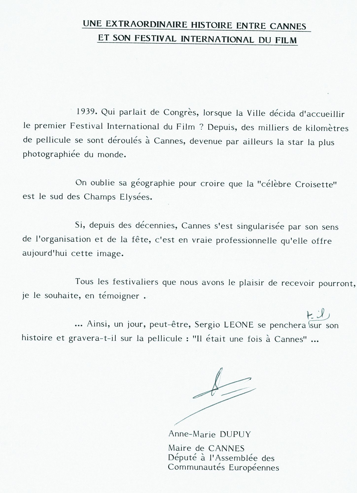 La ville de Cannes pourra fêter, avec faste, les 50 ans du Festival, en 1997 !