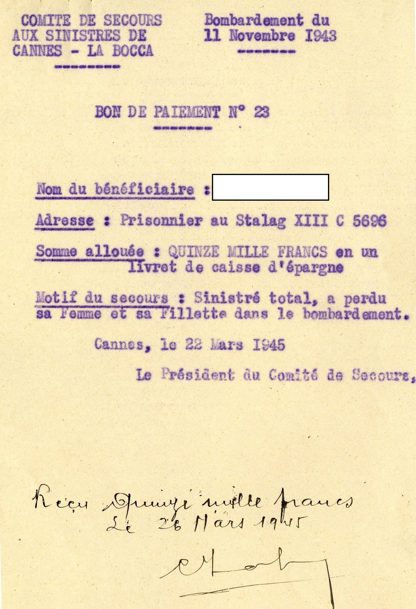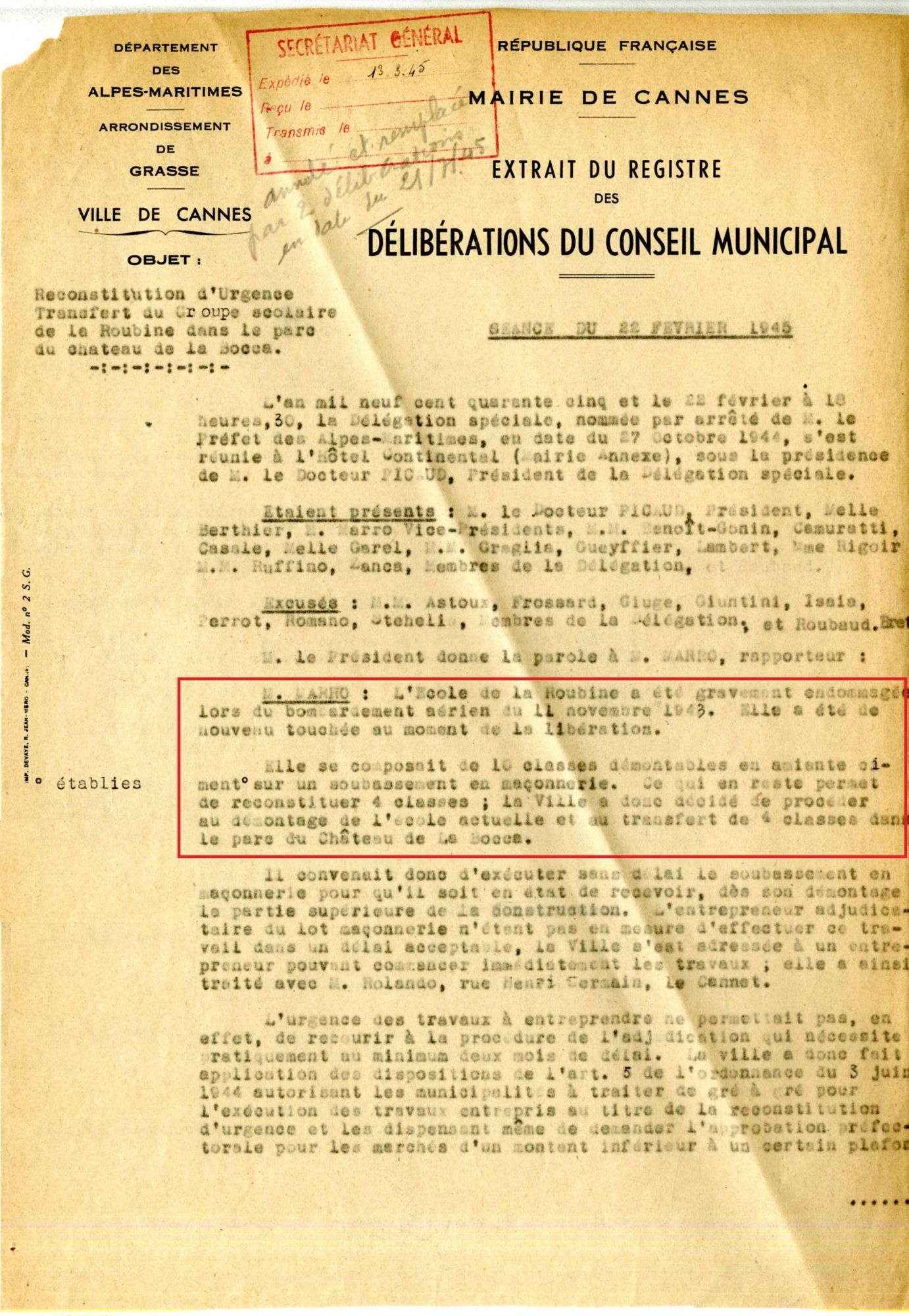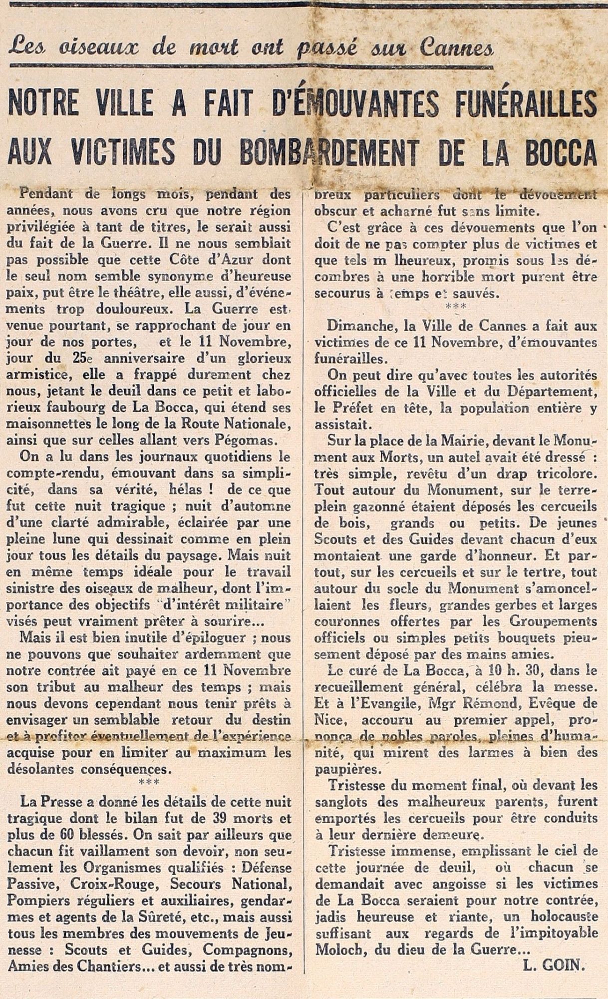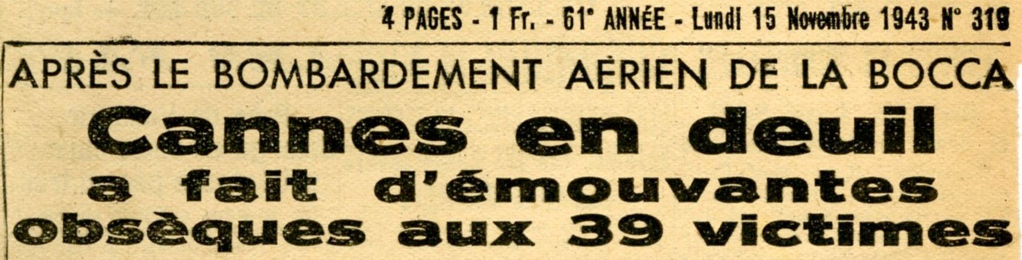 Témoignages du Bombardement de la Bocca - à lire dans le Cannes Soleil n°142 de juin 2014 (cote Archives Per10) :