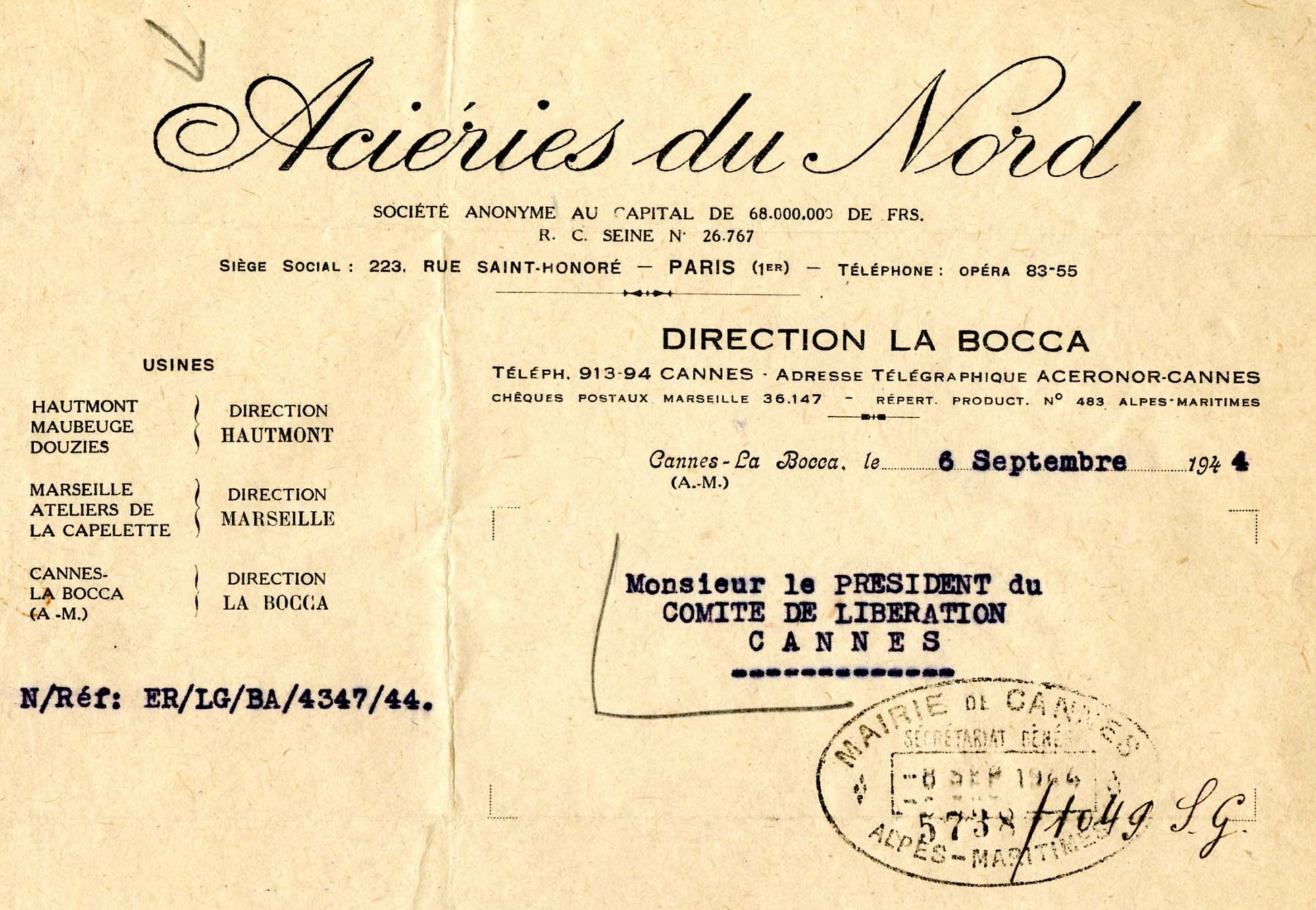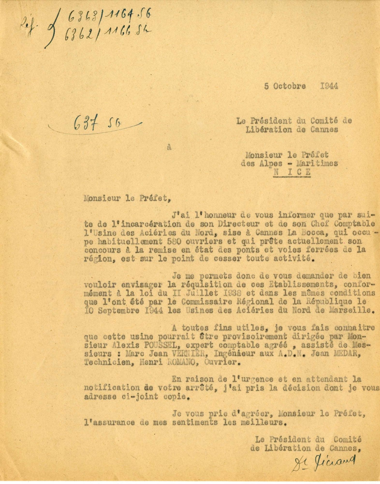 Pour comprendre la situation des entreprises locales au moment de la guerre, consulter sous la cote BH1529, le mémoire de M. Zerrouki : "Histoire du centre spatial de Cannes - Mandelieu pendant la seconde guerre mondiale". Publié en 2015.