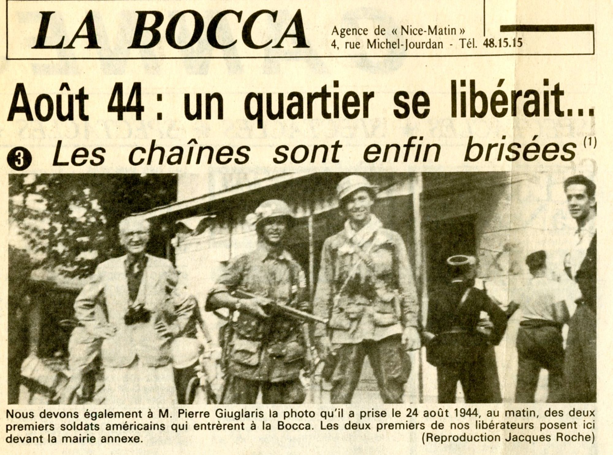Joseph Richelmi : « J’ai vu les bombes tomber ». José Revel : « Une épaisse fumée envahissait la Bocca ». Robert Béraudo : « L’école de la Roubine a été écrasée ». Pierre Giuliani : « Les résistants boccassiens étaient au courant que le débarquement se préparait ».