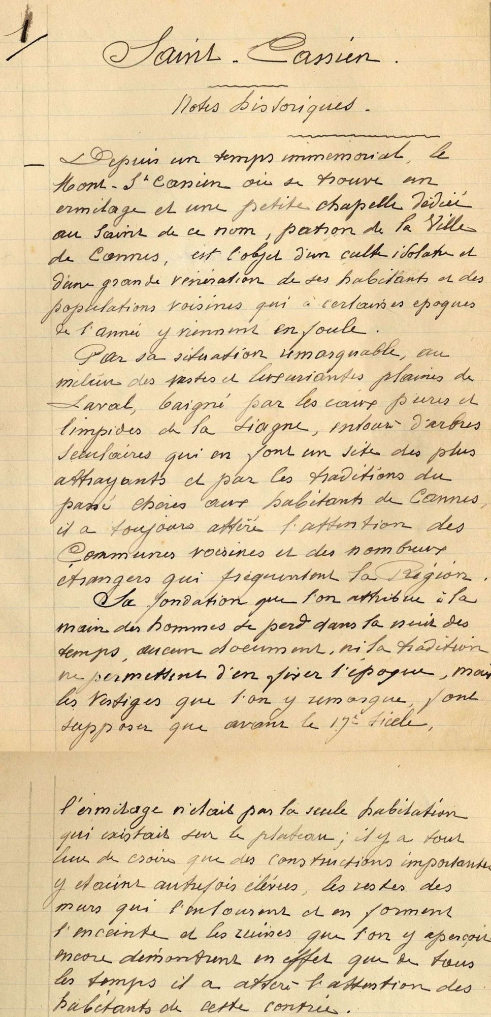 Site extrêmement riche au plan archéologique, la butte était surmontée d'une construction identifiée comme un sanctuaire antique (dit 'temple de Vénus') et d'un système de fortification médiéval. Au pied de la butte, se trouvait une zone funéraire, datée par des séries monétaires. L'attachement des Cannois à la butte de Saint-Cassien est symbolisé par leur lutte, au moment de la Révolution française, pour empêcher que la chapelle construite dans ce quartier ne soit vendue comme "bien national" et qu'elle reste la propriété de citoyens désireux de conserver les traditions. Réunis, certains d'entre eux ont alors créé un rectorat afin de préserver ce lieu béni et de perpétuer la tradition des "romérages" (grandes fêtes provençales), où chaque année l'on vient danser, festoyer et partager un pique-nique champêtre. La chapelle de la butte de St-Cassien est en effet un lieu de romérage.
