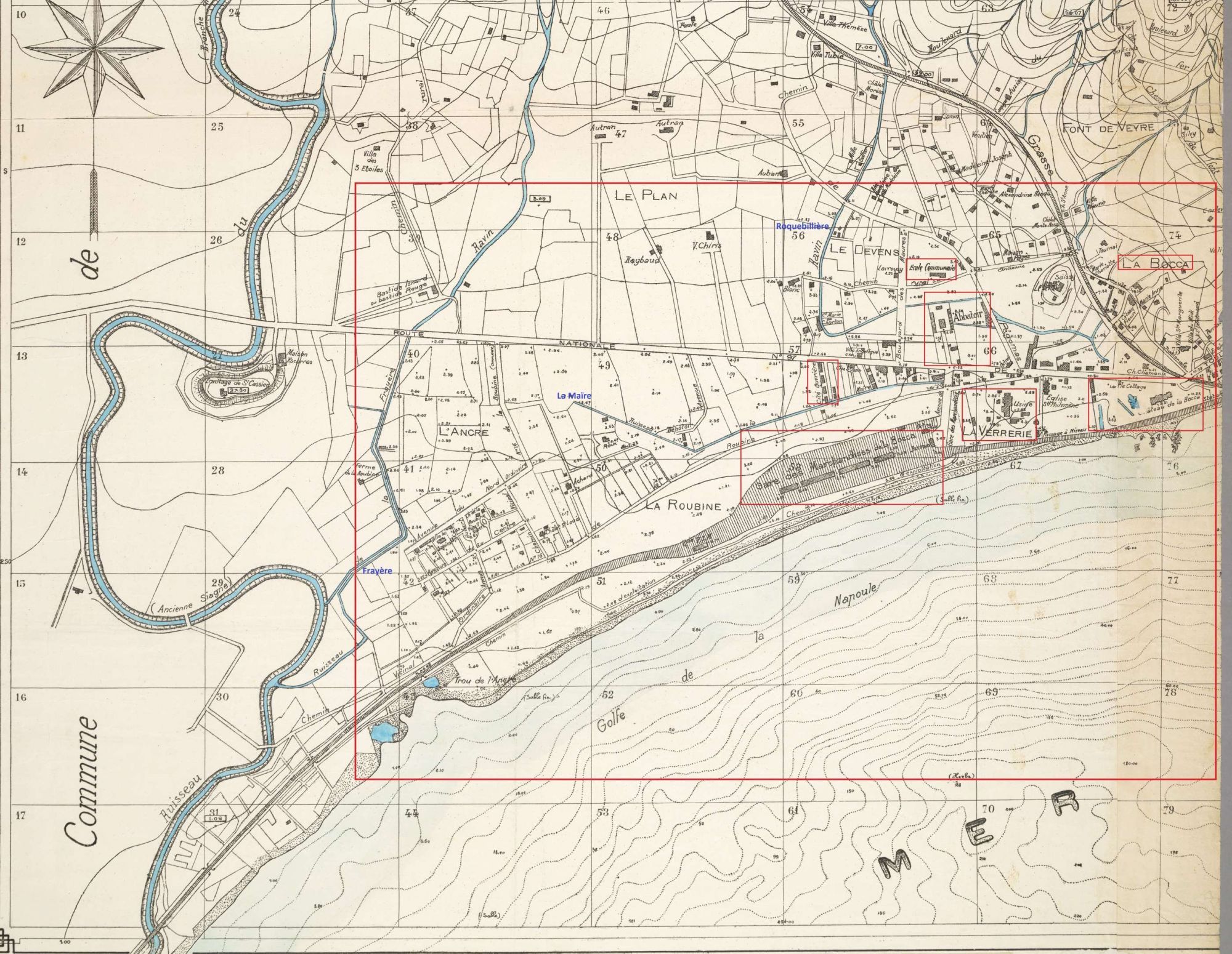 Reste à savoir comment de : Albocas on a pu arriver à : La Bocca. Cette mutation s’explique par les lois d’évolution phonétique. Le premier élément AL, va être considéré comme un article contracté formé de la préposition : – a et de l’article défini : – l, et on assiste à un découpage : le- ou la- d’une part : Bocas > Boucas de l’autre, d’où : le boucas ou : la boucas.