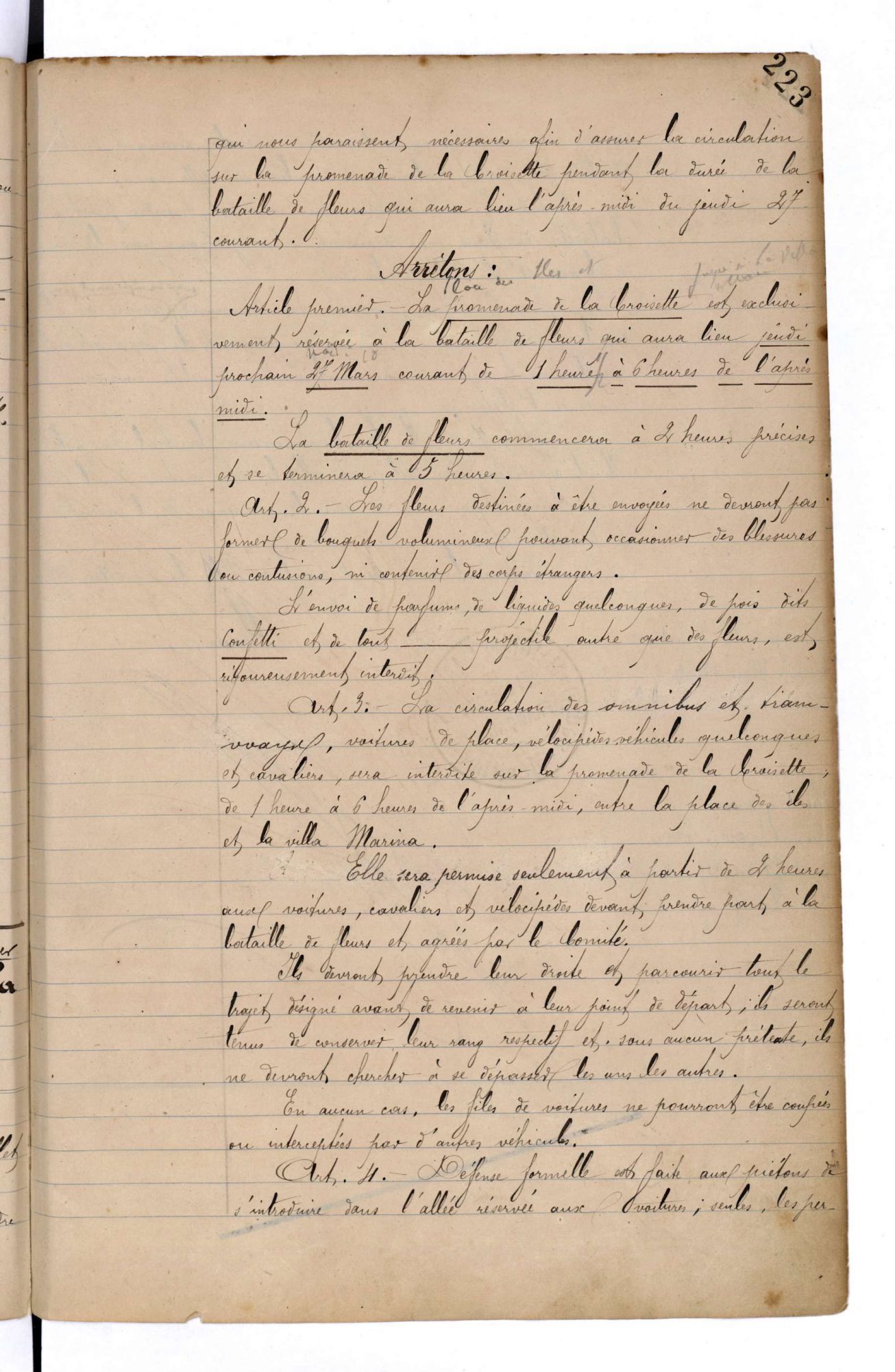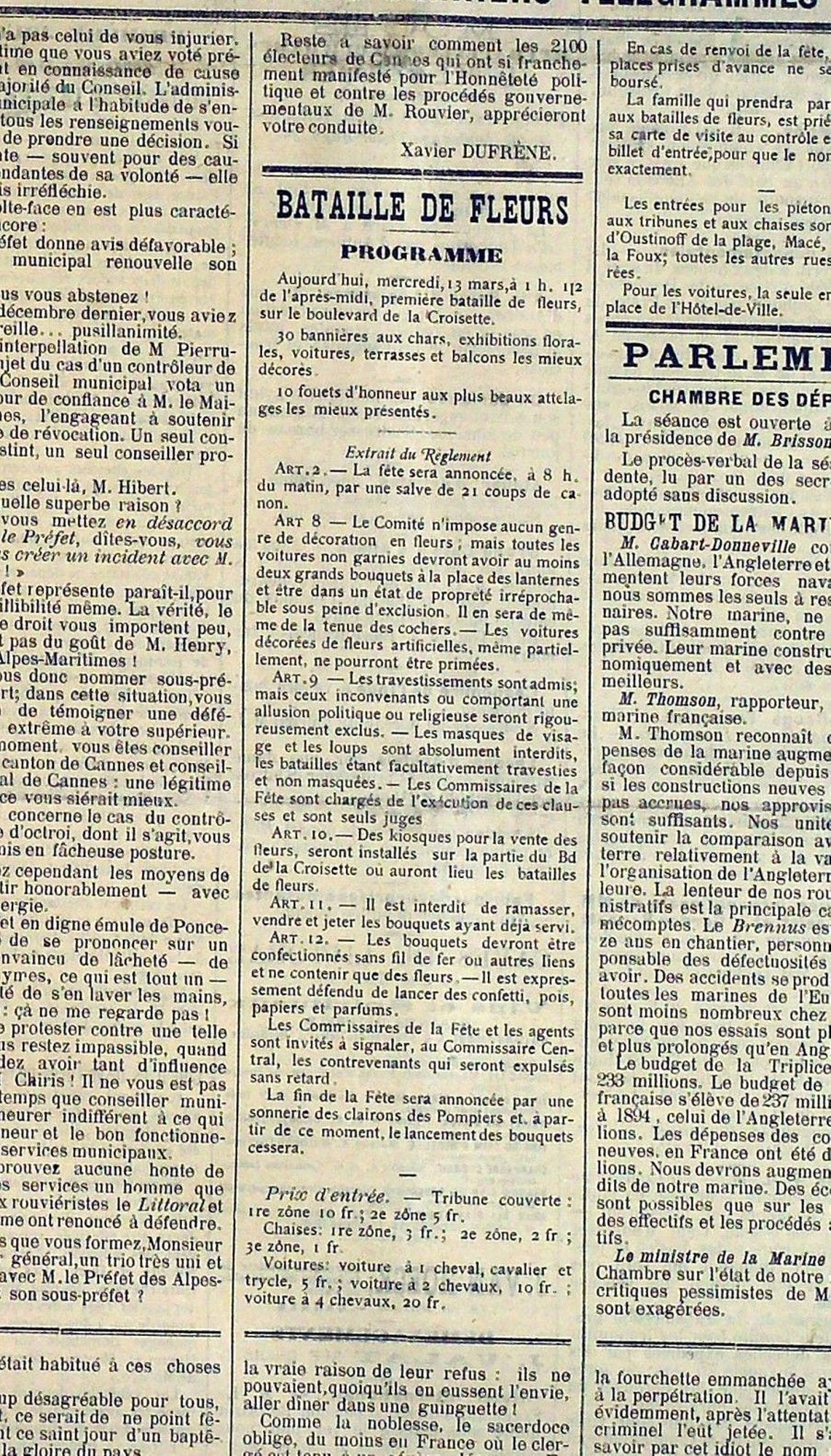 Les batailles de fleurs, aujourd'hui appelés corsos fleuris, ont longtemps constitué des fêtes prisées des hivernants, festivités qui remontent à 1835, où l'on trouve trace d'une "fête des fleurs".