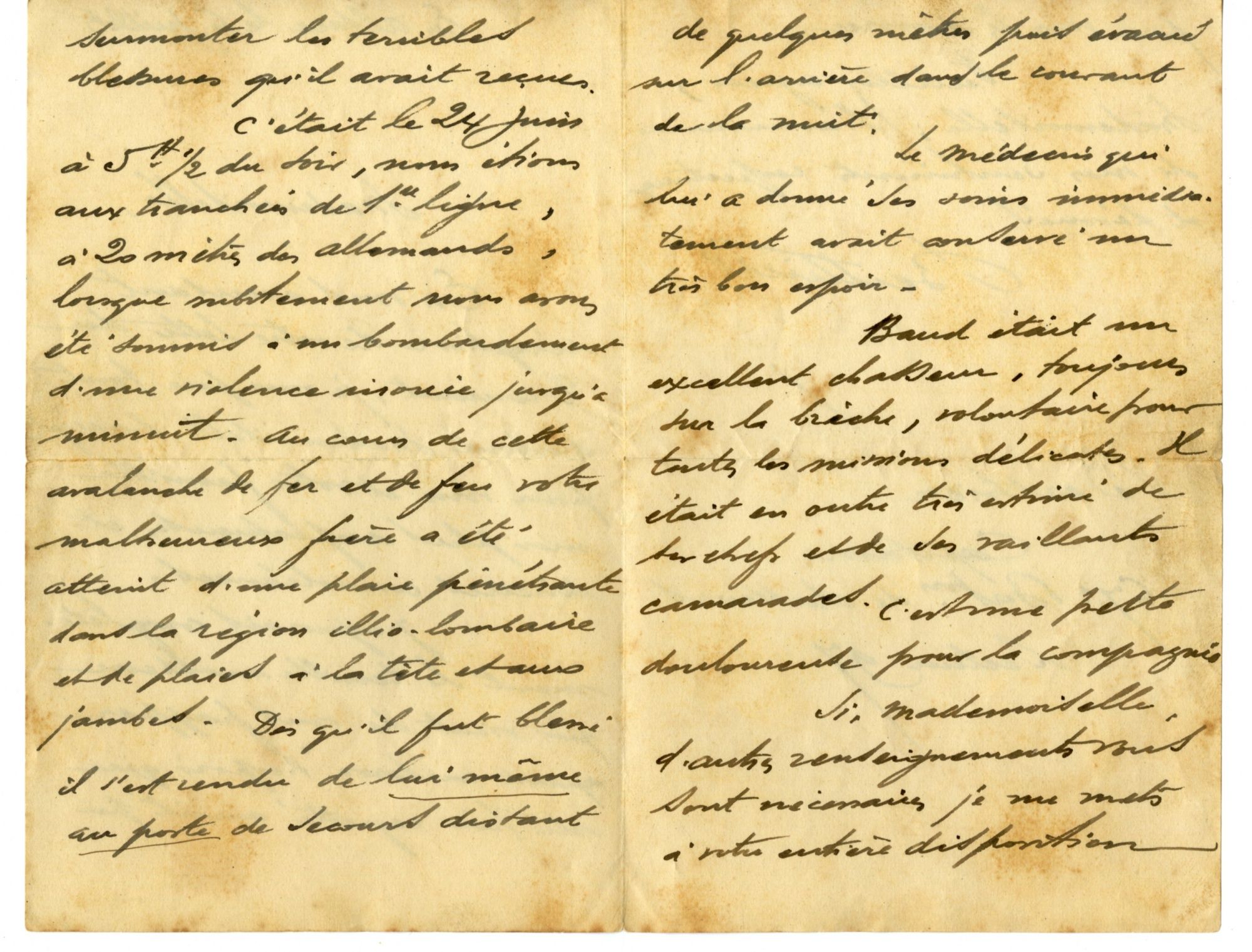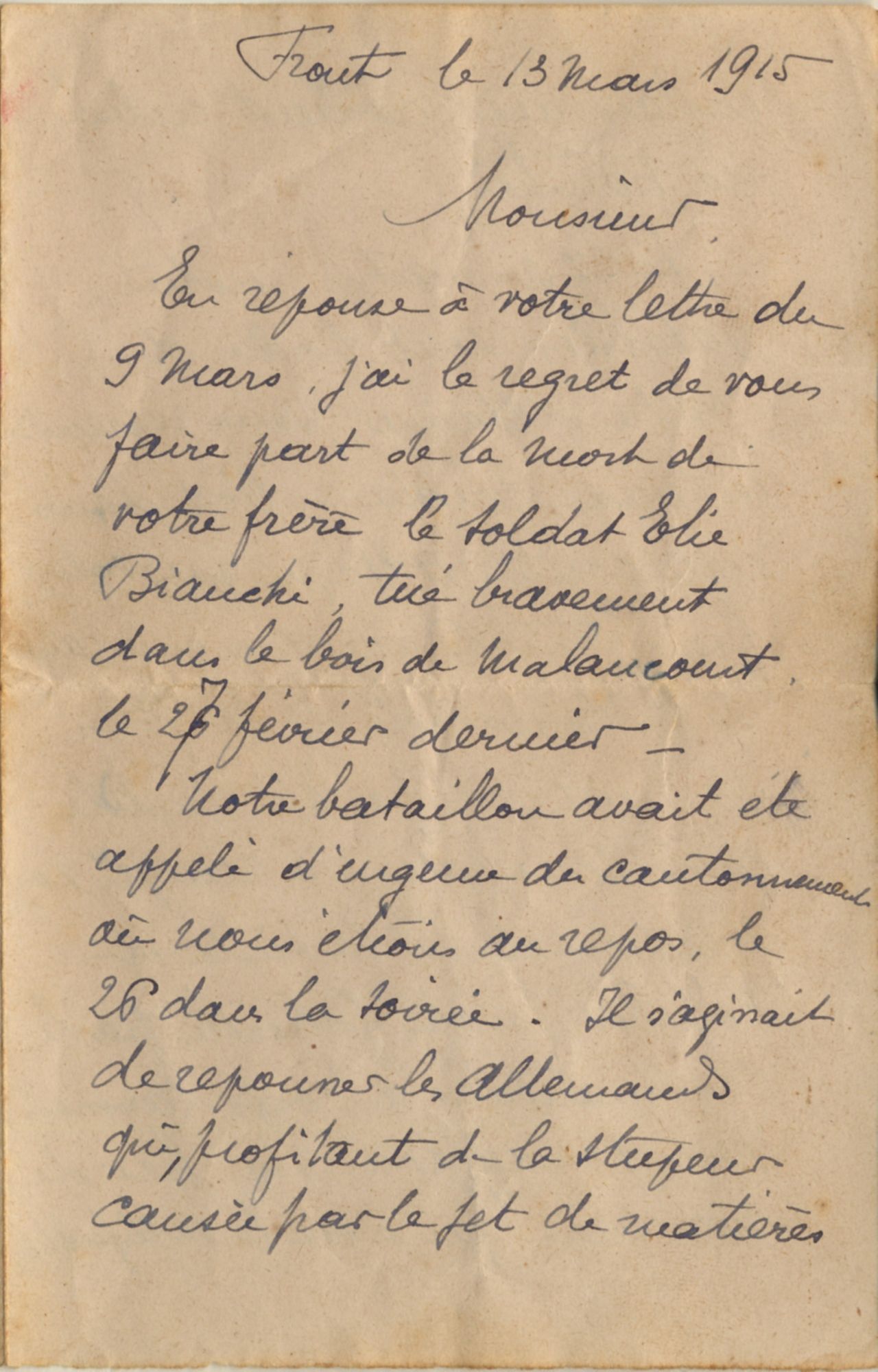 Il nous est parvenu un grand nombre de lettres de poilus, en raison de la pratique fréquente et gratuite de la correspondance dans les tranchées. Toutes ont l’avantage de représenter le quotidien des hommes, avec leurs détresses et leurs espoirs.