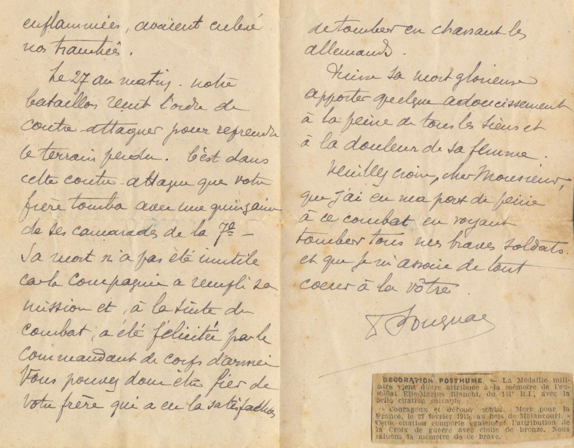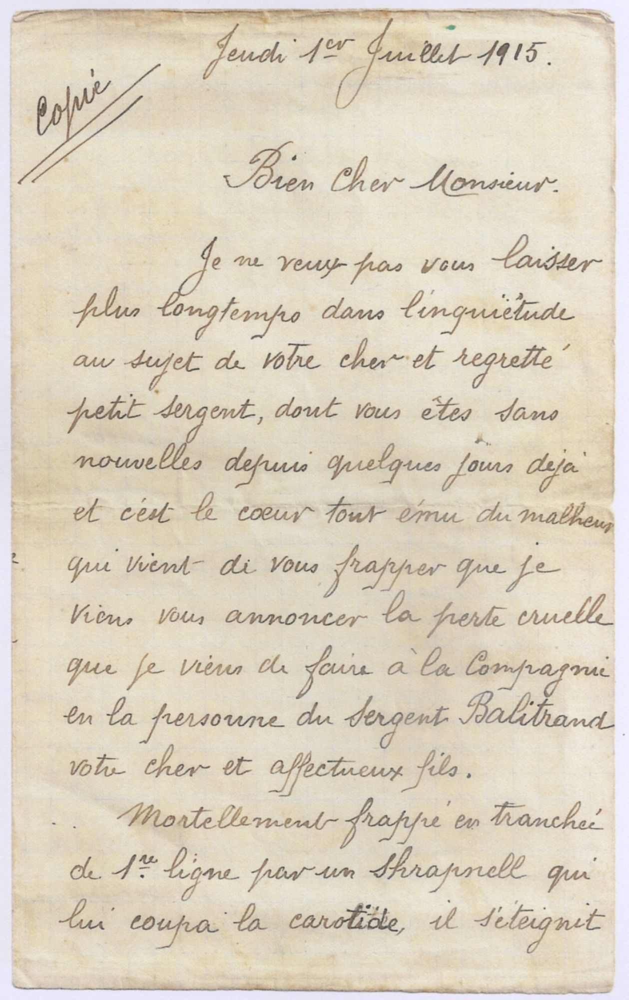 Parfois les lettres apportent aussi de mauvaises nouvelles... elles sont redoutées autant qu'espérées. Les gradés ont parfois à coeur d'adoucir la peine des familles en envoyant des lettres circonstanciées.