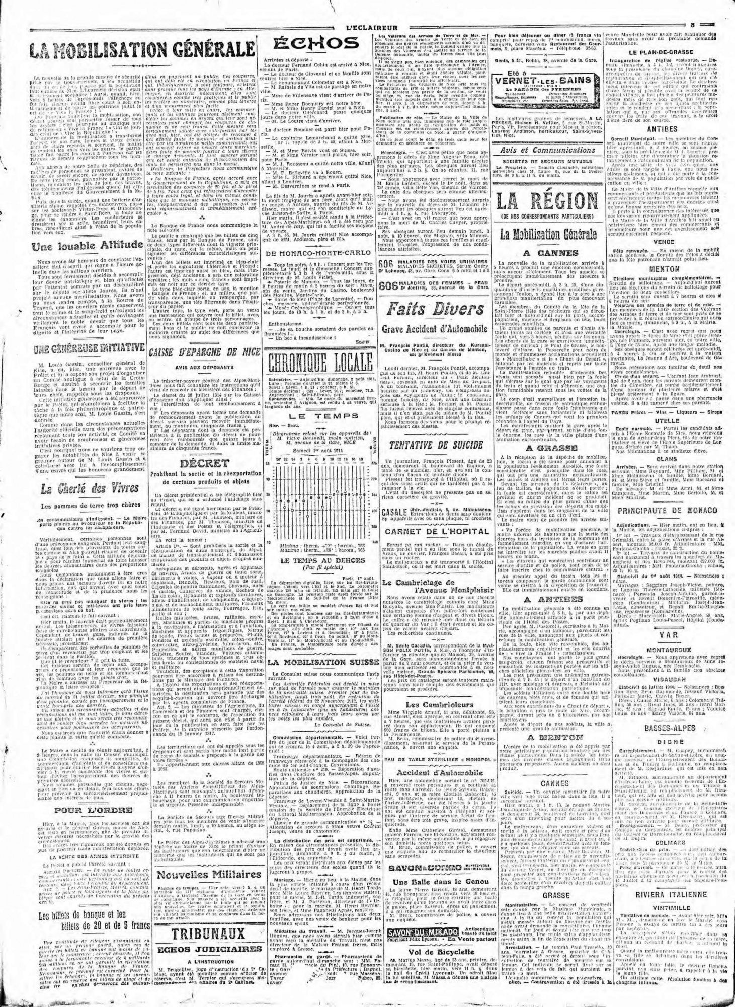 Les classes de 1887 à 1912 sont rappelées le 1er août 1914 soit 5870 hommes. Toutes les compétences sont requises, du comptable à l'aviateur...