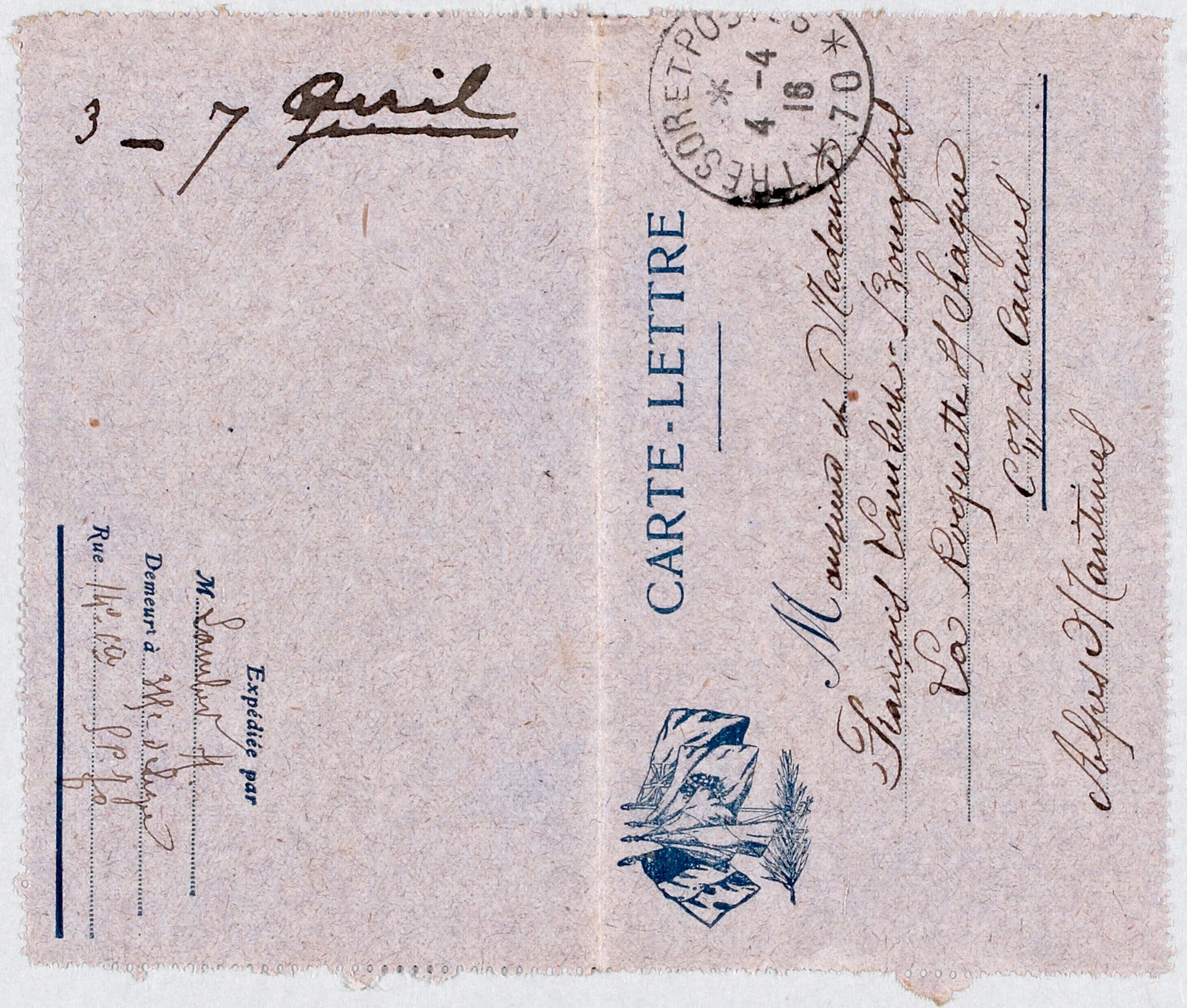Lettre du 03 avril 1916