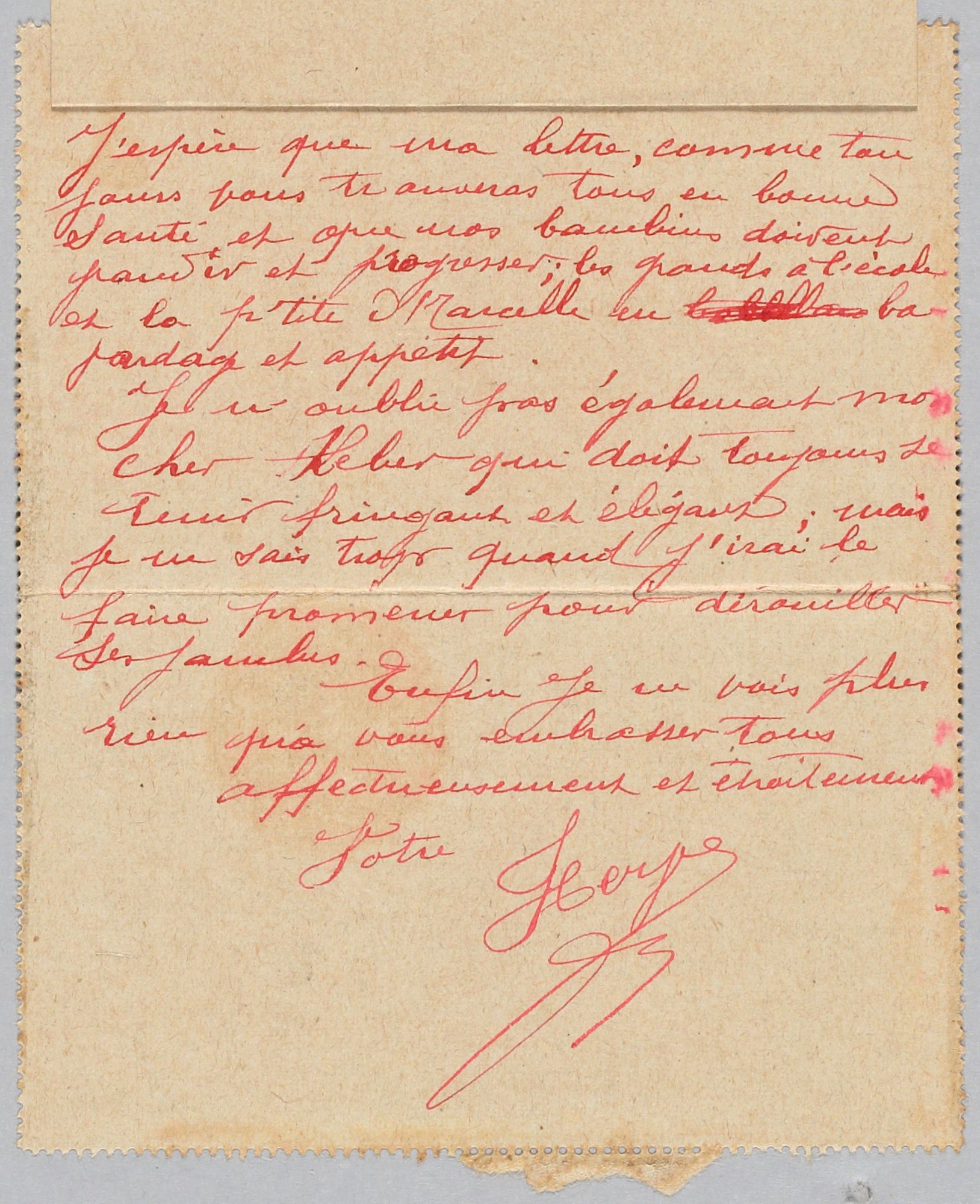 J’espère que ma lettre comme toujours nous trouvera tous en bonne santé et que nos bambins doivent grandir et progresser, les grands à l’école et la p’tite Marcelle en bavardage et appétit.