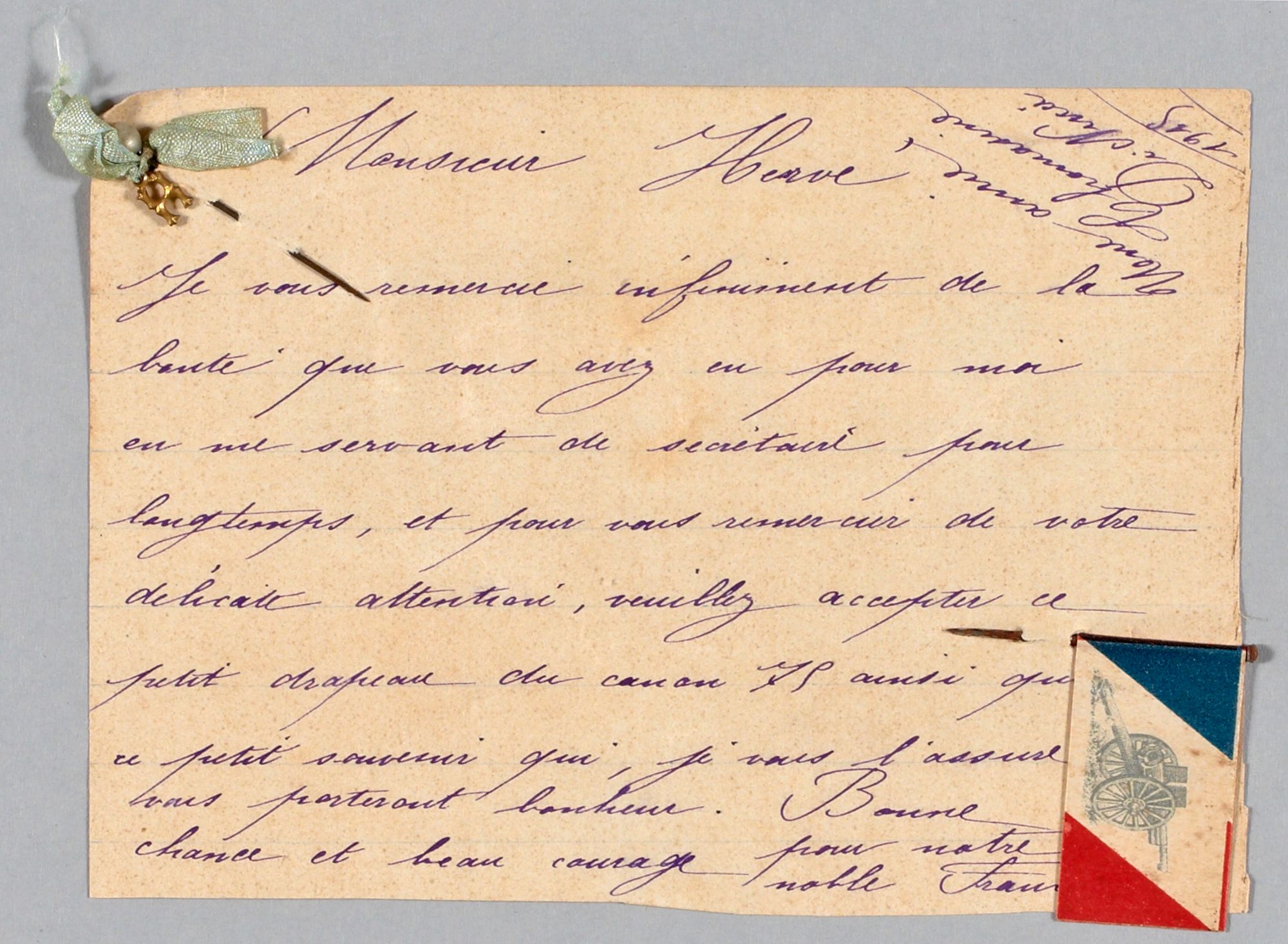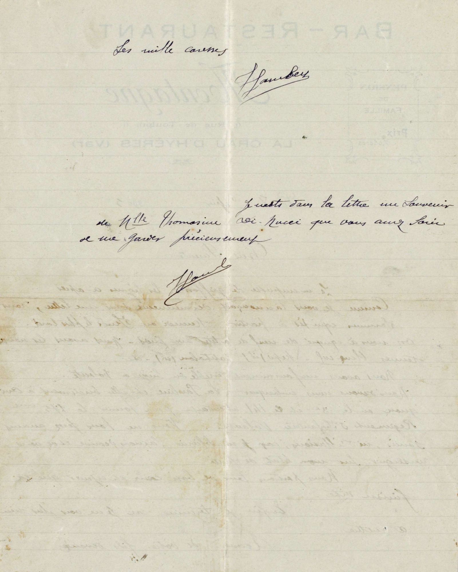 Je mets dans la lettre un souvenir de mademoiselle Thomasine di Nucci, que vous aurez soin de me garder précieusement.