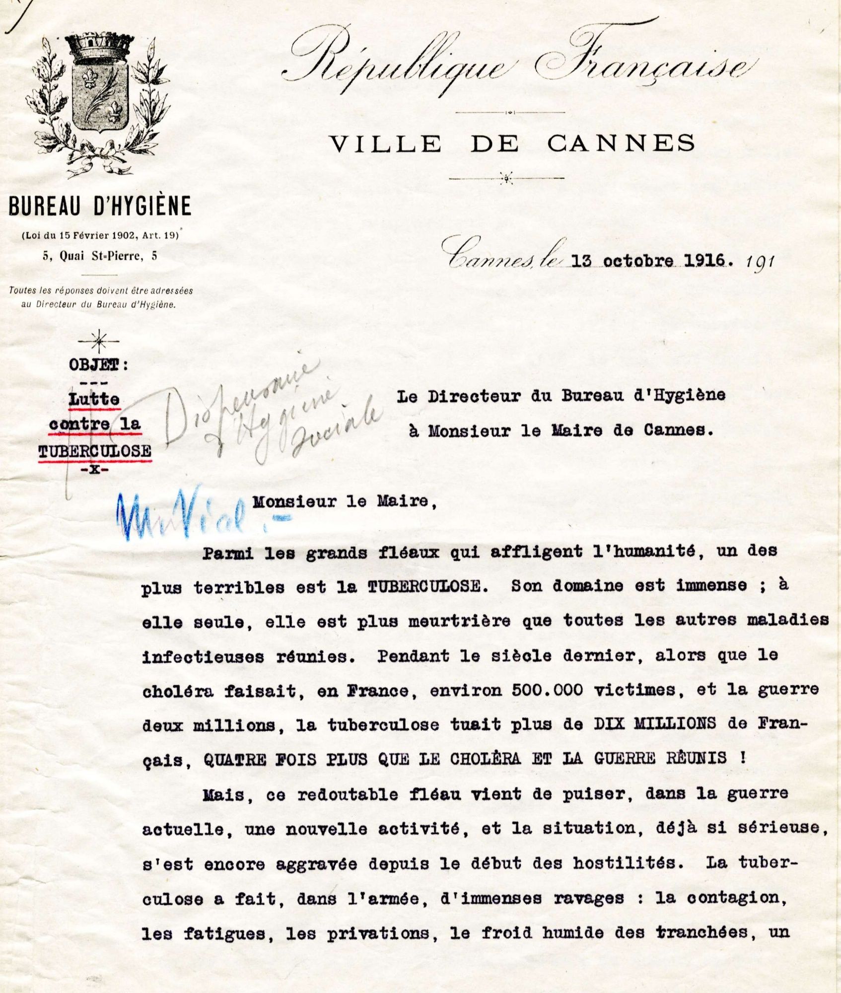 Si les épidémies contribuent aux décès des hommes du front, de manière conséquente, vu l’insalubrité de leurs conditions de vie, la population civile n’est pas épargnée, et des mesures de prévention s'imposent.