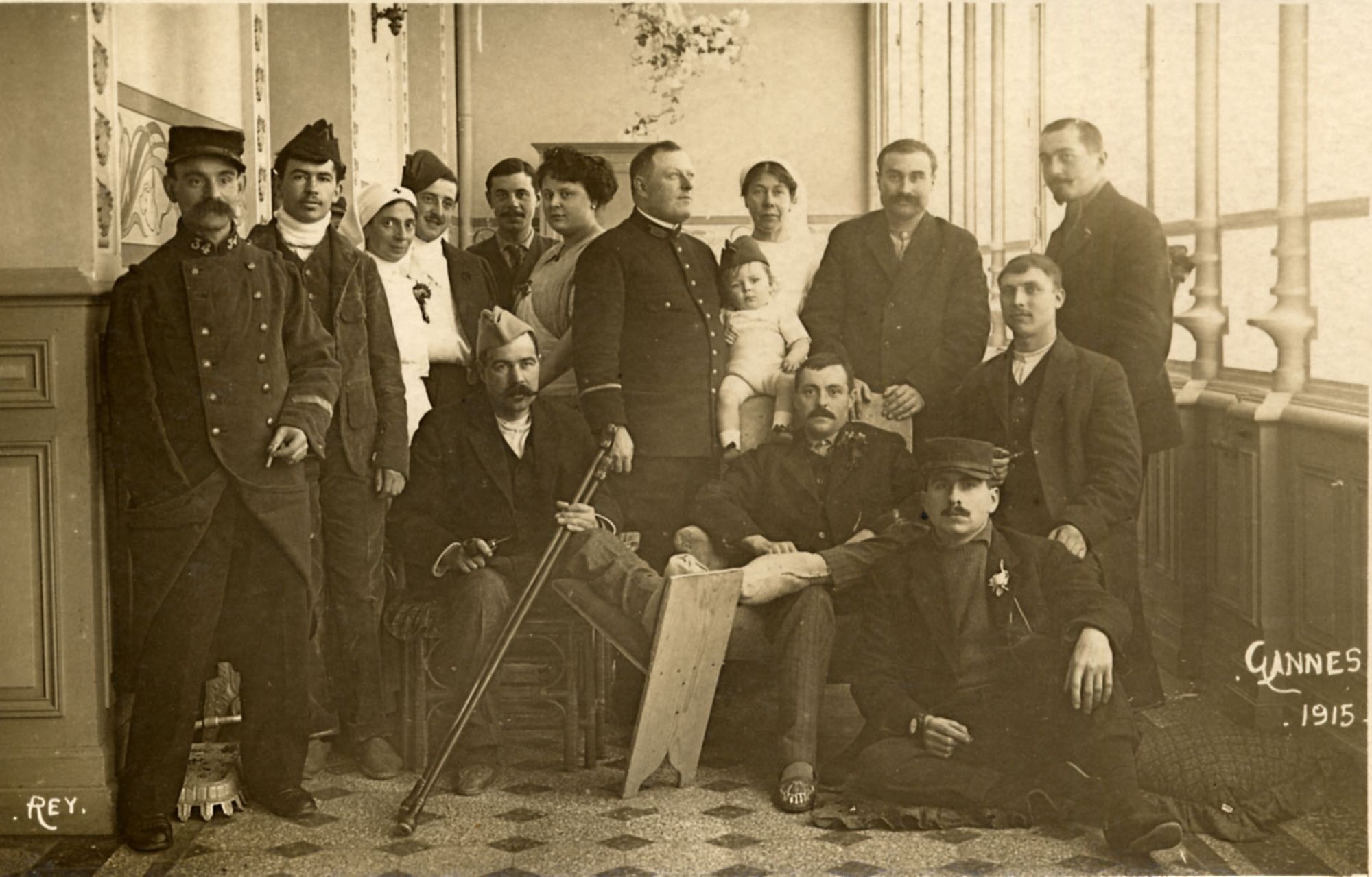Les blessés sont partout présents à Cannes qui ouvrira 2 000 lits, ils occupent les salons des casinos et des hôtels, ils prennent l'air dans les jardins de villas réquisitionnées. En 1917, 3 180 blessés séjournent dans la commune.