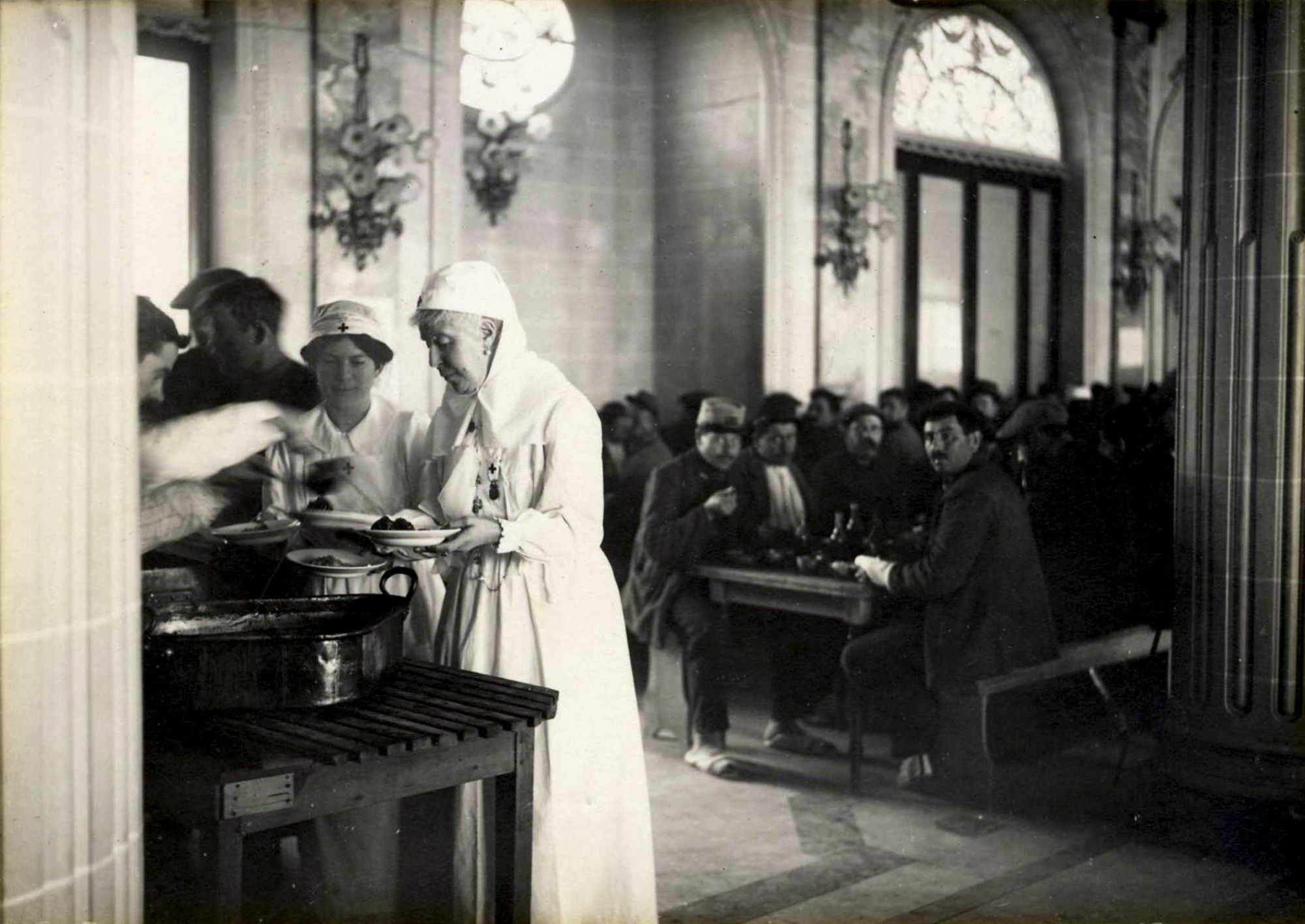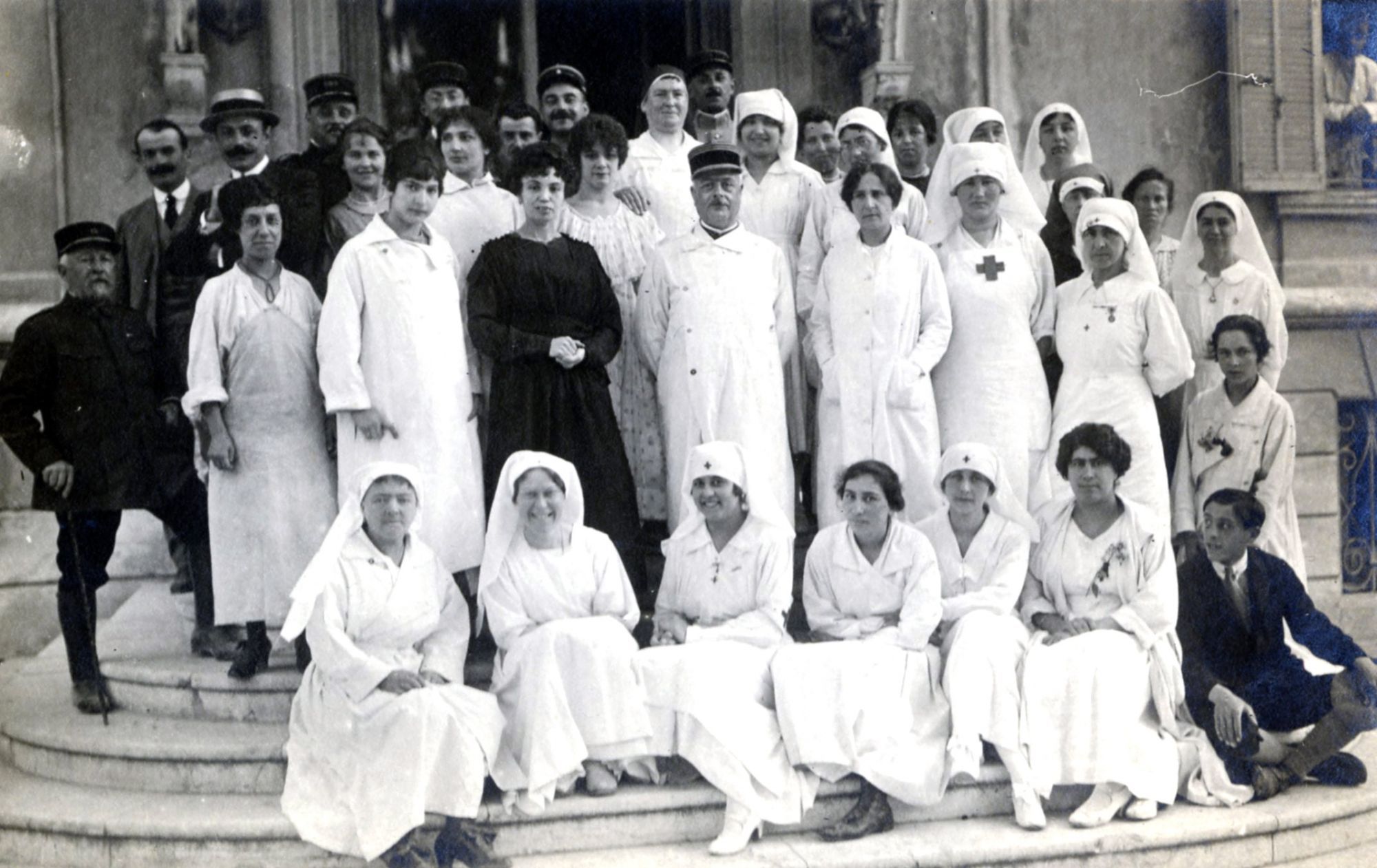 Les femmes de la haute société ou de la colonie hivernante mettront un point d'honneur à participer aux soins à donner aux combattants. Elles revêtent l'uniforme d'infirmière, nourrissent les soldats et les soignent. Parmi elles : la princesse Josépha de Bourbon-Sicile, la baronne Baude, la duchesse de Vendôme, la princesse Gagarine-Stourdza, Mesdames Léopold Jammes (femme du consul de Russie) et Denis Puech.