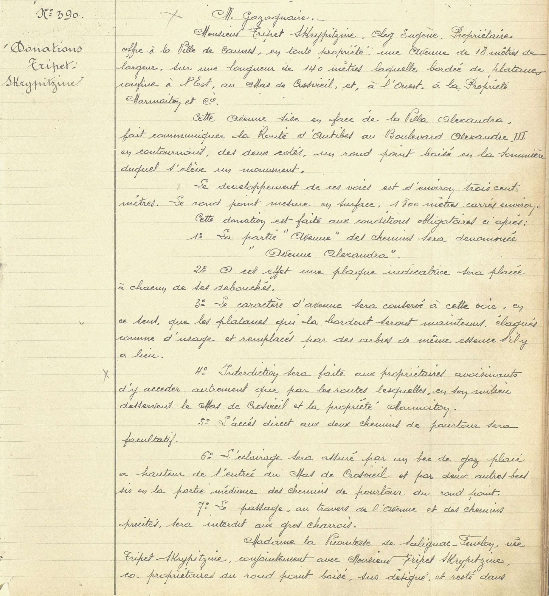 Créateur d'un quartier, le couple Tripet-Skrypitzine est séduit par la douceur du climat, par la végétation ; il s'installe sur des terrains encore vierges de constructions au milieu du XIXe siècle, en mai 1849 : la pointe Croisette n'est pas encore convoitée.