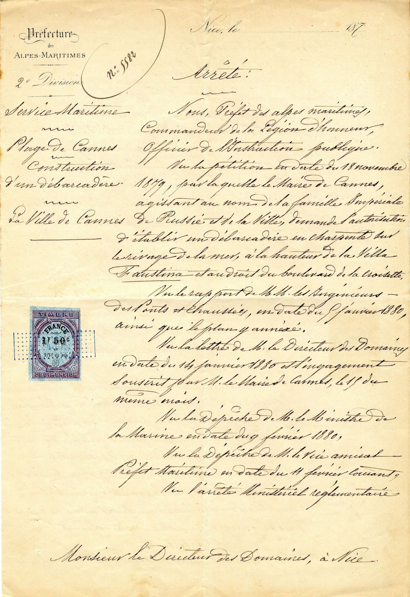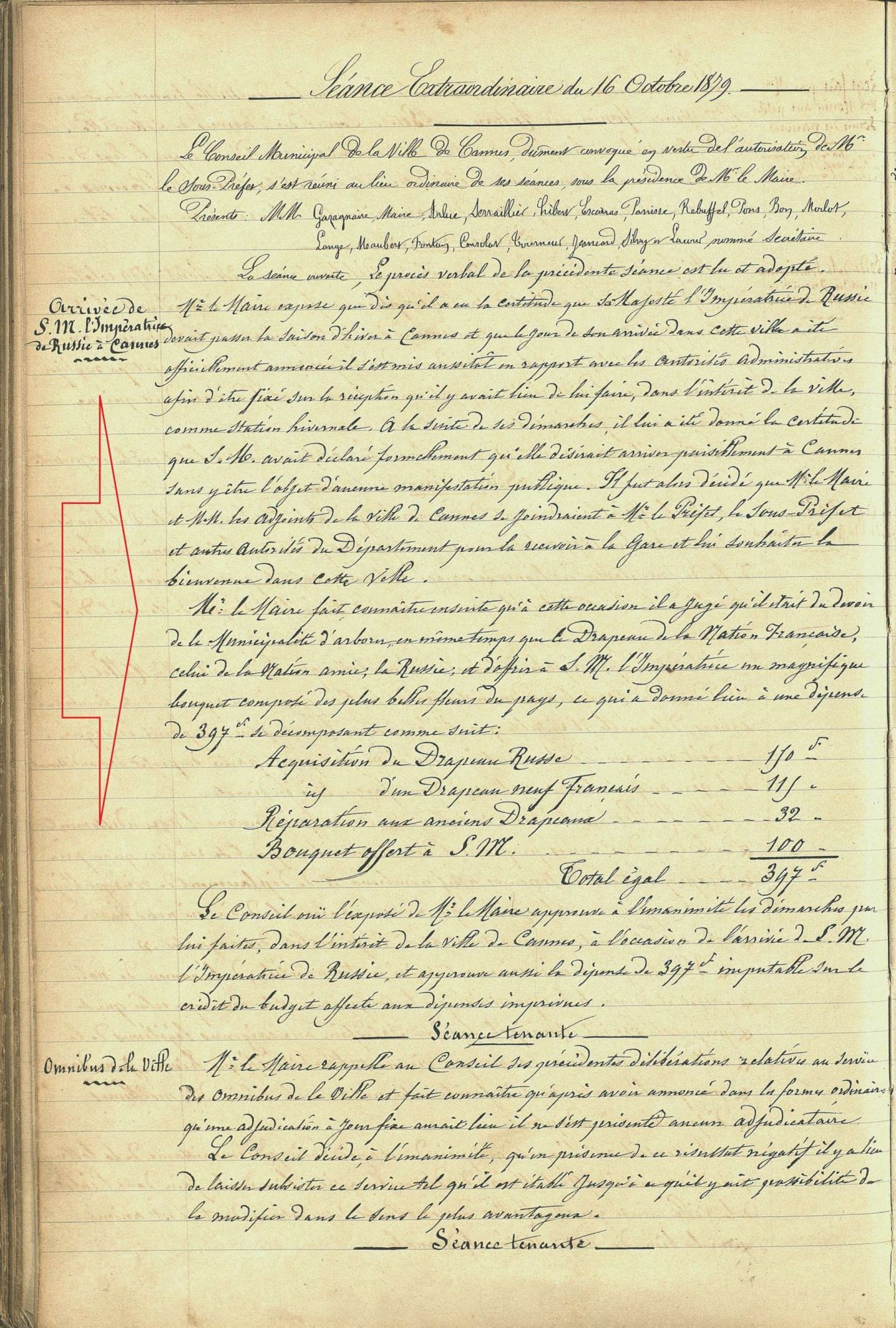 L’impératrice Maria-Alexandrovna, née princesse allemande Marie de Hesse-Darmstadt, séjourna en 1879 à Cannes sur les conseils de ses médecins, pendant le long hiver russe. Elle vint avec ses enfants (huit descendants), et elle mena grand train ; pour exemple, vingt-huit voitures furent regroupées à la villa des Dunes. Elle fut reçue avec tous les honneurs dus à son rang, son cortège fut salué à son arrivée par des coups de canon, et l'ensemble de sa suite protégé par de nombreux policiers. On craignait les anarchistes dissimulés dans la foule.