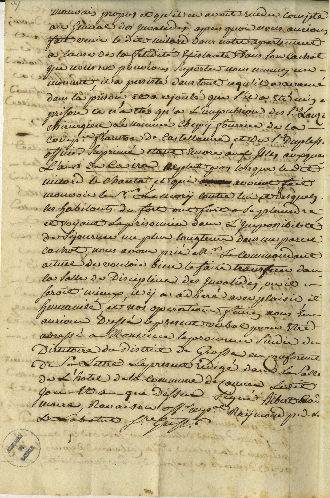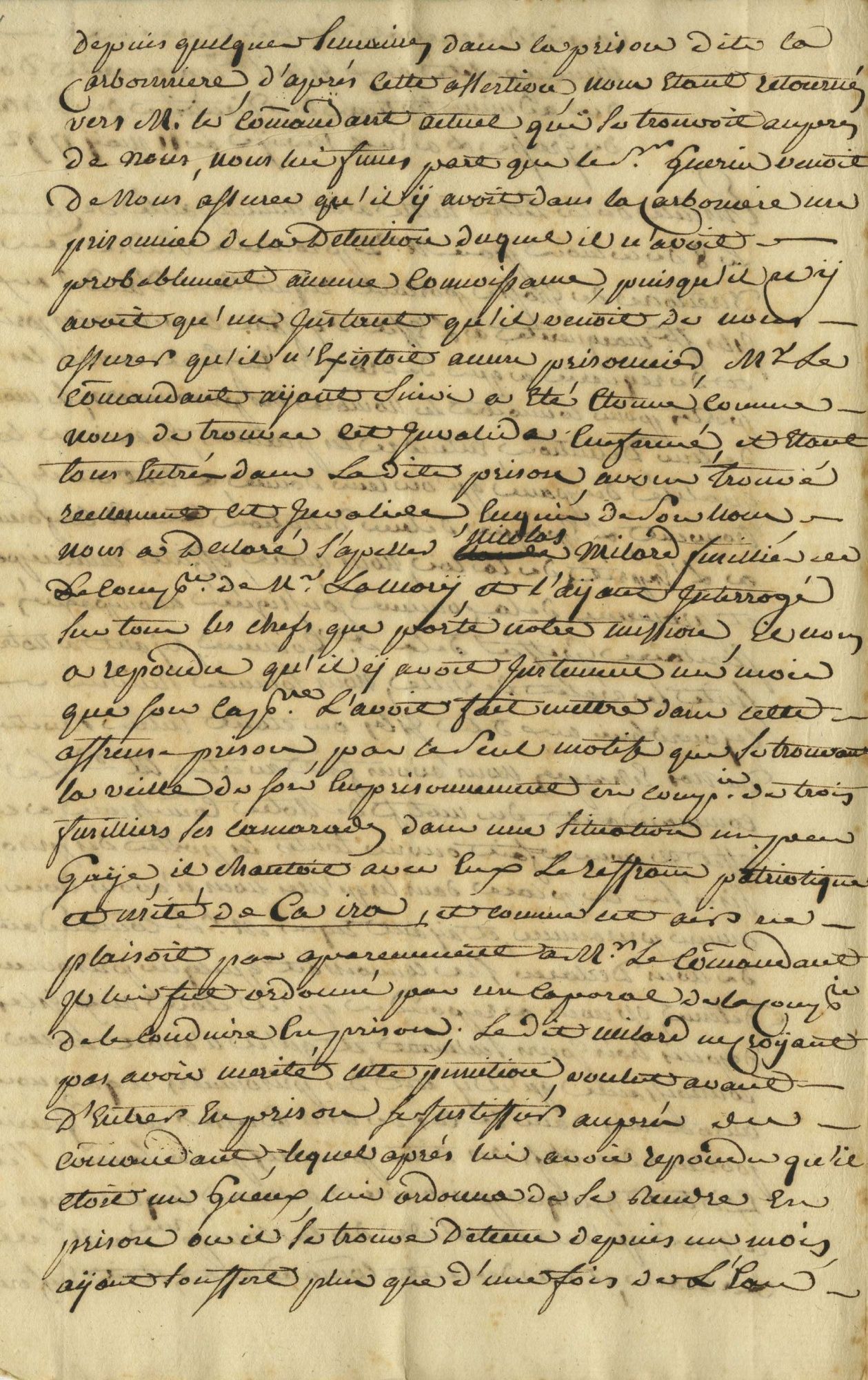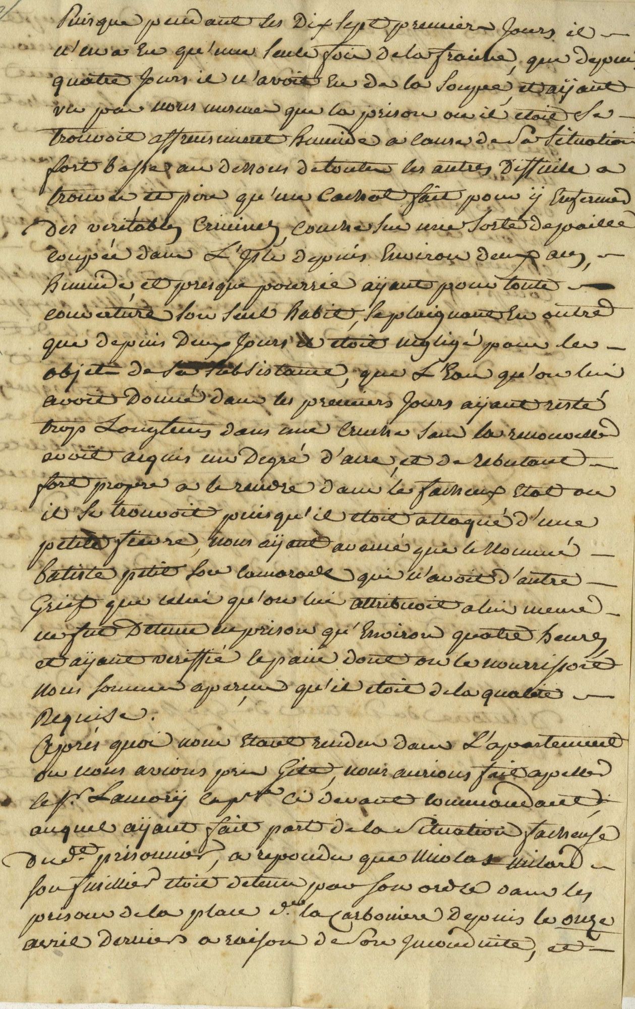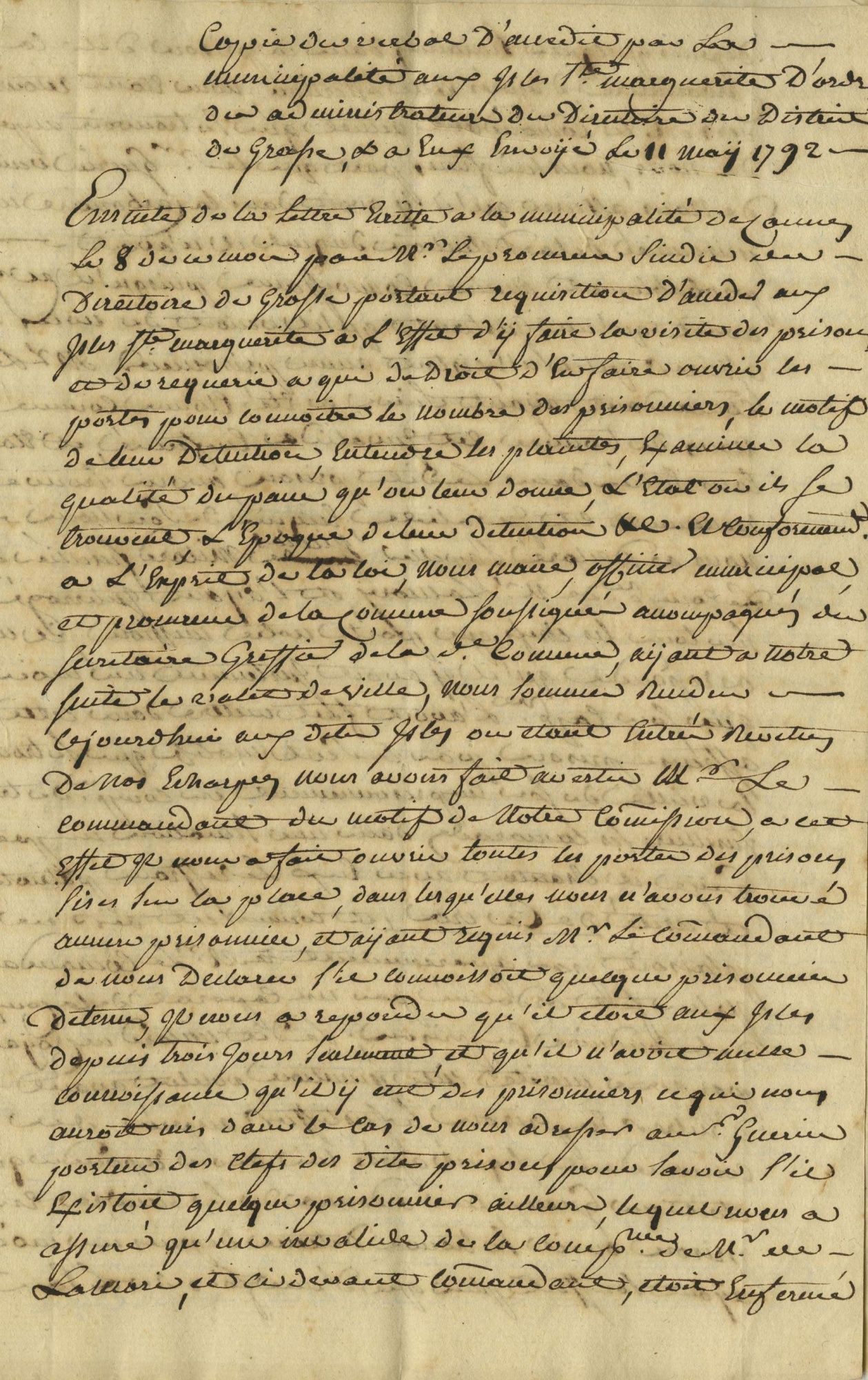 1792, la fin du despotisme royal, les suites de la Révolution Ouverture des portes du fort, contrôle des cachots, en mai (may) 1792. On y trouve un invalide, un fusilier, enfermé pour avoir chanté le "ça ira"...