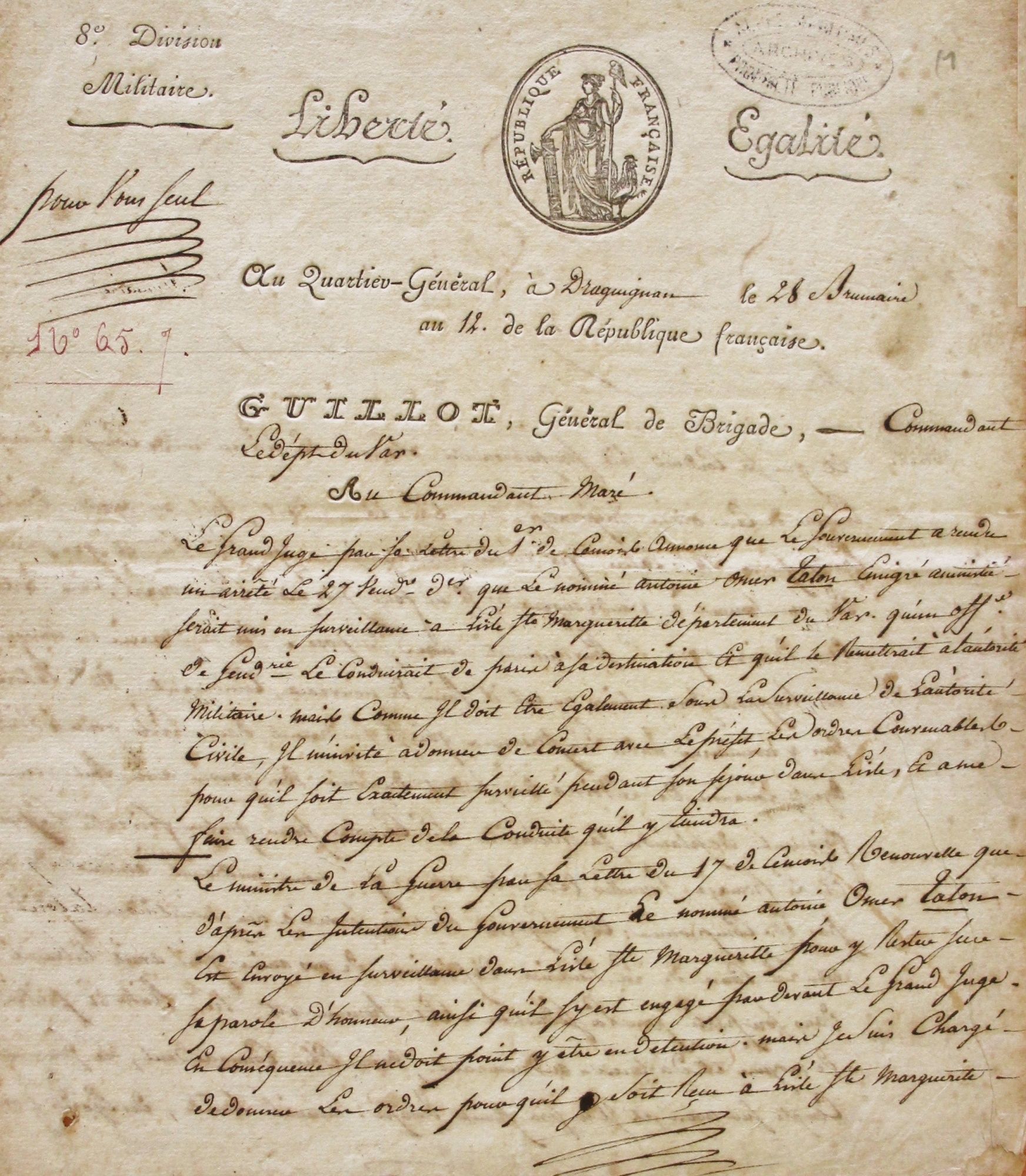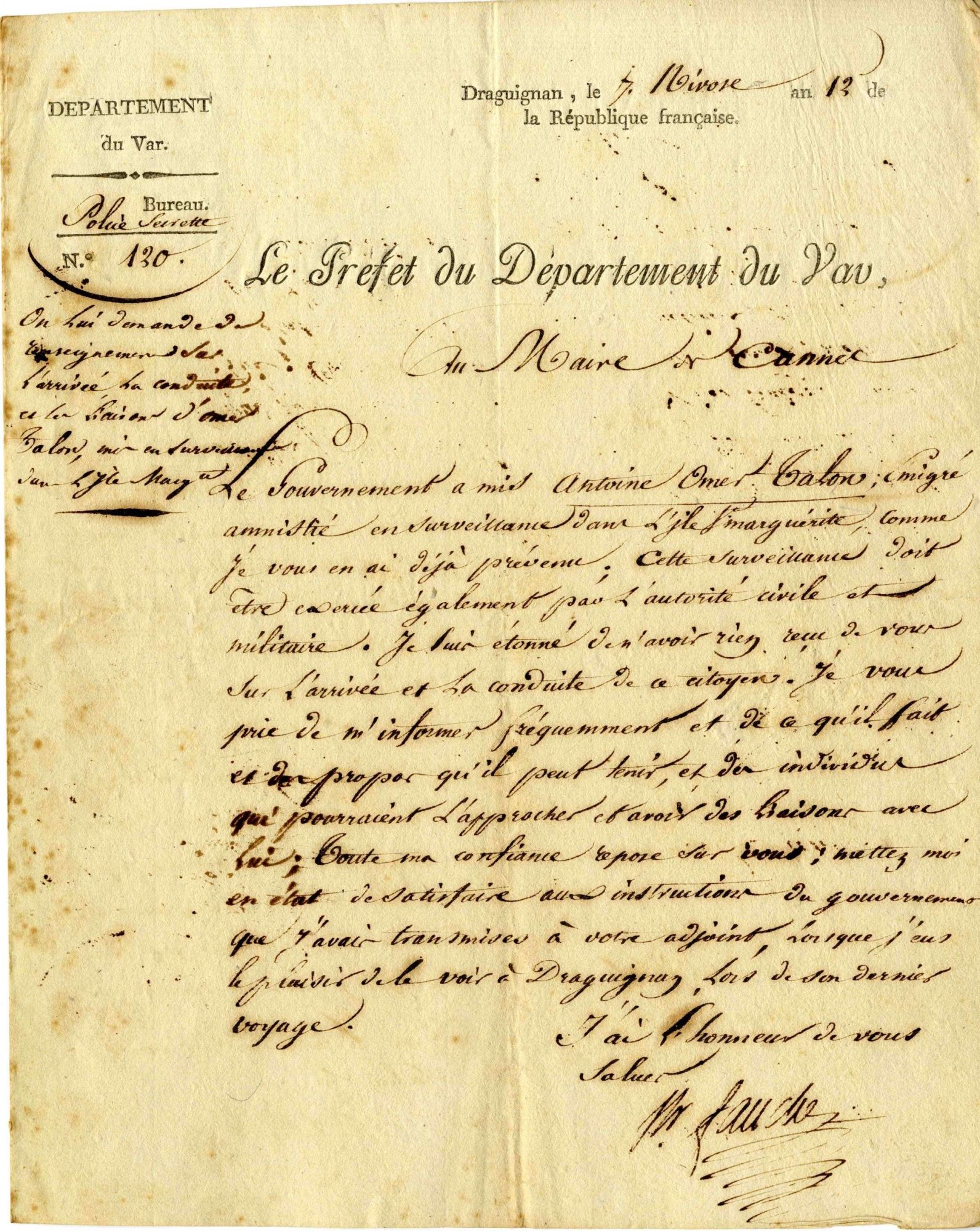 1803-1807, la surveillance d'Antoine Omer Talon