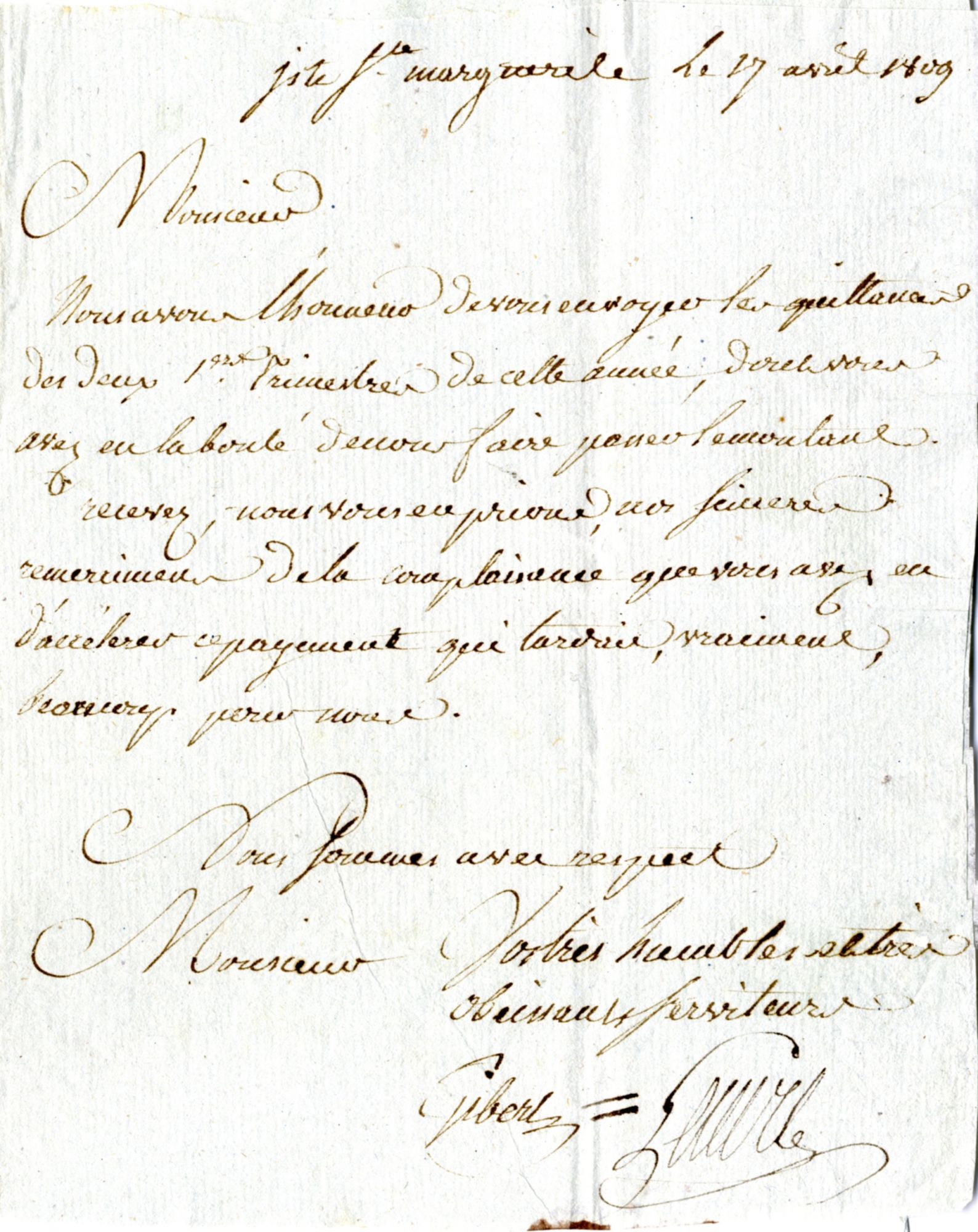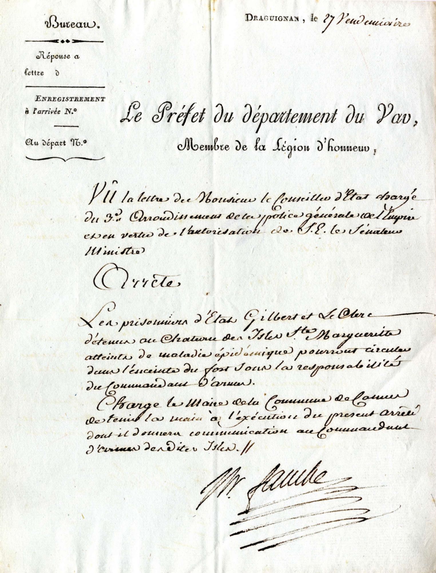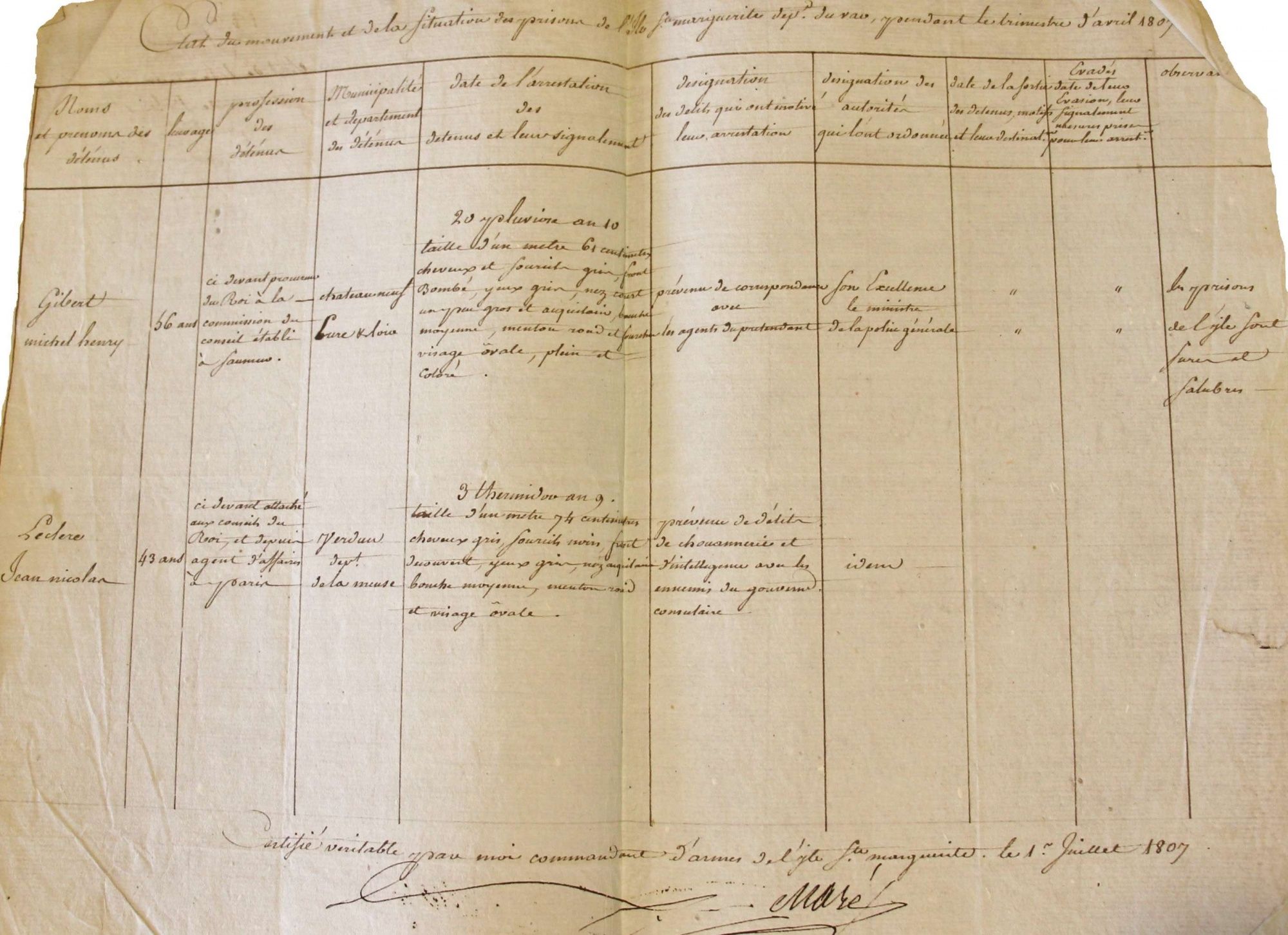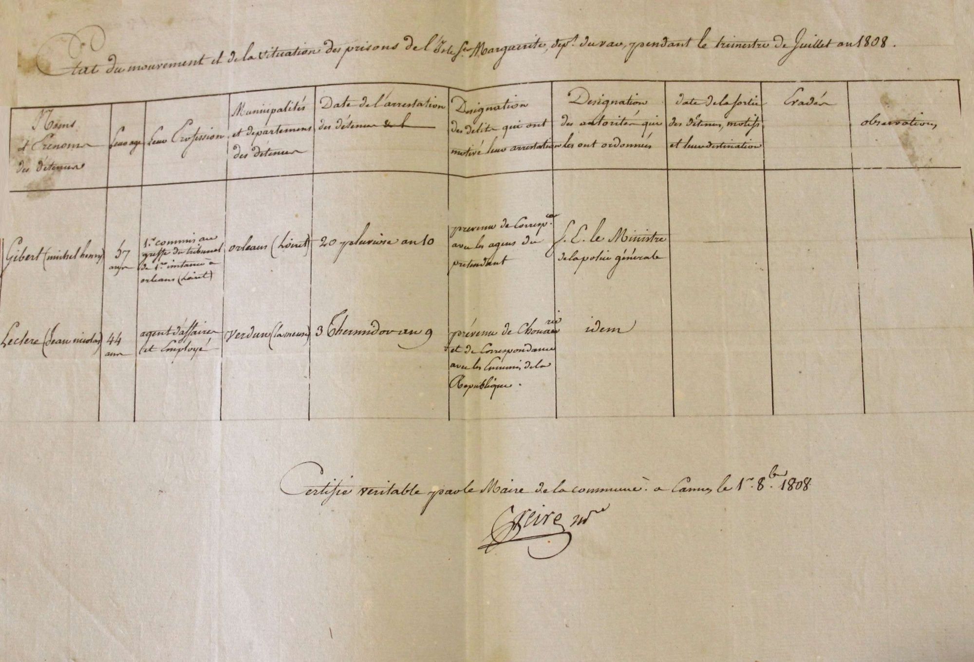 Nous avons la preuve que les détenus Gibert (orthographié parfois Gilbert) et Leclerc resteront prisonniers de 1804 à 1811, ce qui représente 9 à 10 ans de détention pour chacun ; il est versé une somme régulière pour leur entretien et ils signent la réception de ce secours. Un garde-malade leur est parfois affecté.