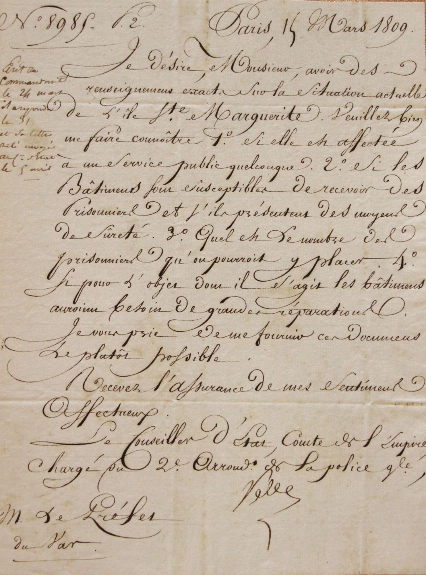 Une duchesse, la duchesse d'Escars, revenue d'émigration, fut envoyée sur l'île Sainte Marguerite pour des réflexions désabusées sur le nouveau régime et paya ainsi cher son bavardage.