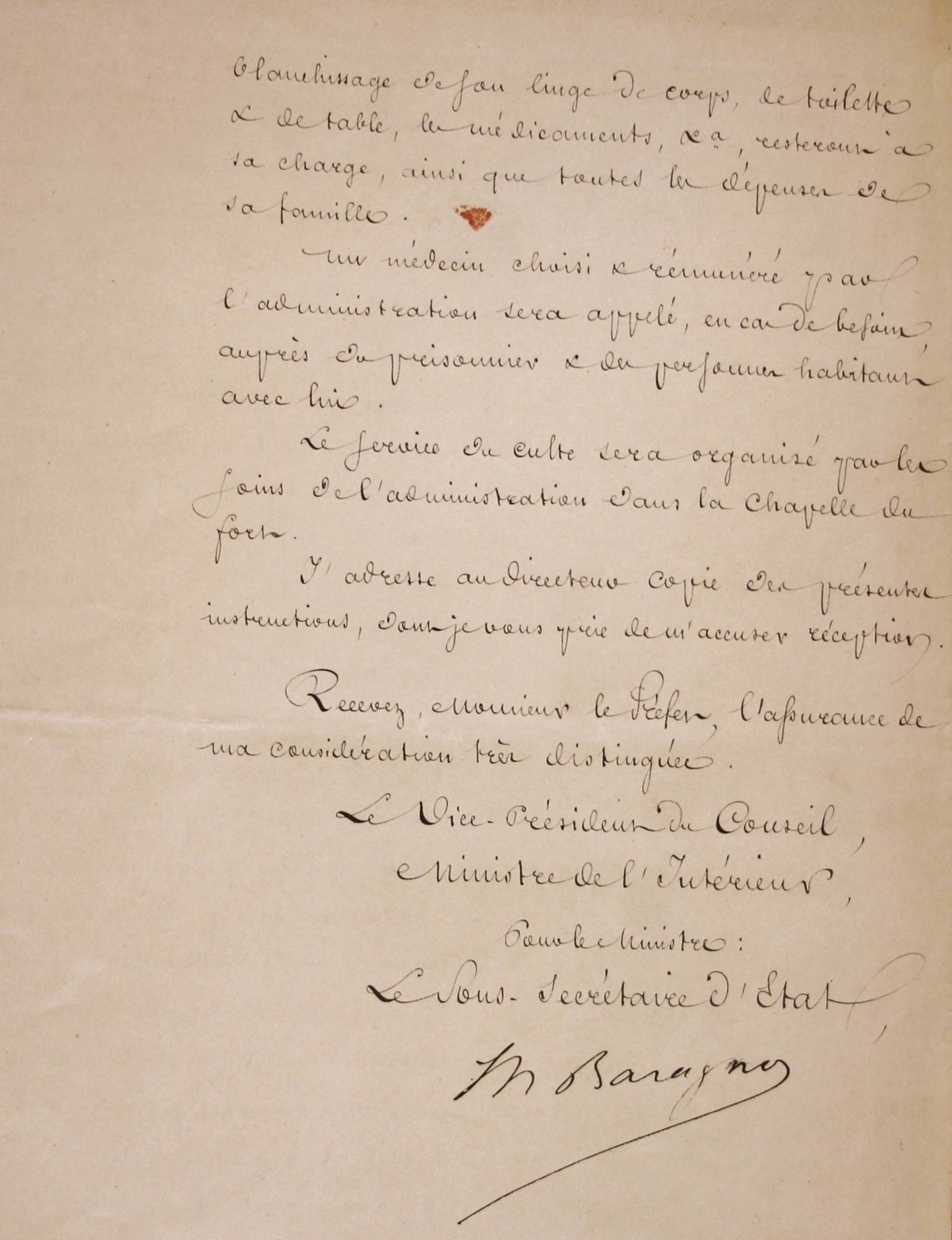 En 1896, le Président de la République Mac-Mahon signe un décret supprimant les prisons militaires : c'est la fin des internements politiques au fort de l'île.