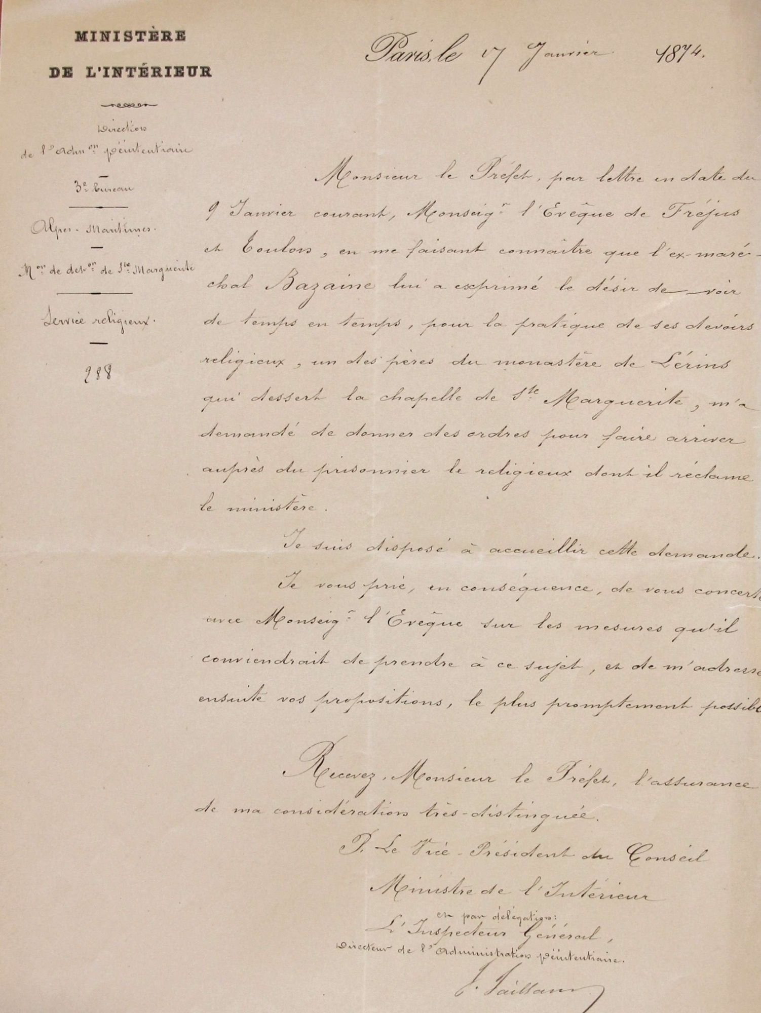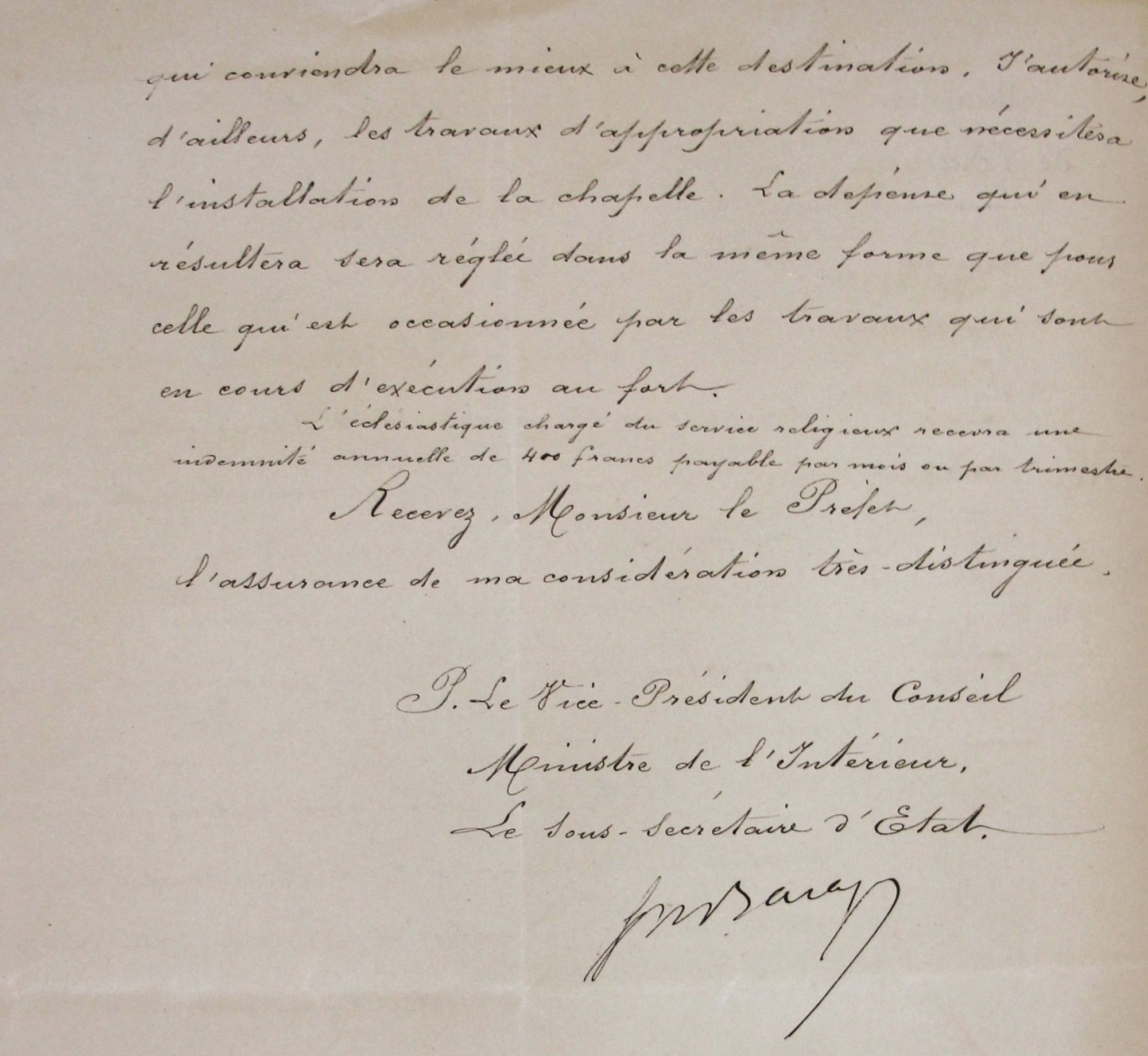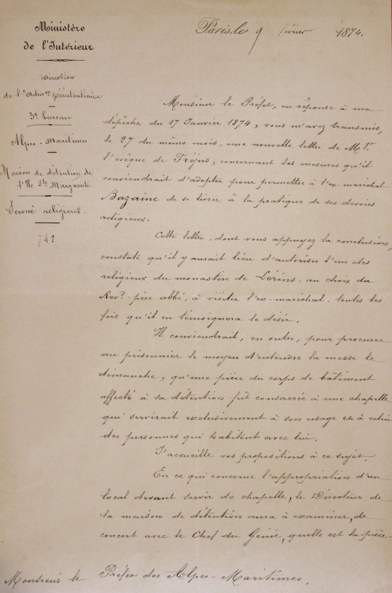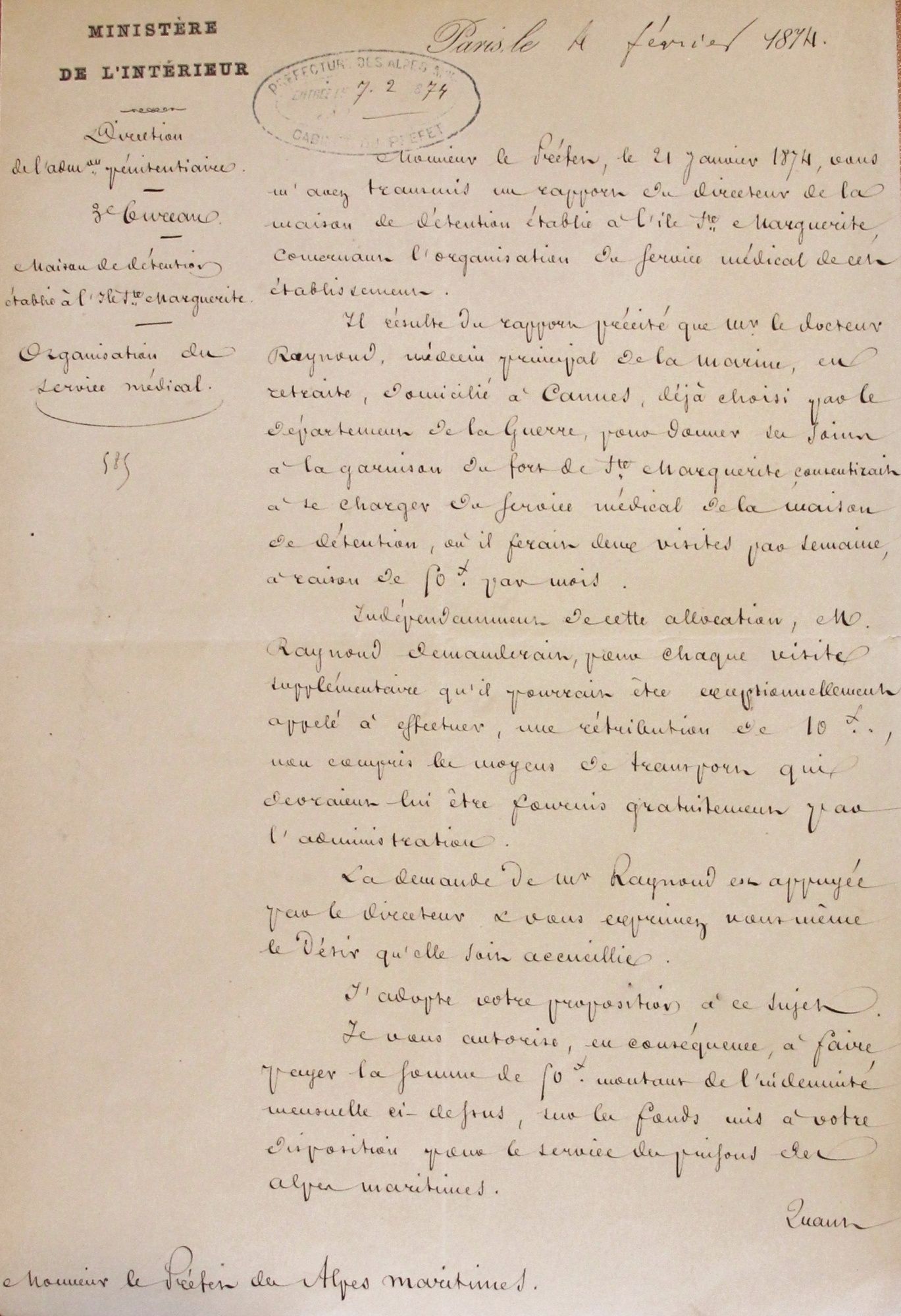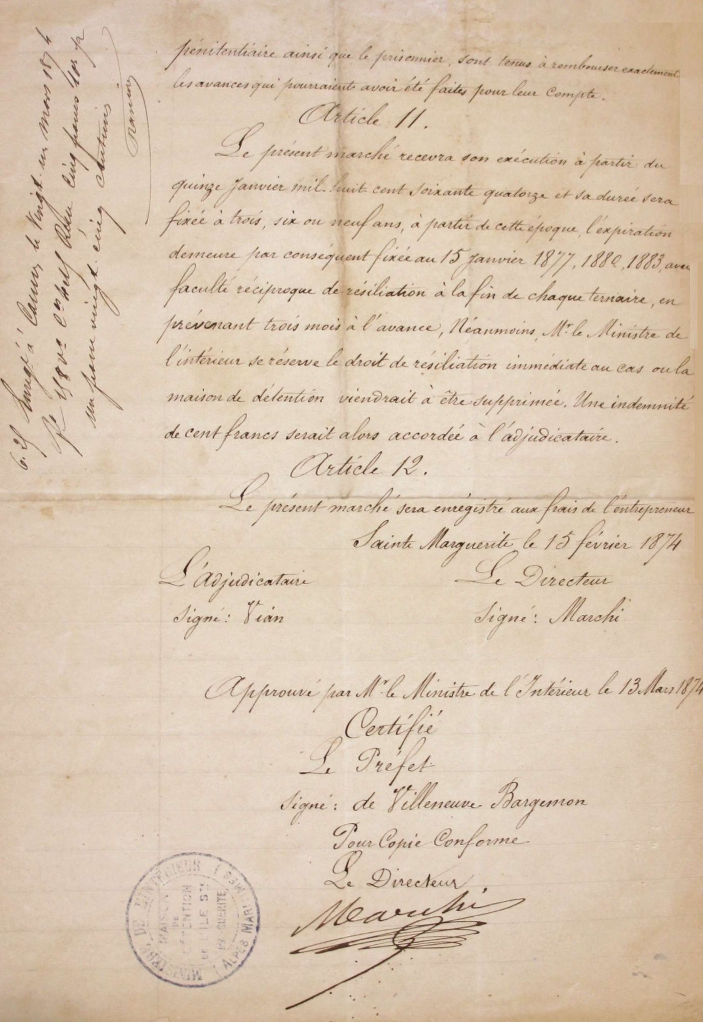1874, gestion de la maison de détention Entretien, service médical et service religieux, accès à la maison de détention sont des questions suivies de près par l'administration pénitentiaire.
