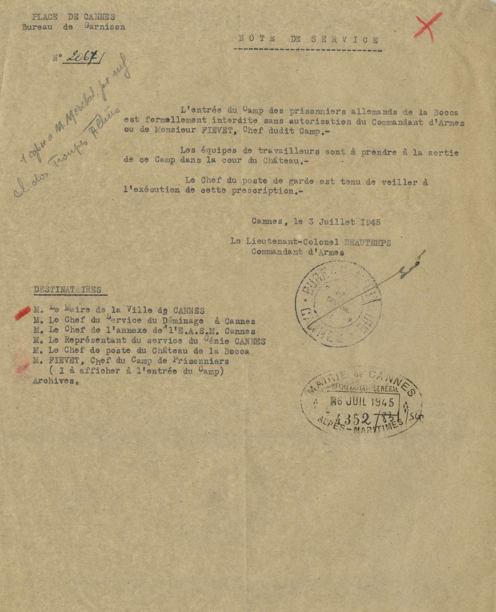 Prisonniers de guerre, 1945-1946 L'ancien château de la Bocca servit pour la détention des prisonniers de guerre, après la Libération.