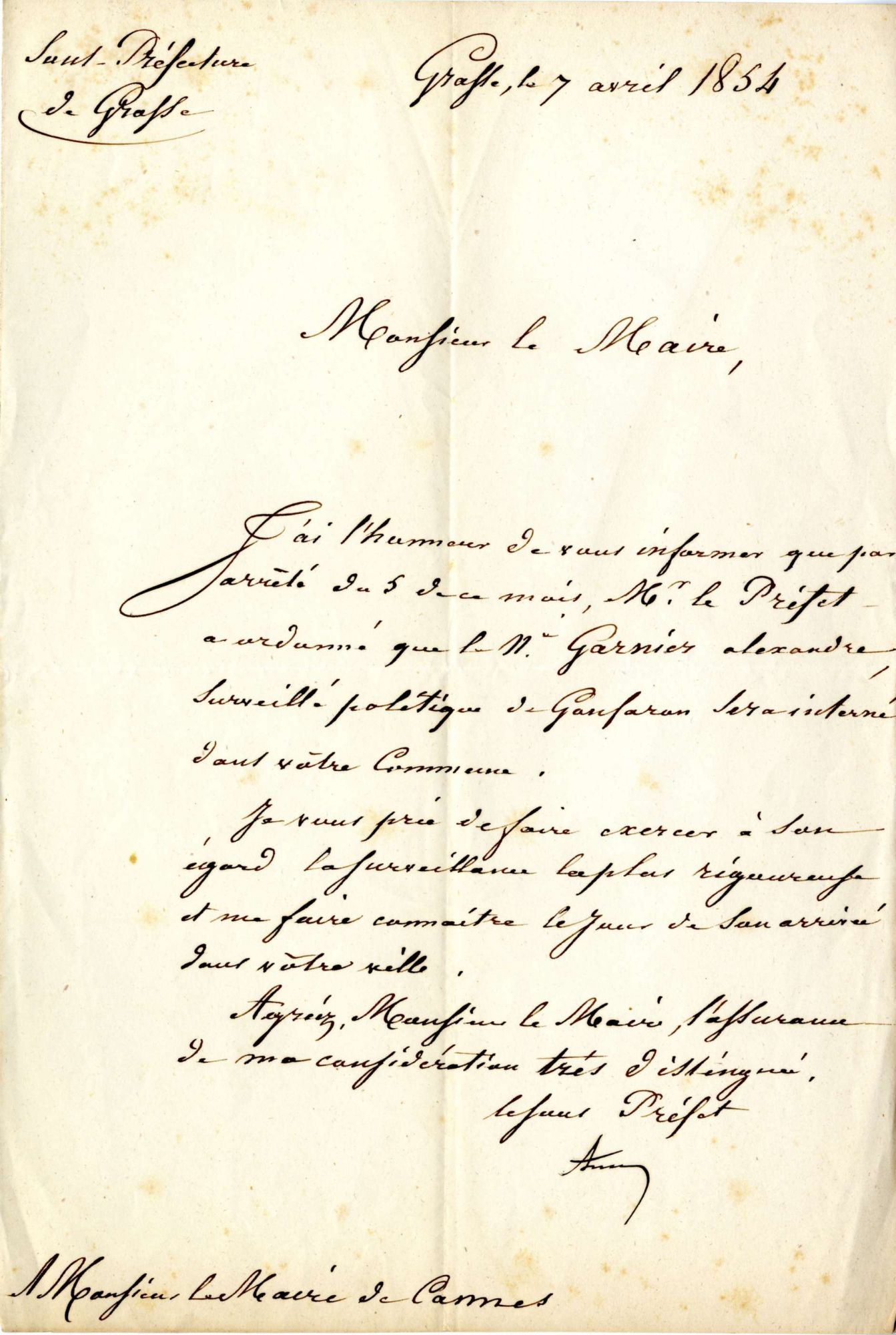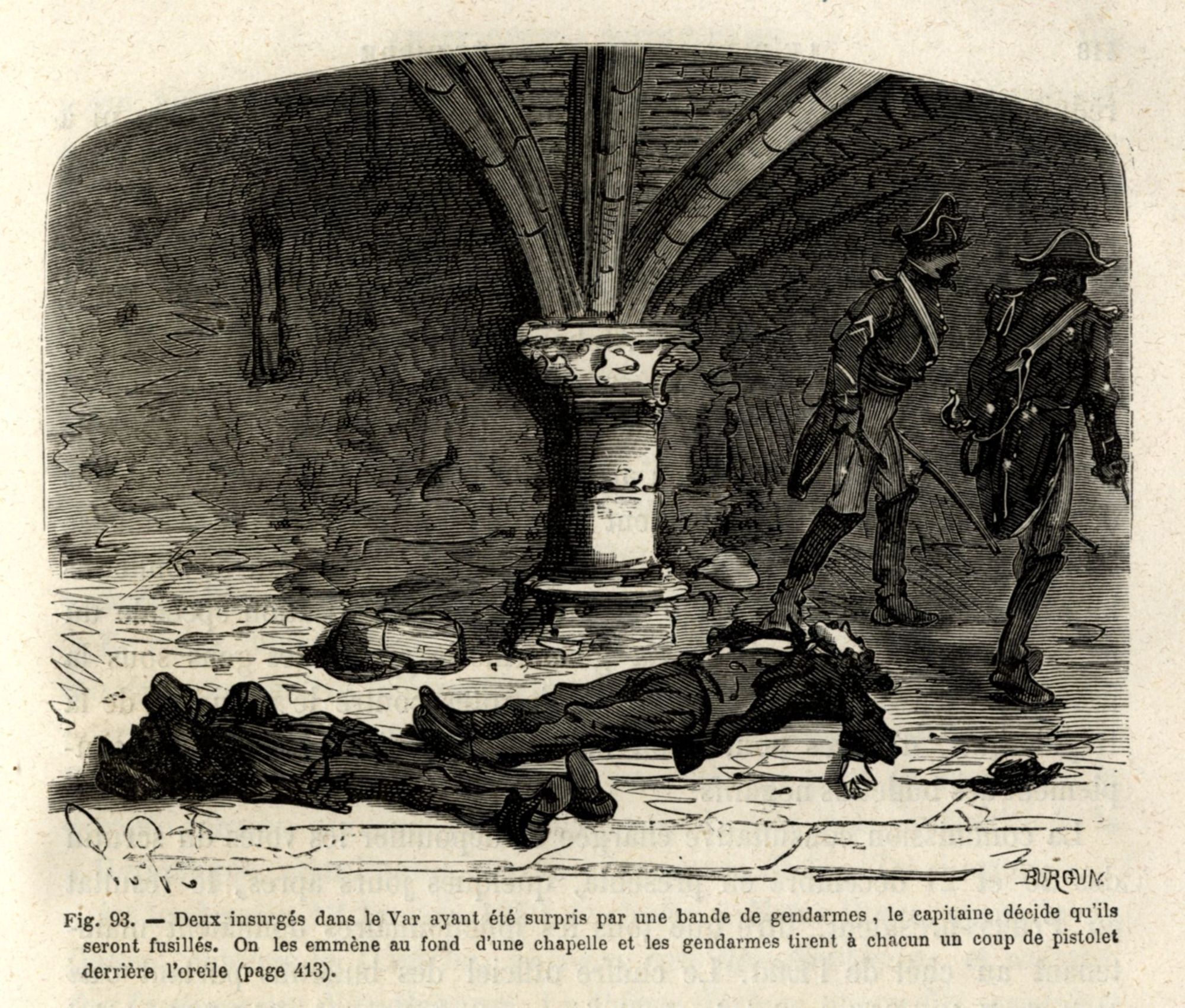 Le Second Empire fait suite au coup d'Etat bien préparé de Louis-Napoléon en décembre 1851, très mal vécu par les communes varoises, où la résistance républicaine fut forte, et réprimée violemment. Nous ne savons pas ce que cet habitant de Gonfaron a fait exactement ; en tout cas, la vigilance politique ne fait aucun doute... Le coup d’Etat du 2 décembre 1851 est un événement oublié, et ses victimes peu célébrées. La mémoire est restée vive dans les départements du sud-est où la répression fut féroce : 27 000 personnes pour l'ensemble de la France, dont 3147 prévenus pour le Var.