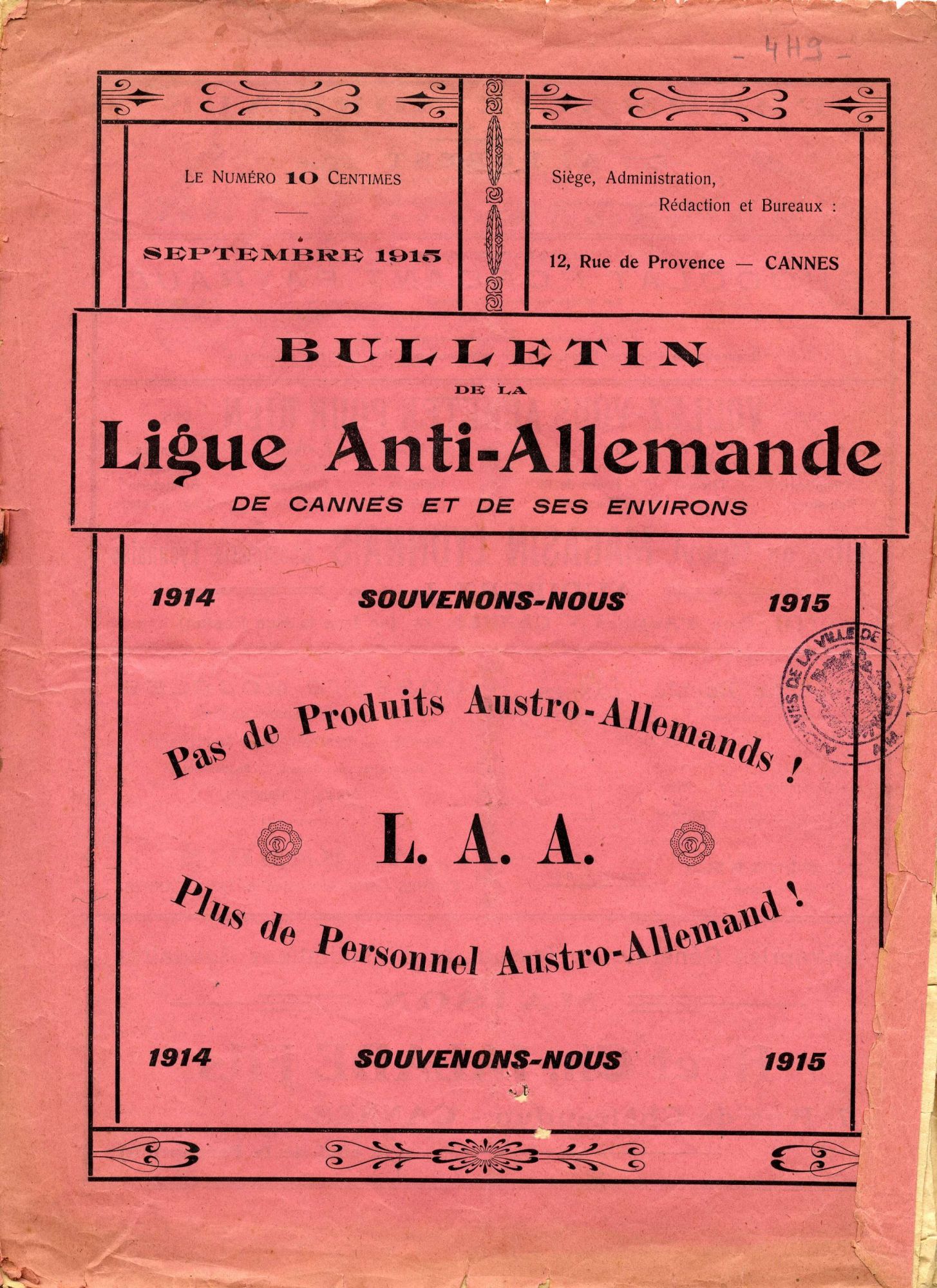 "Les internés civils austro-allemands de Cannes et de l’île Sainte-Marguerite", de Stéphane Kronenberger, Annales SSL 2015