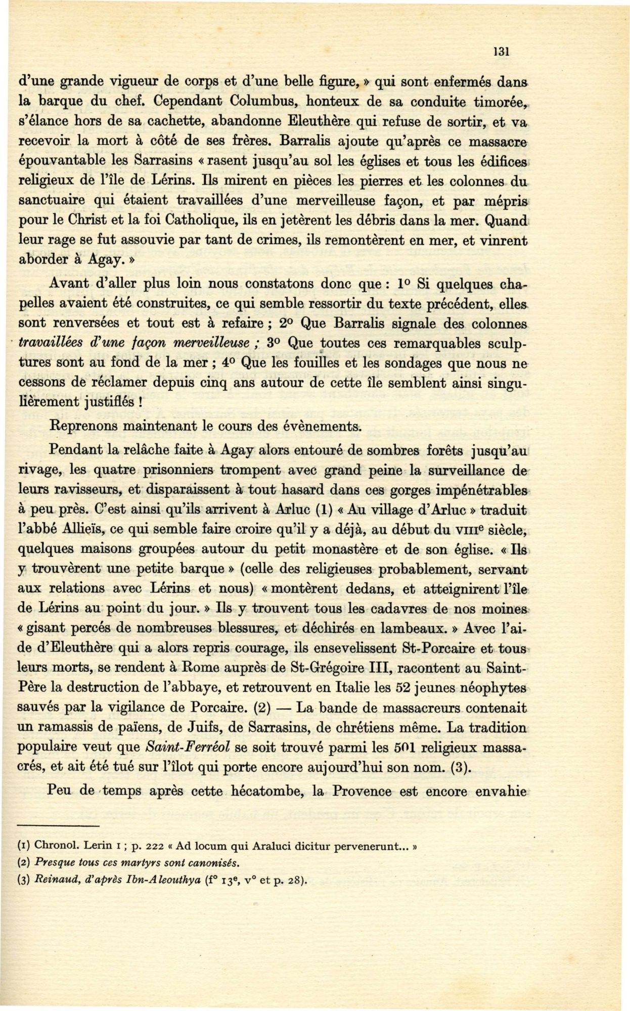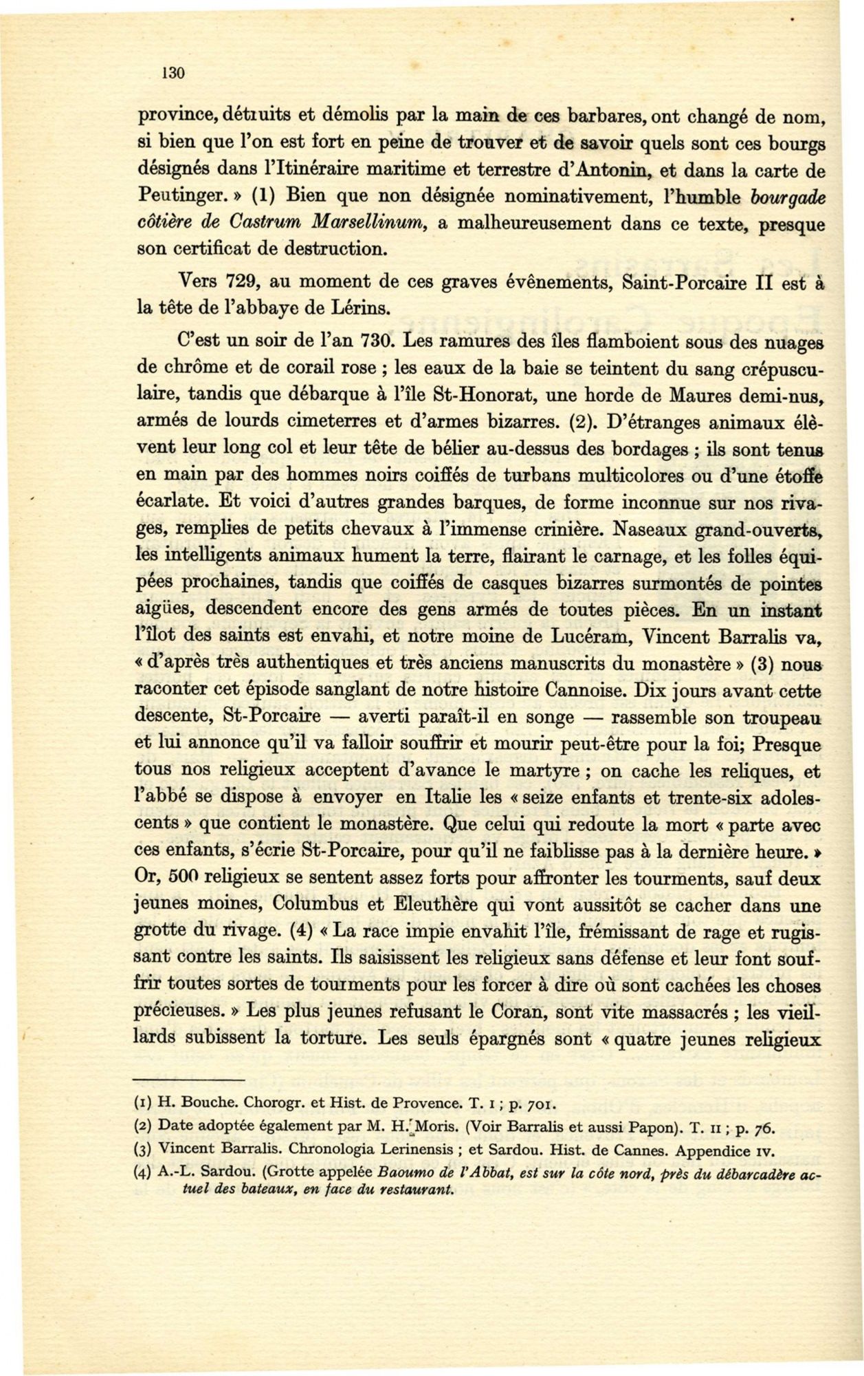Il existe sur Saint Honorat une chapelle consacrée à Saint Porcaire qui fut tué lors d’un massacre. Ce récit, partisan, a été inspiré par la terreur des incursions sarrasines.