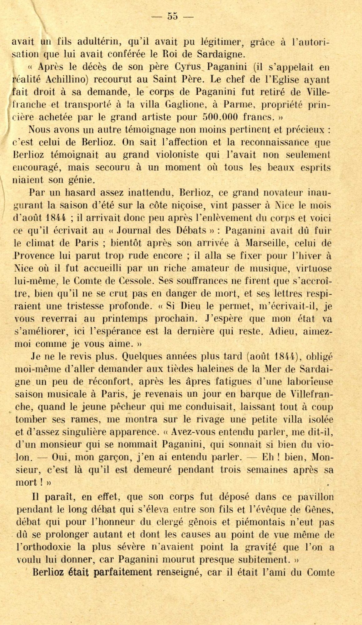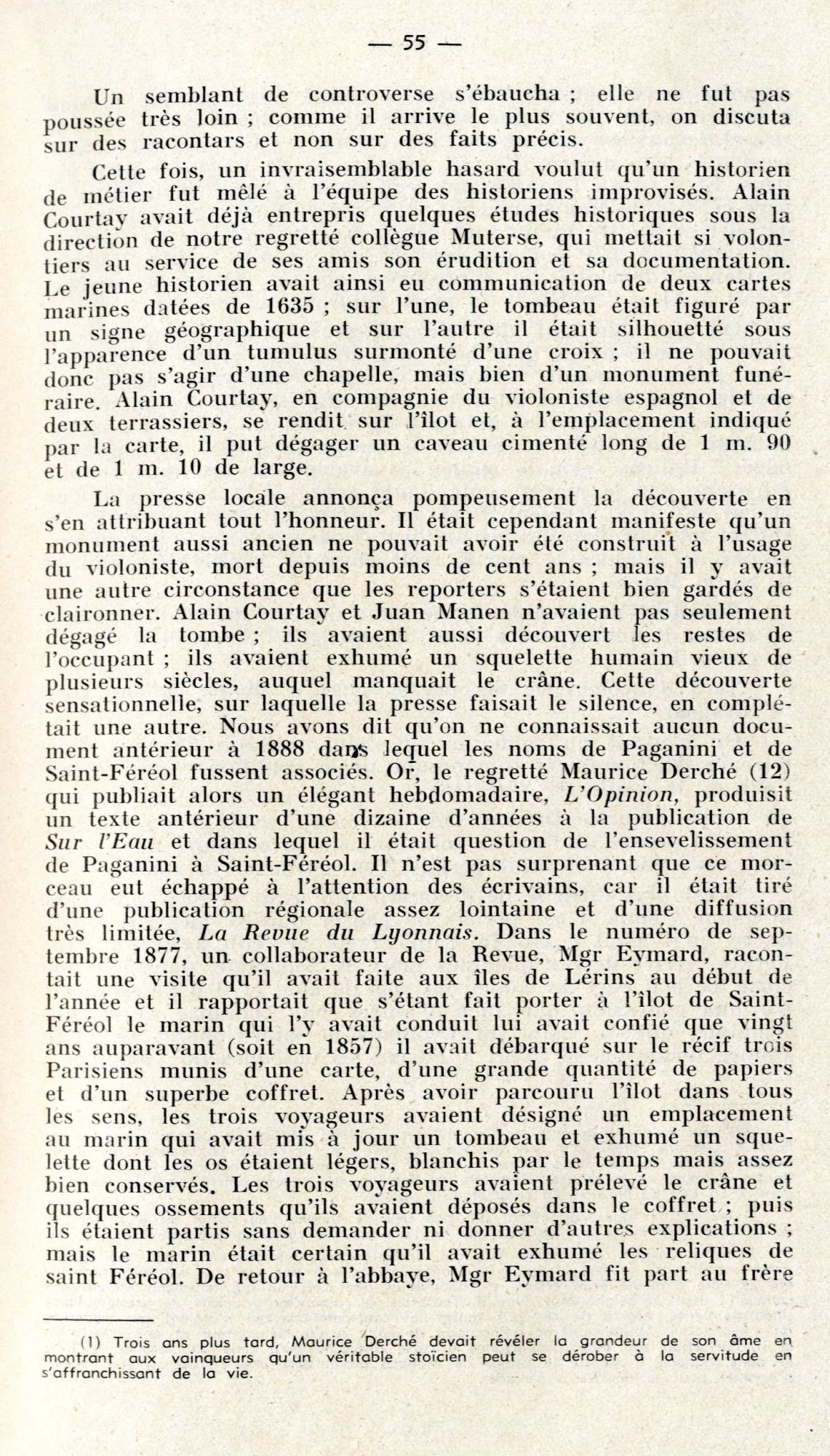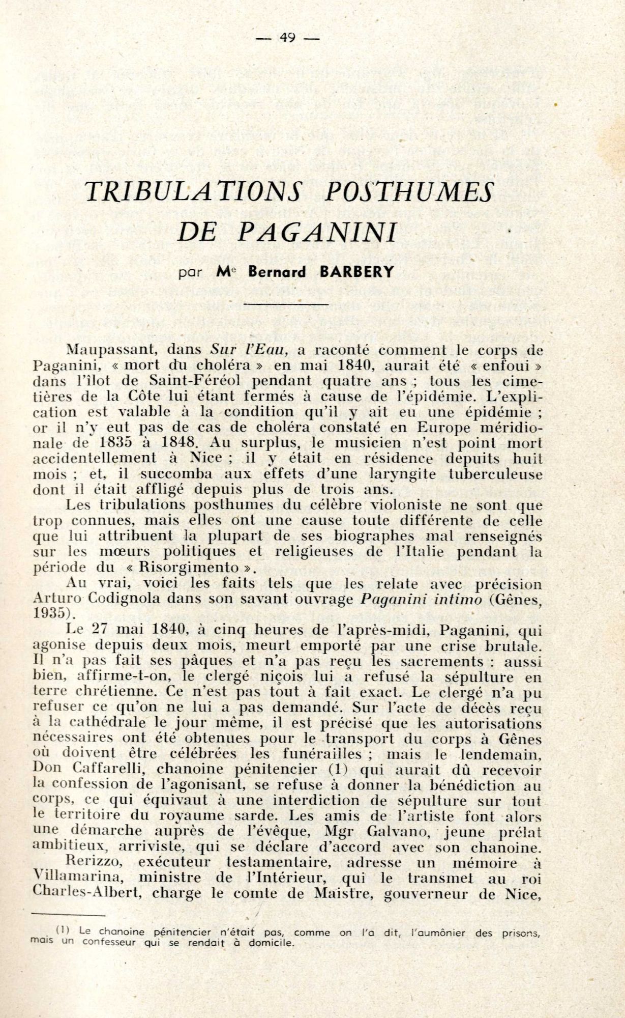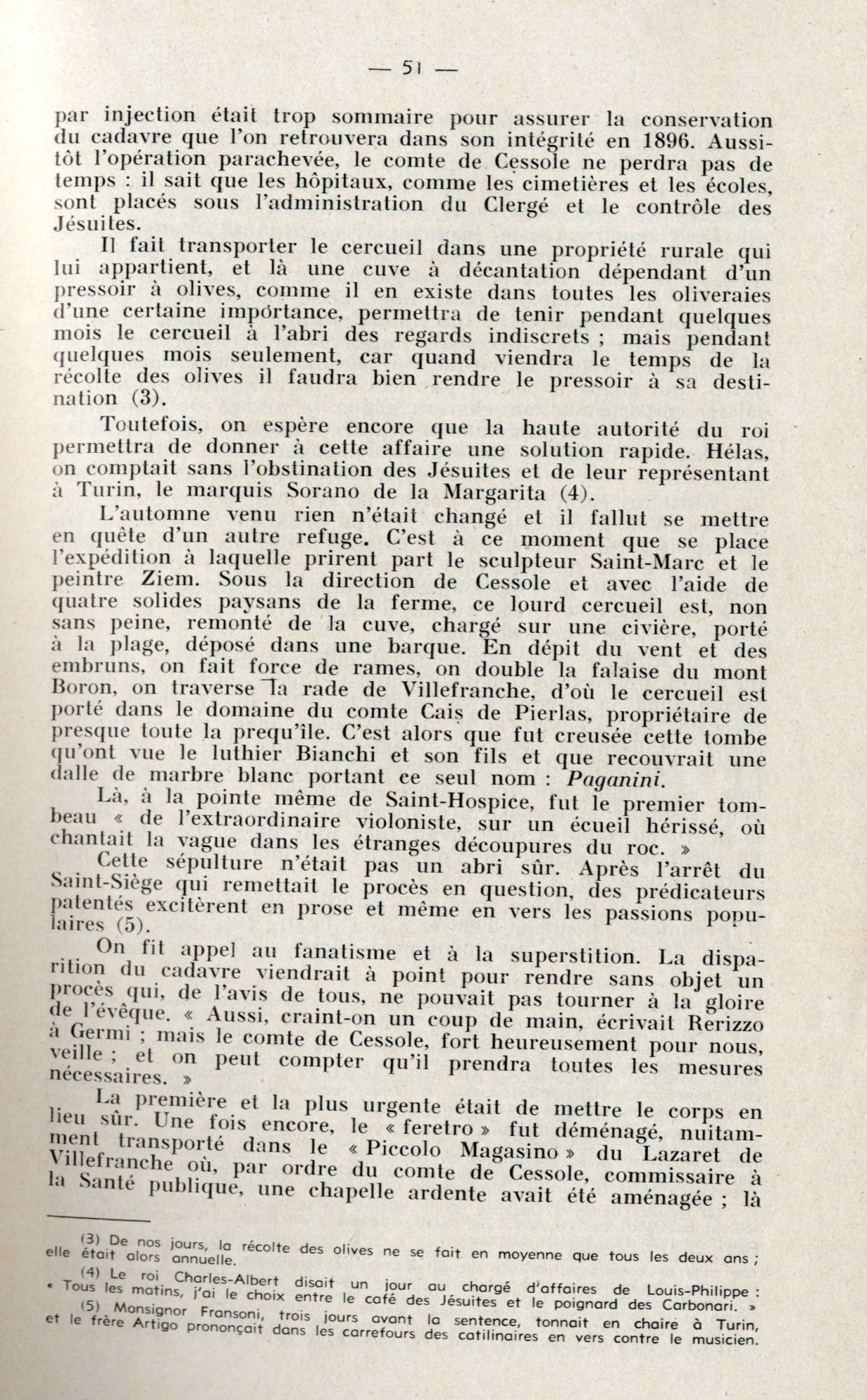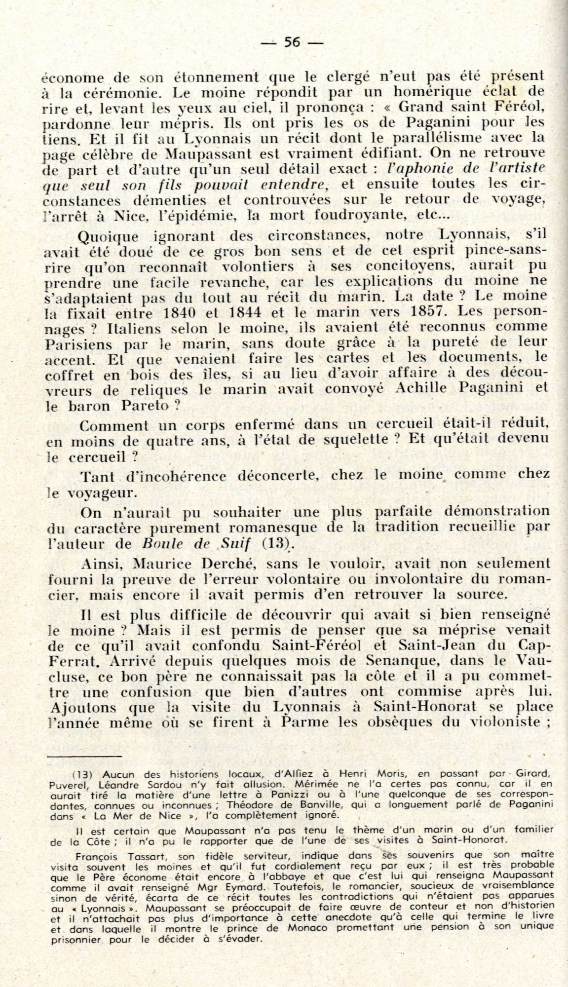 Est-ce ce fait qui a pu aider à la construction d'une légende qui concerne cette fois un célèbre musicien, né à Gênes : le corps de Paganini « mort du choléra » en mai 1840, aurait été « enfoui » dans l’îlot de Saint-Ferréol, pendant quatre ans, tous les cimetières de la Côte lui étant alors fermés !