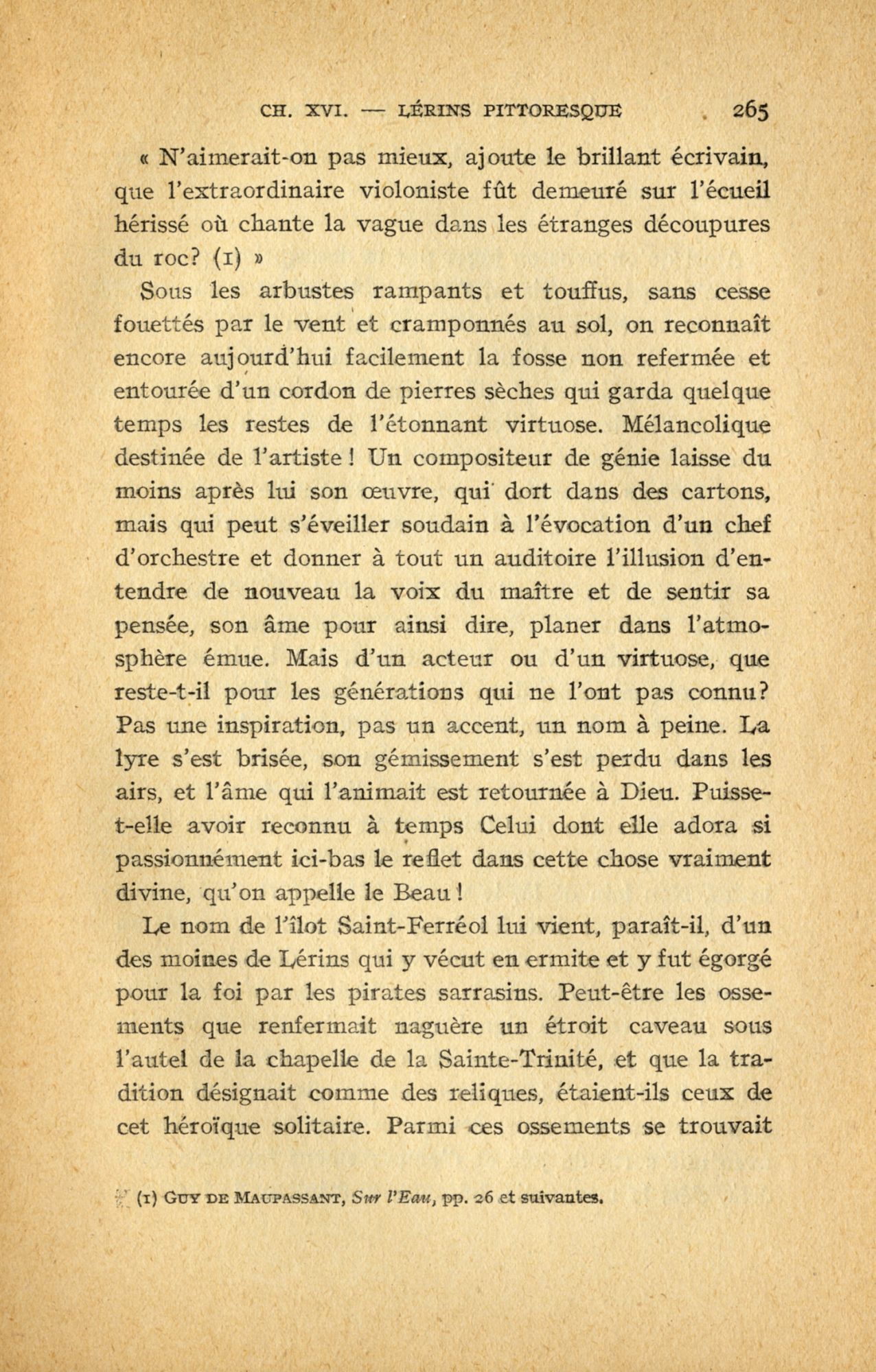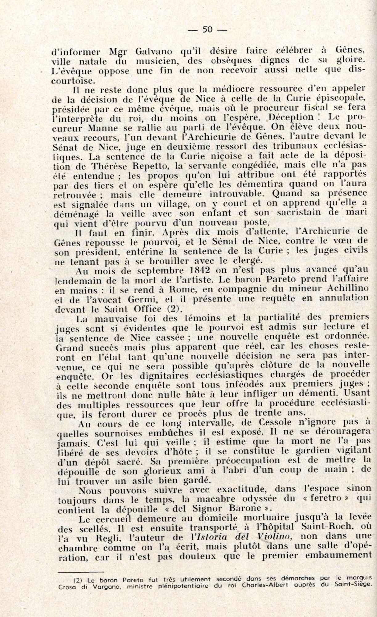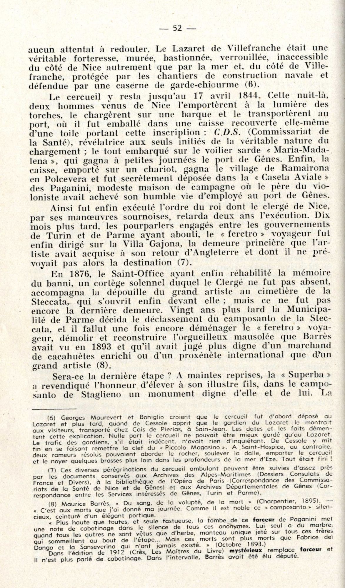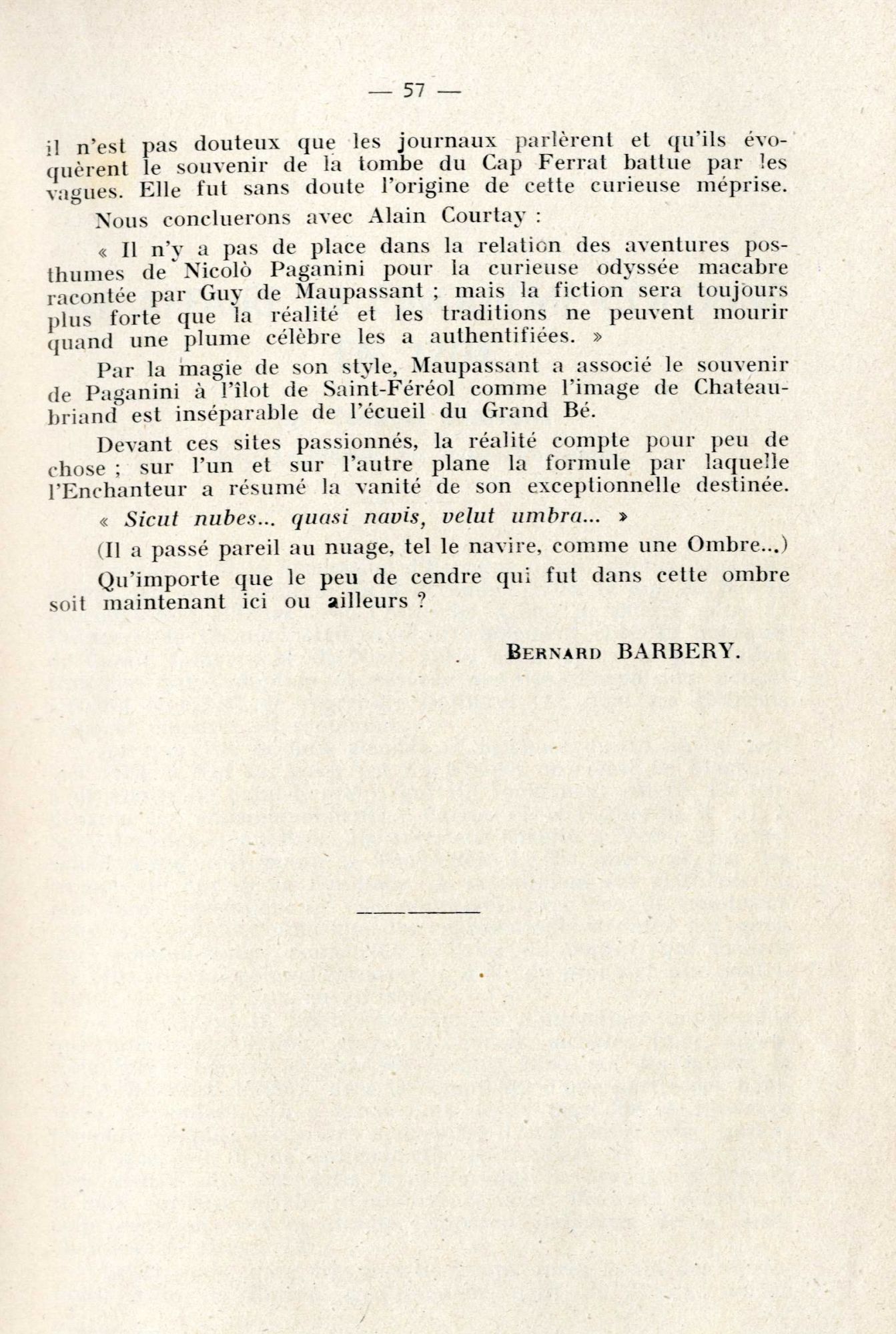 Est-ce ce fait qui a pu aider à la construction d'une légende qui concerne cette fois un célèbre musicien, né à Gênes : le corps de Paganini « mort du choléra » en mai 1840, aurait été « enfoui » dans l’îlot de Saint-Ferréol, pendant quatre ans, tous les cimetières de la Côte lui étant alors fermés !