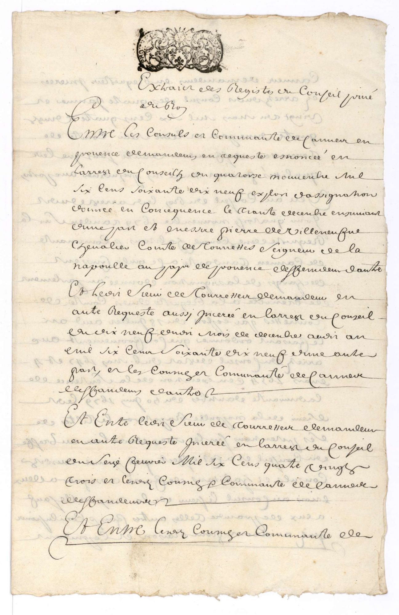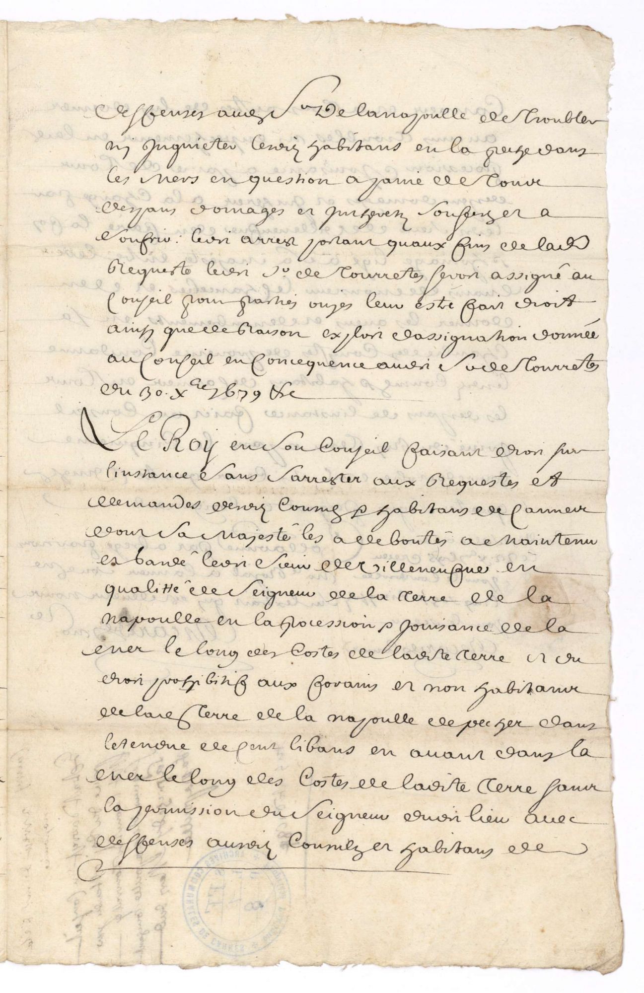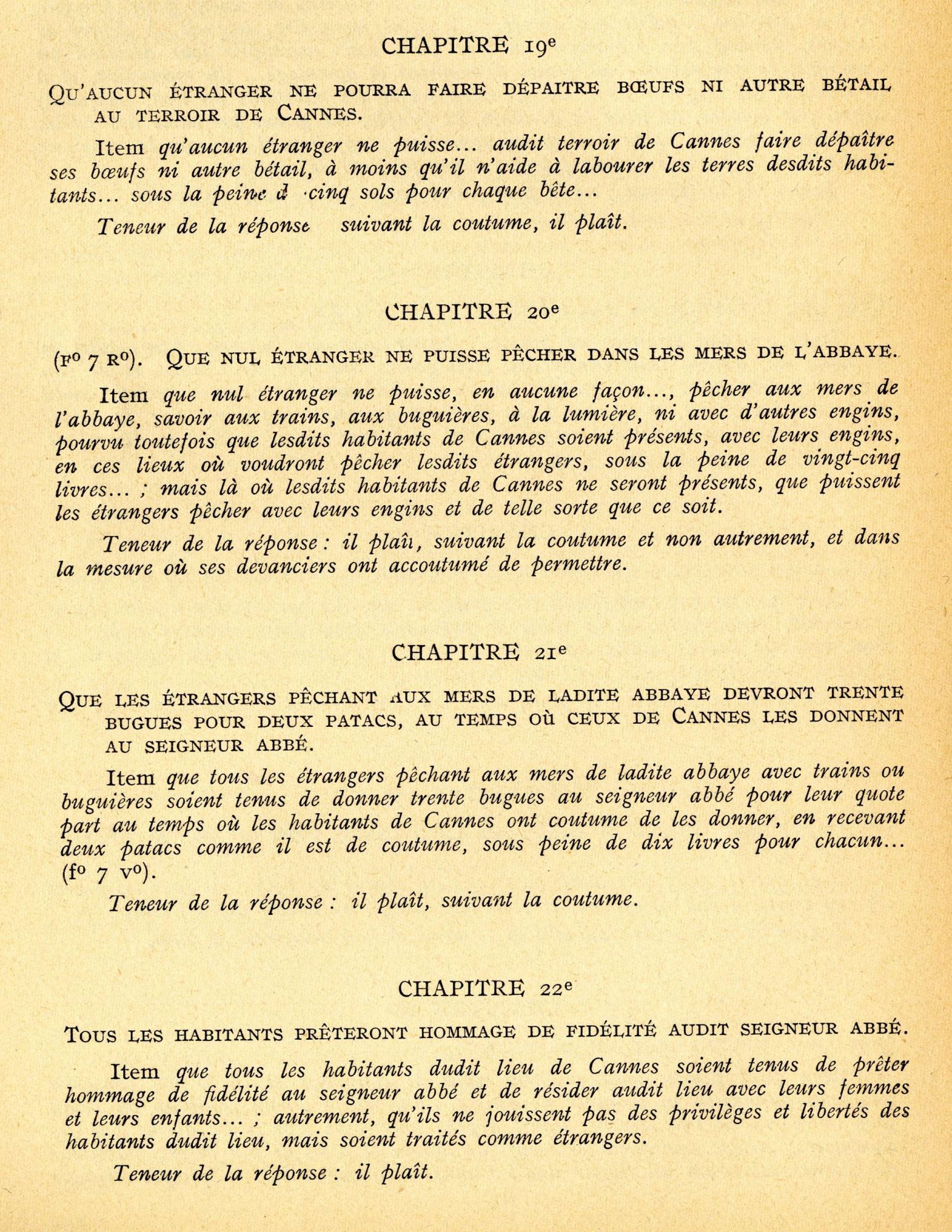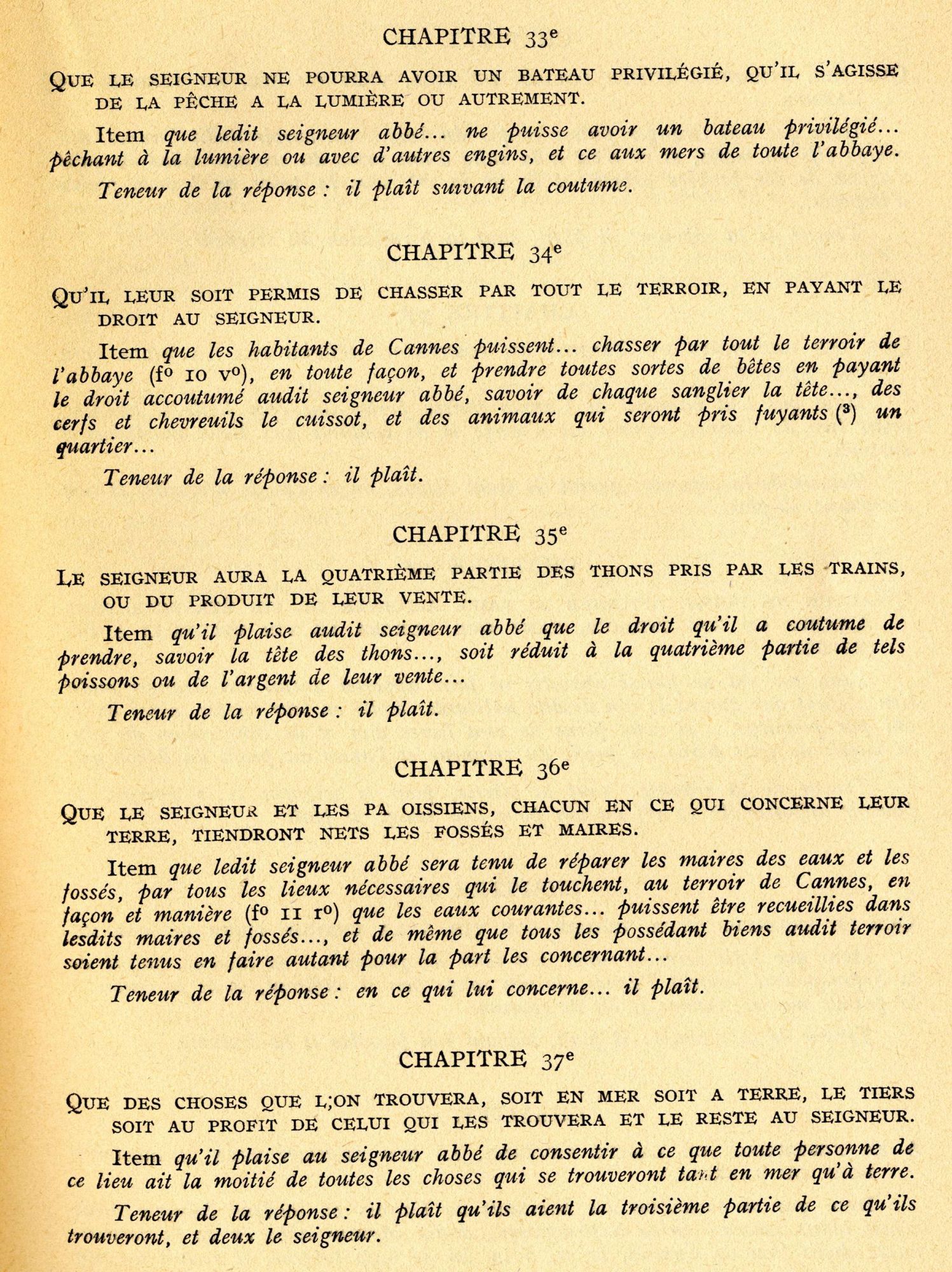 La cote H48 conservée aux Archives départementales le prouve. En voilà le contenu : "arrêts du conseil d'Etat, ordonnant de faire dresser, aux frais du monastère [...] un plan figuratif de l'étendue d'eau sur laquelle ledit monastère prétend exercer un droit de pêche exclusif, et de celle où il convient n'avoir droit qu'au 35ème de poisson pêché (3 septembre 1778). - Plan géométrique [ci-contre] des isles de Sainte-Marguerite et Saint-Honorat, de la plage de Cannes et celle de Vallauris, et de la partie de mer où est situé le Sécant, avec l'étendue de mer figurée par un triangle A. B. C., où les prieurs et religieux de Saint-Honorat de Lérins, prétendent avoir le droit de pesche exclusive, et de différentes cales où ils conviennent n'avoir le droit que de la 35ème partie du poisson pêché, 1778".